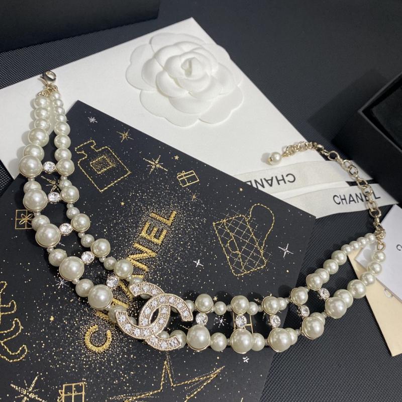 Chanel Cross Star C Pearl Choker Necklace Z8300