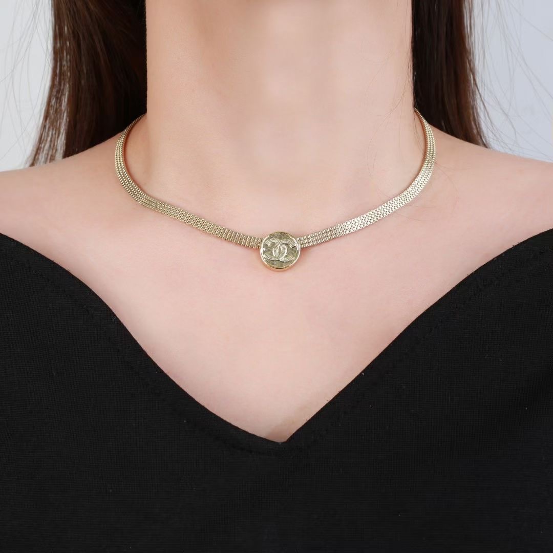 Chanel round button necklace