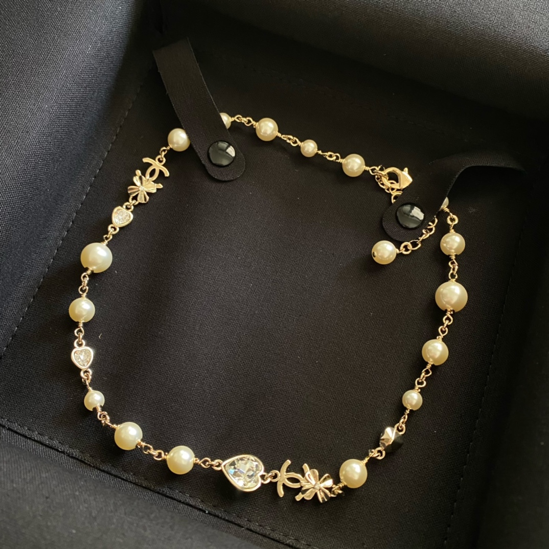 Chanel Heart Crystal Pearl Necklace