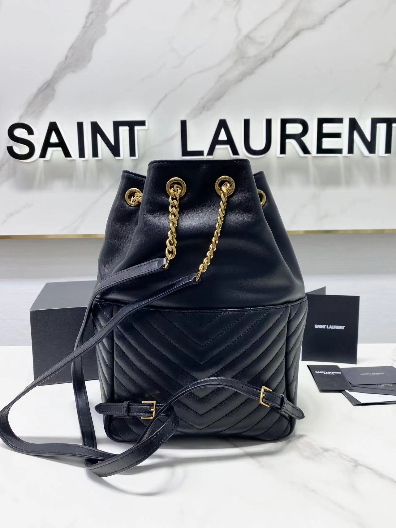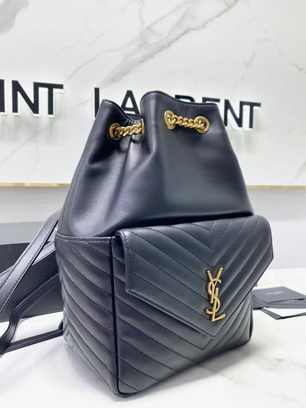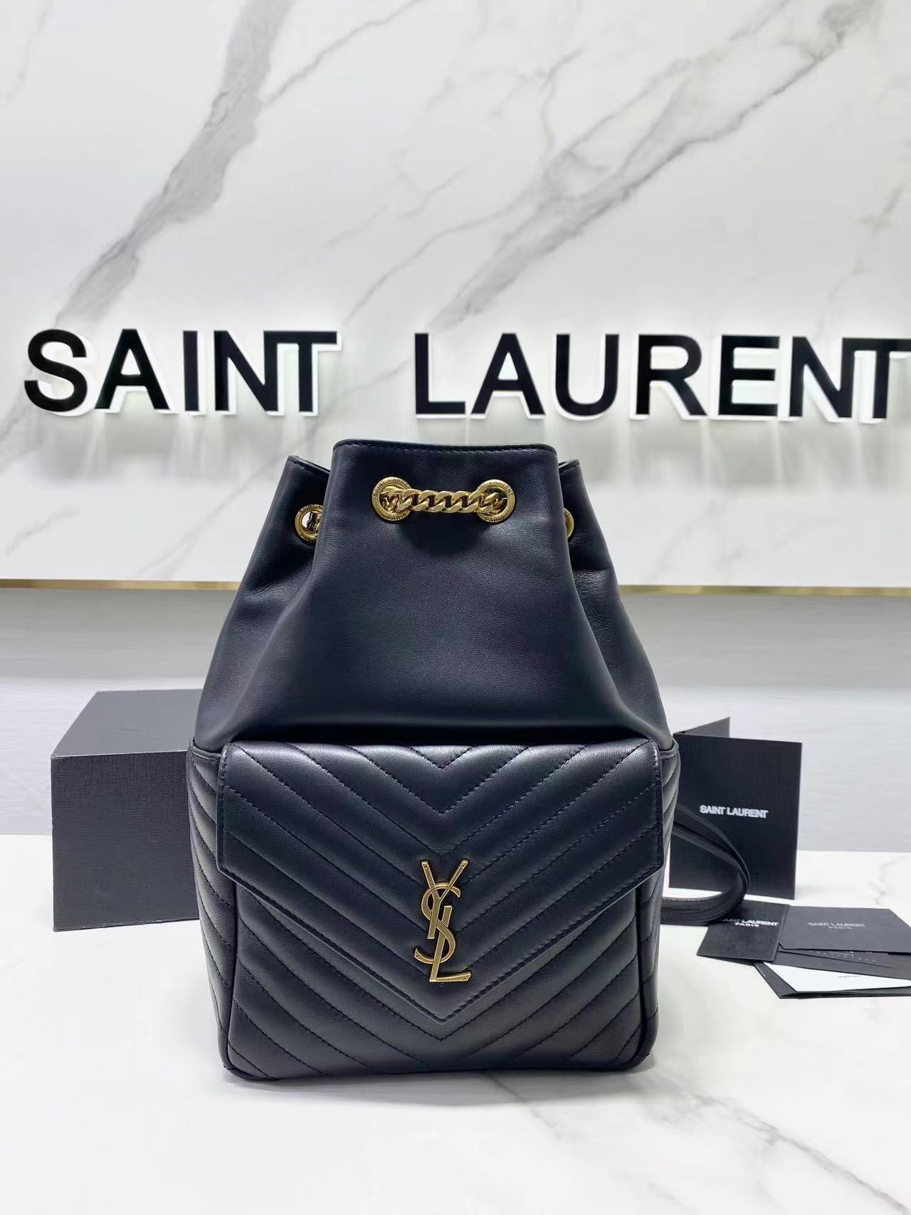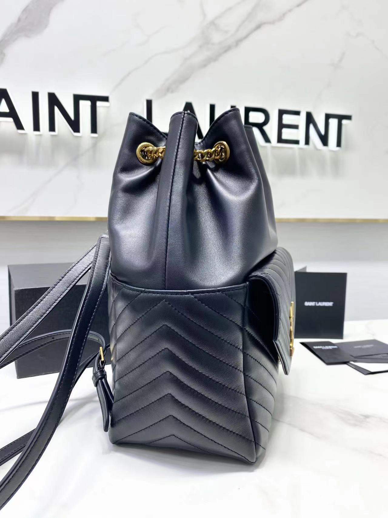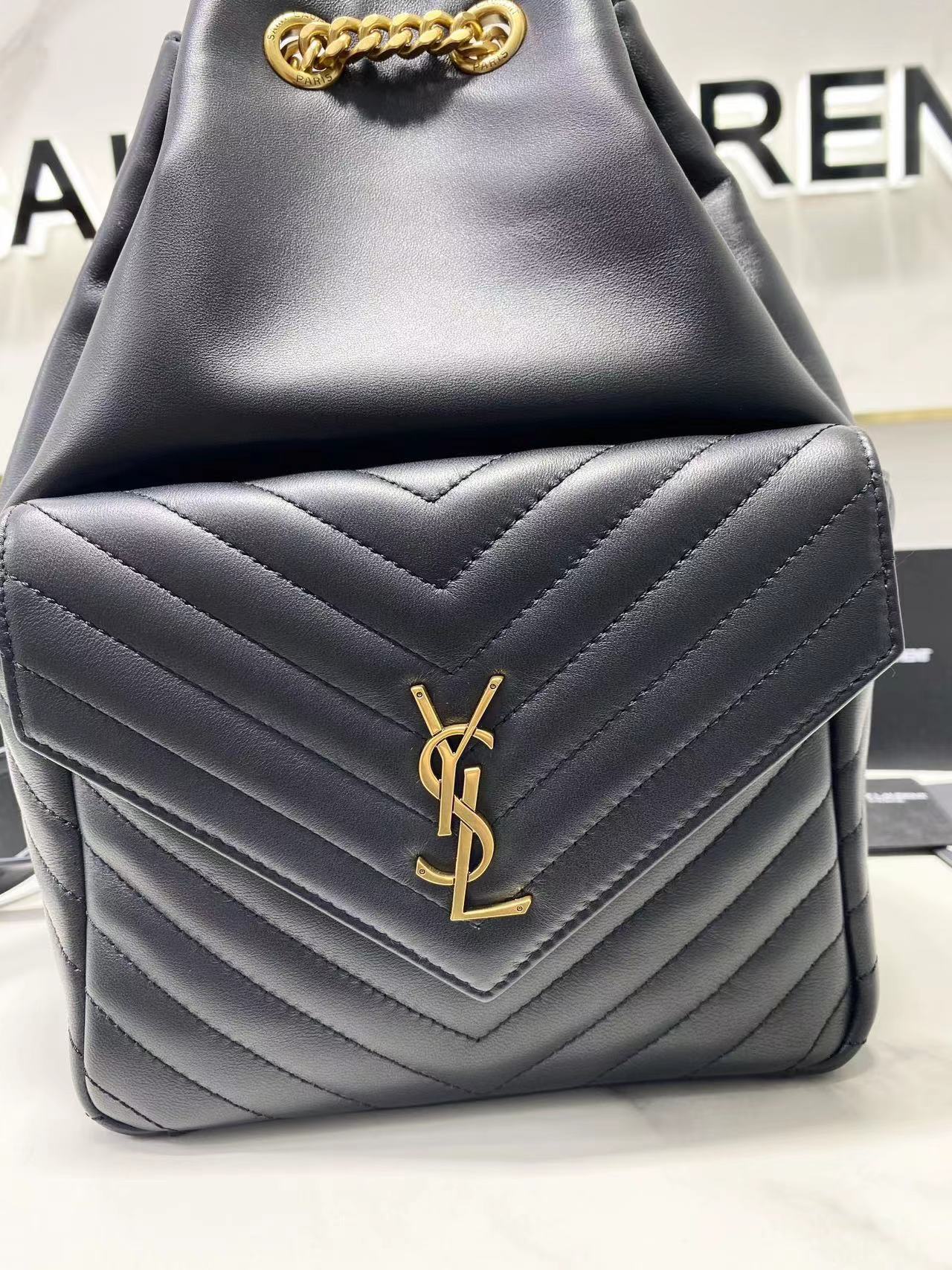 The YSL backpack has super smooth leather, a bit like Chanel's hobo backpack. The shoulder straps are much thicker and there's a flap pocket on the front for storing small items. It has a large capacity and is very flattering. Overall, it looks great. Dimensions: 22x29x15cm