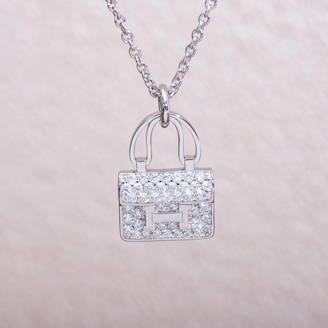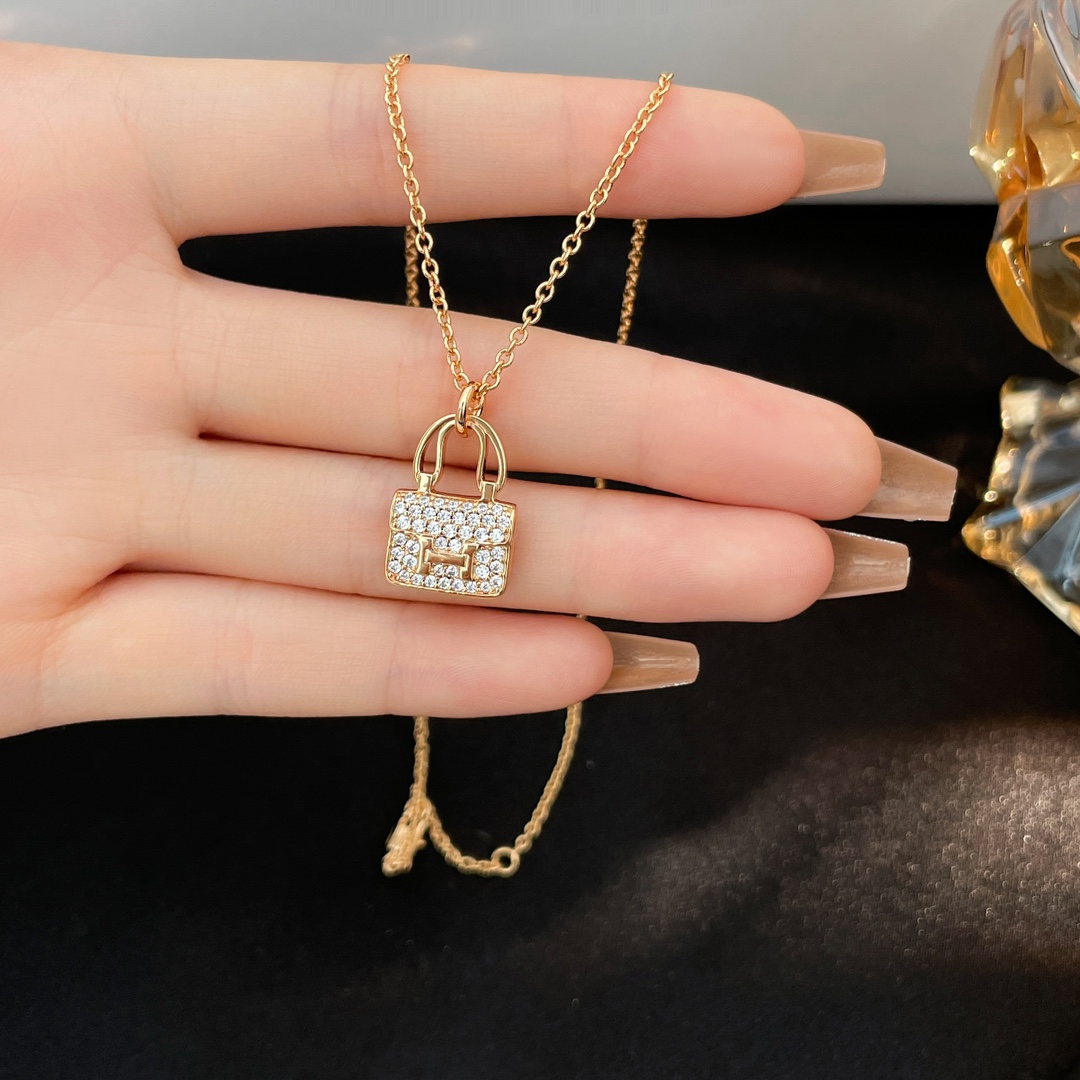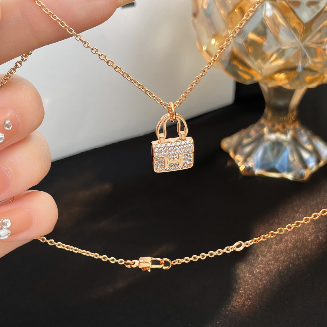 The new Kang Kang necklace is even more bling-bling and sparkling. The classic bag handle is wider, while the bag pendant handle is more slender. The necklace clasp has been redesigned from the traditional round buckle to a small lock shape.
