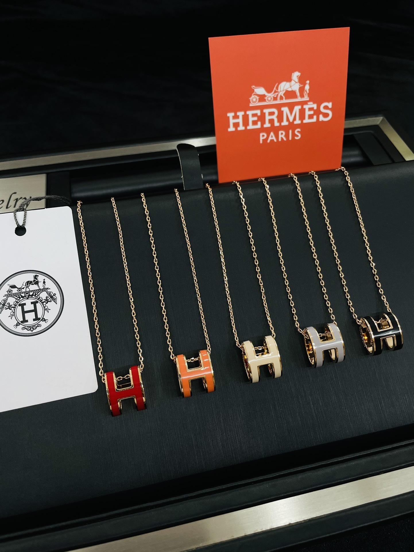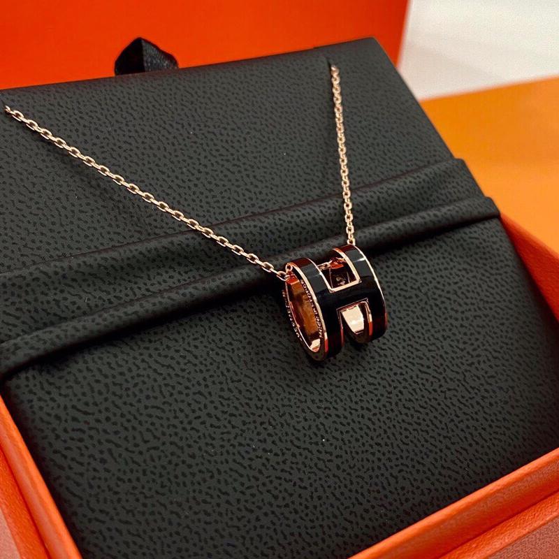 Hermès enamel curved H necklace