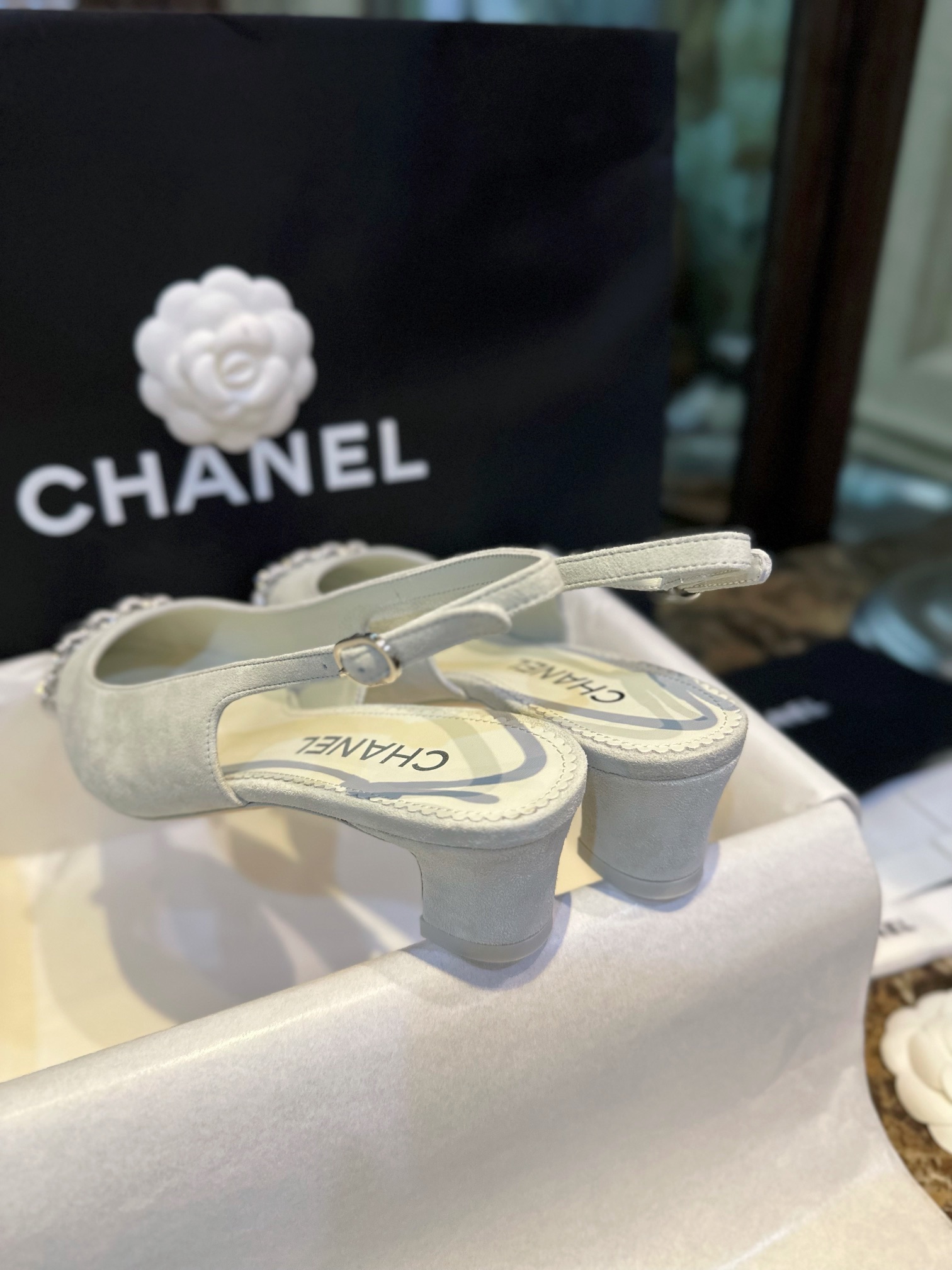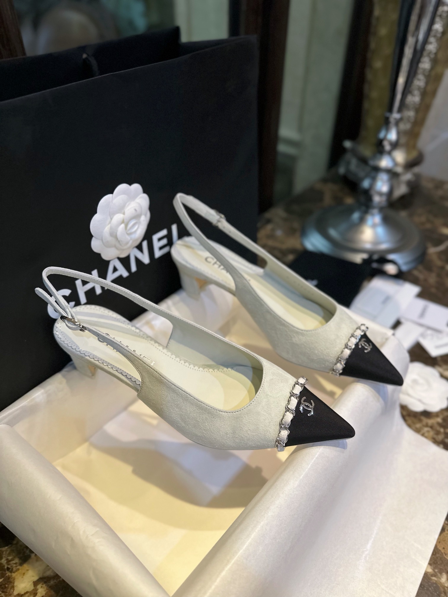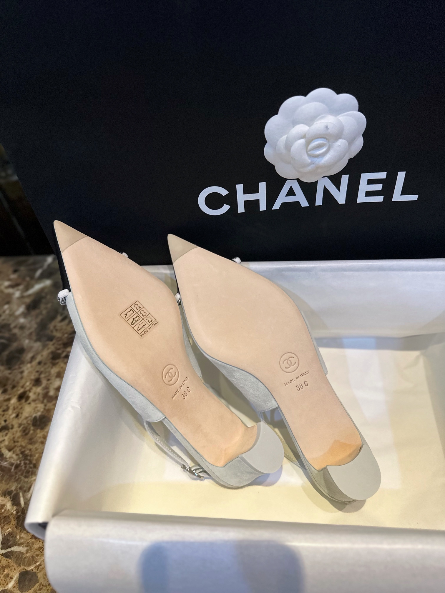 Chanel Light Grass Green Pointed Toe Chain High Heels