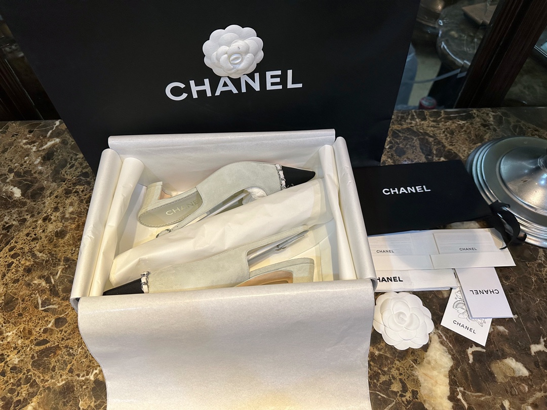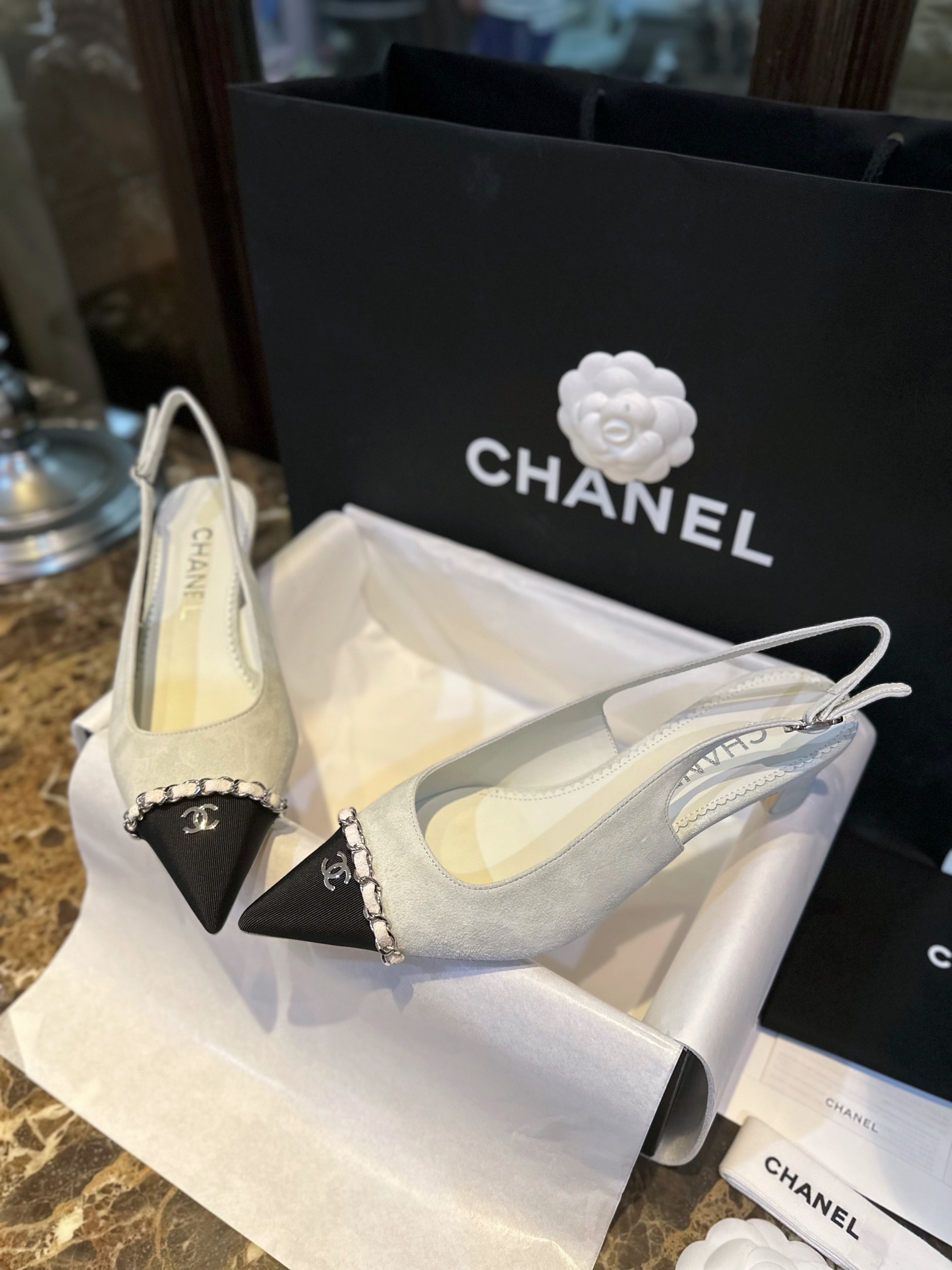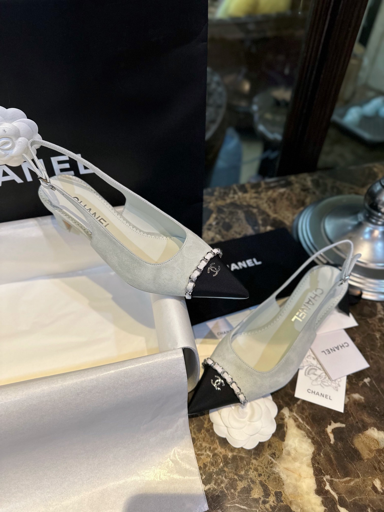Chanel Light Grass Green Pointed Toe Chain High Heels