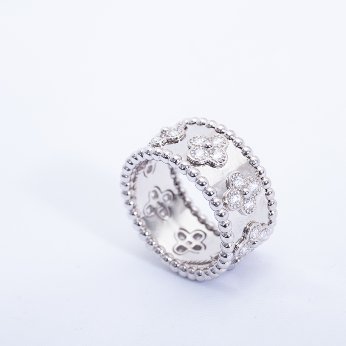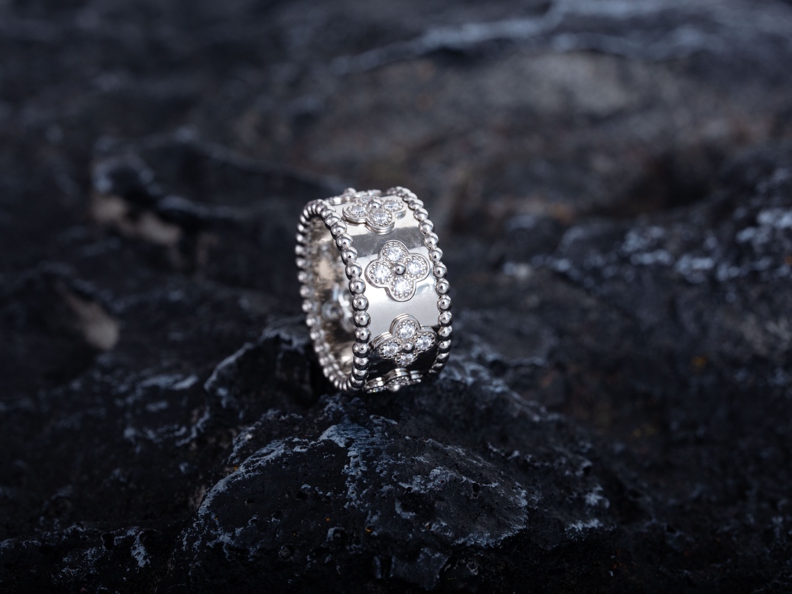 The advantage of platinum plating on sterling silver is its high wear resistance. Even if the bottom of the ring is scratched, the inside remains white. However, it is important to note that sterling silver will oxidize. If this ring has oxidized, wipe it clean with an alcohol swab for maintenance.