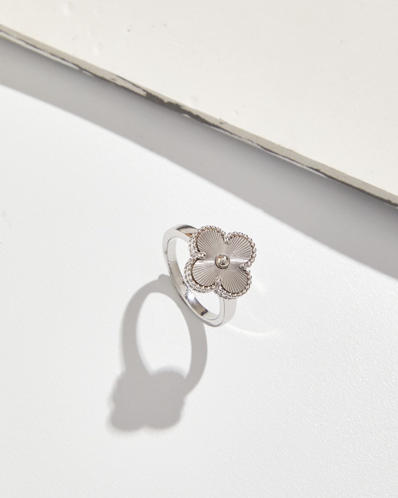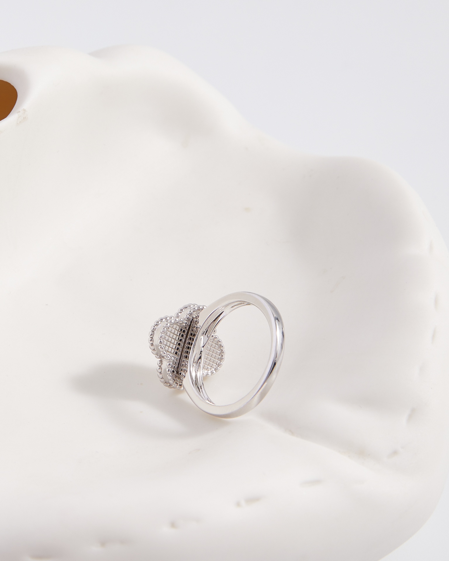 The laser four-leaf clover ring is highly recommended. Its unique design, timeless elegance, and instant charm are captivating. The lucky symbol draws inspiration from the four-leaf lucky pattern.
