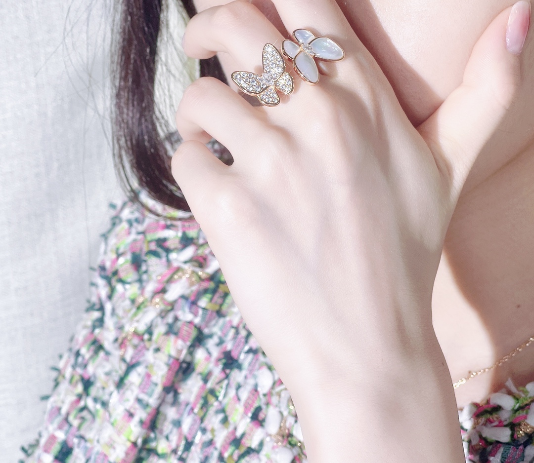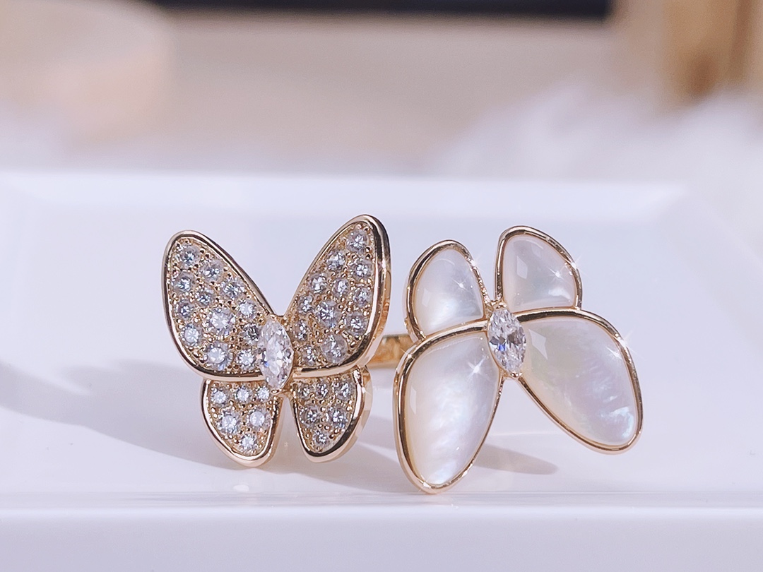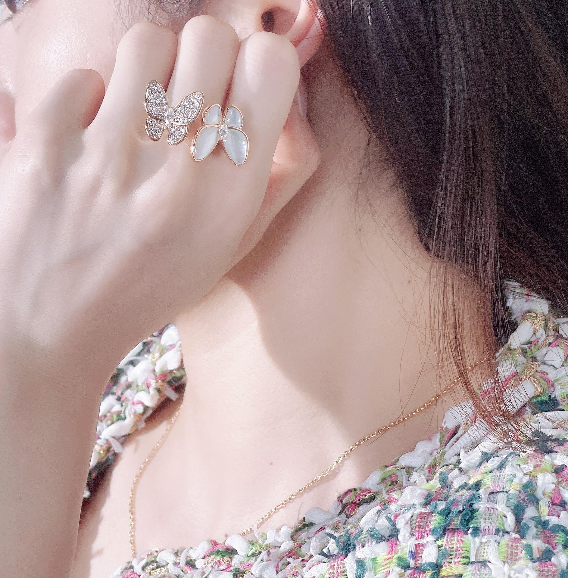 Van Cleef & Arpels' fairy-style double butterfly white mother-of-pearl ring. Some colleagues only make one size, thinking that the opening can be adjusted. This is wrong. Violent adjustment of the size will cause deformation and completely lose the symmetrical butterfly feel.