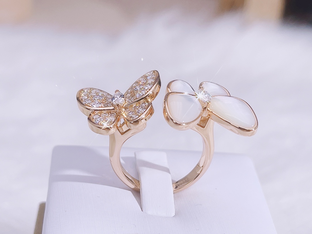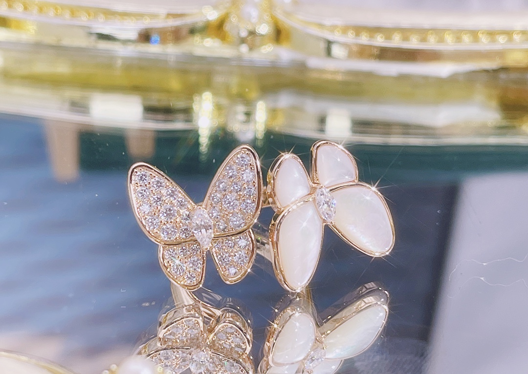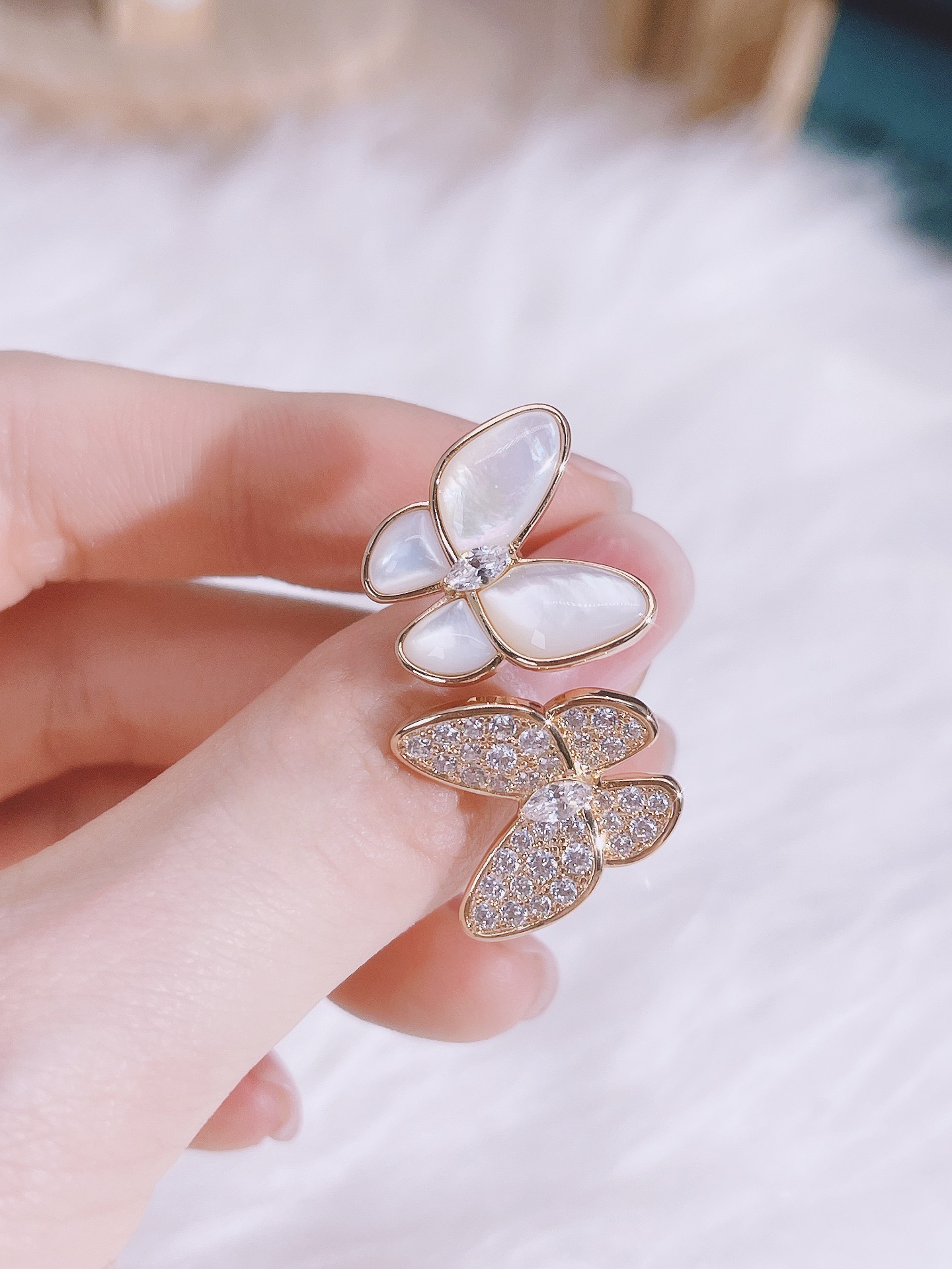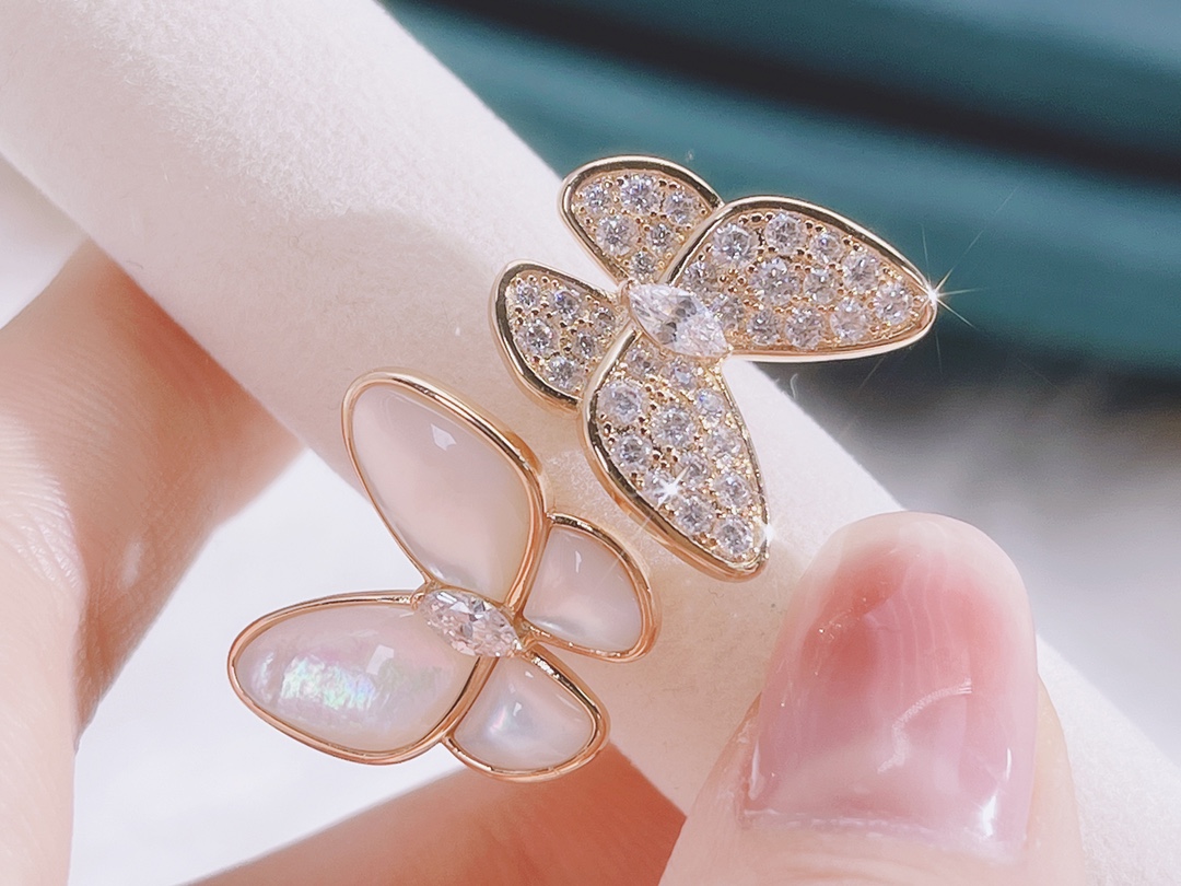 Van Cleef & Arpels' fairy-style double butterfly white mother-of-pearl ring. Some colleagues only make one size, thinking that the opening can be adjusted. This is wrong. Violent adjustment of the size will cause deformation and completely lose the symmetrical butterfly feel.