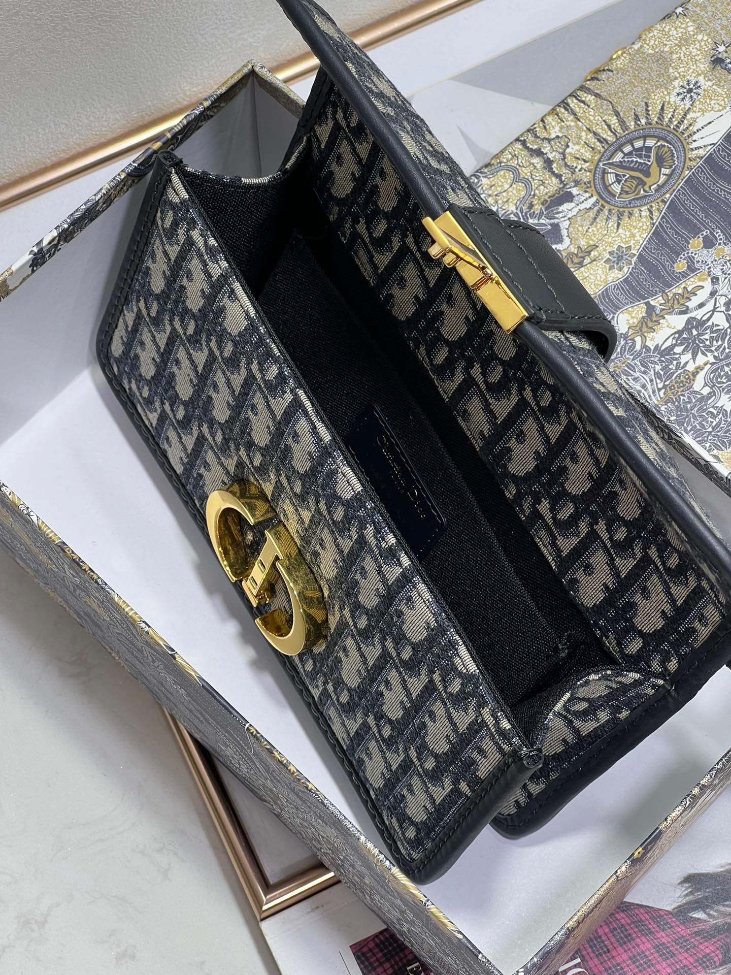Dior 30 Montaigne chain crossbody bag in monogrammed blue fabric