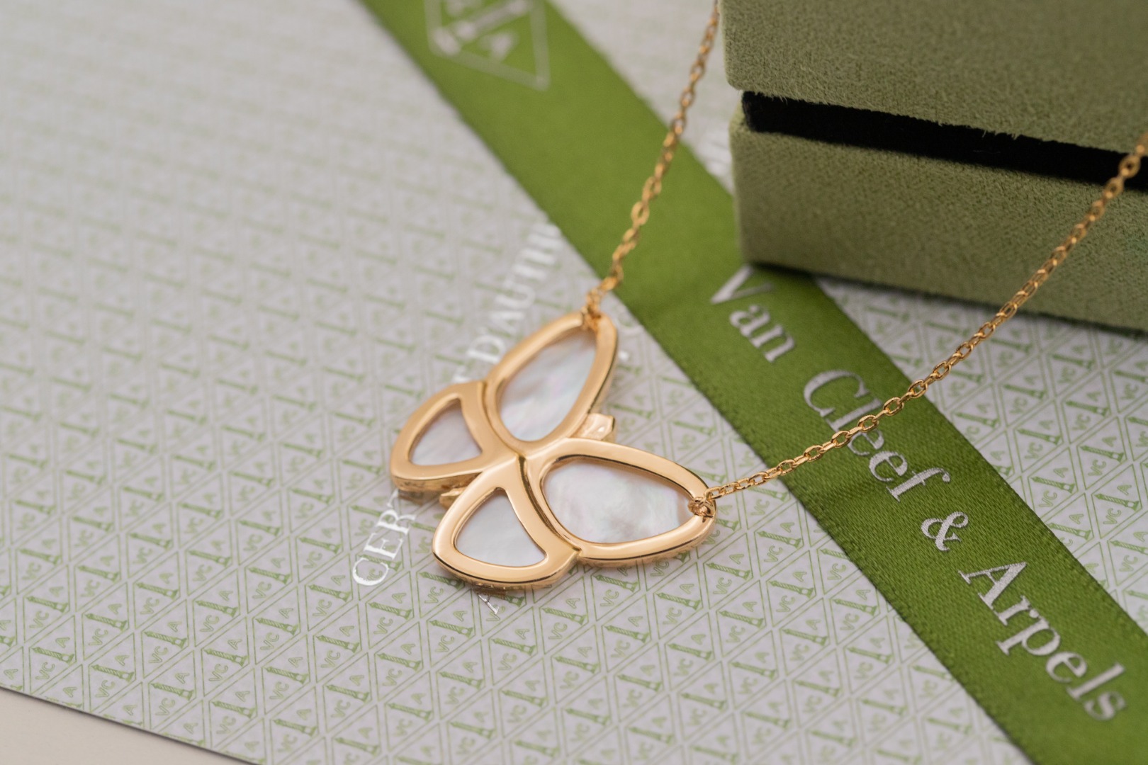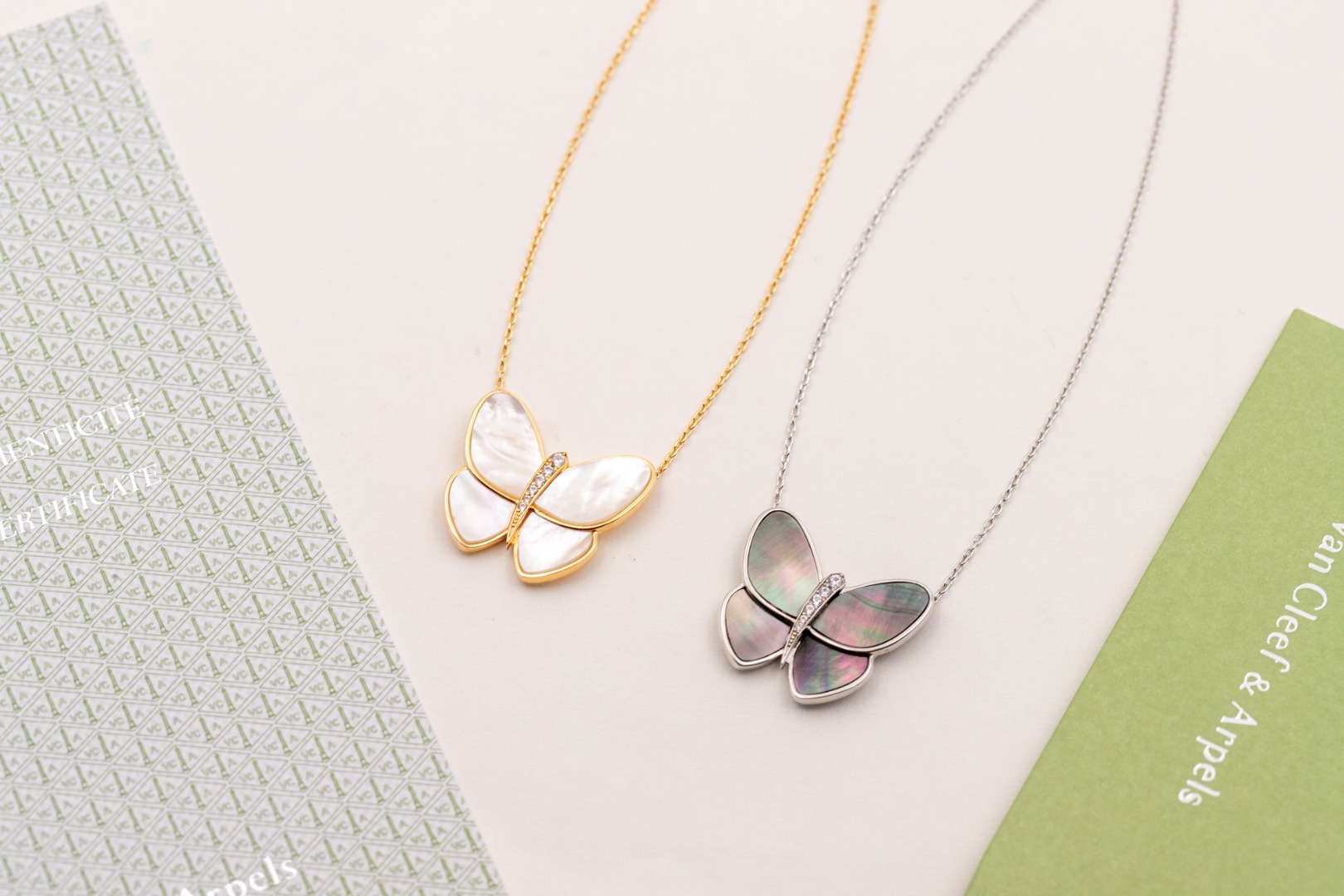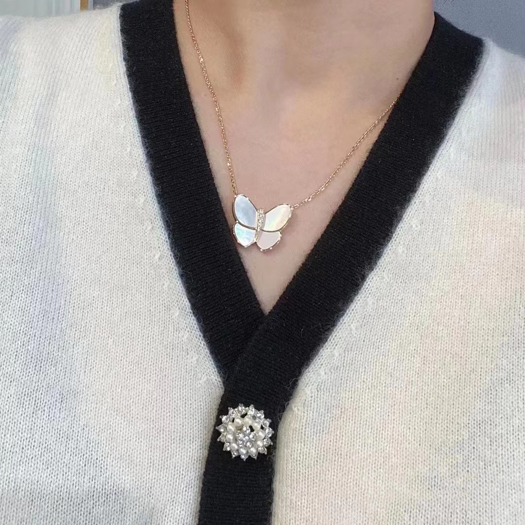Deep-sea natural mother-of-pearl, paired with a butterfly shape, creates a graceful and elegant necklace. Wearing this necklace, every day feels like spring, with flowers blooming and butterflies coming to you.