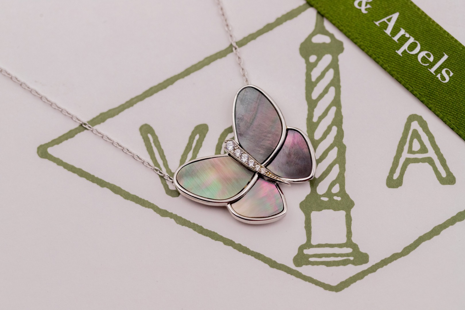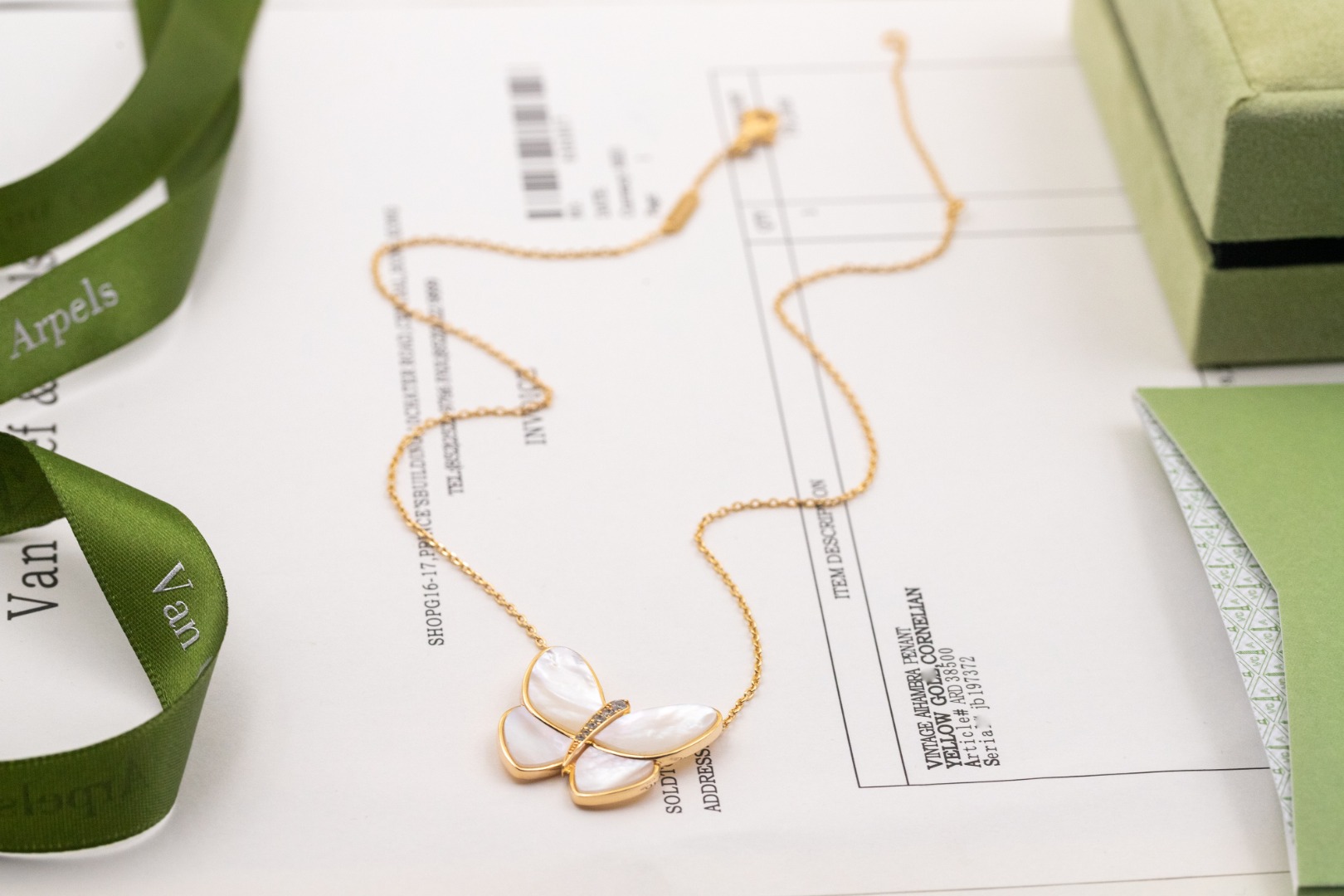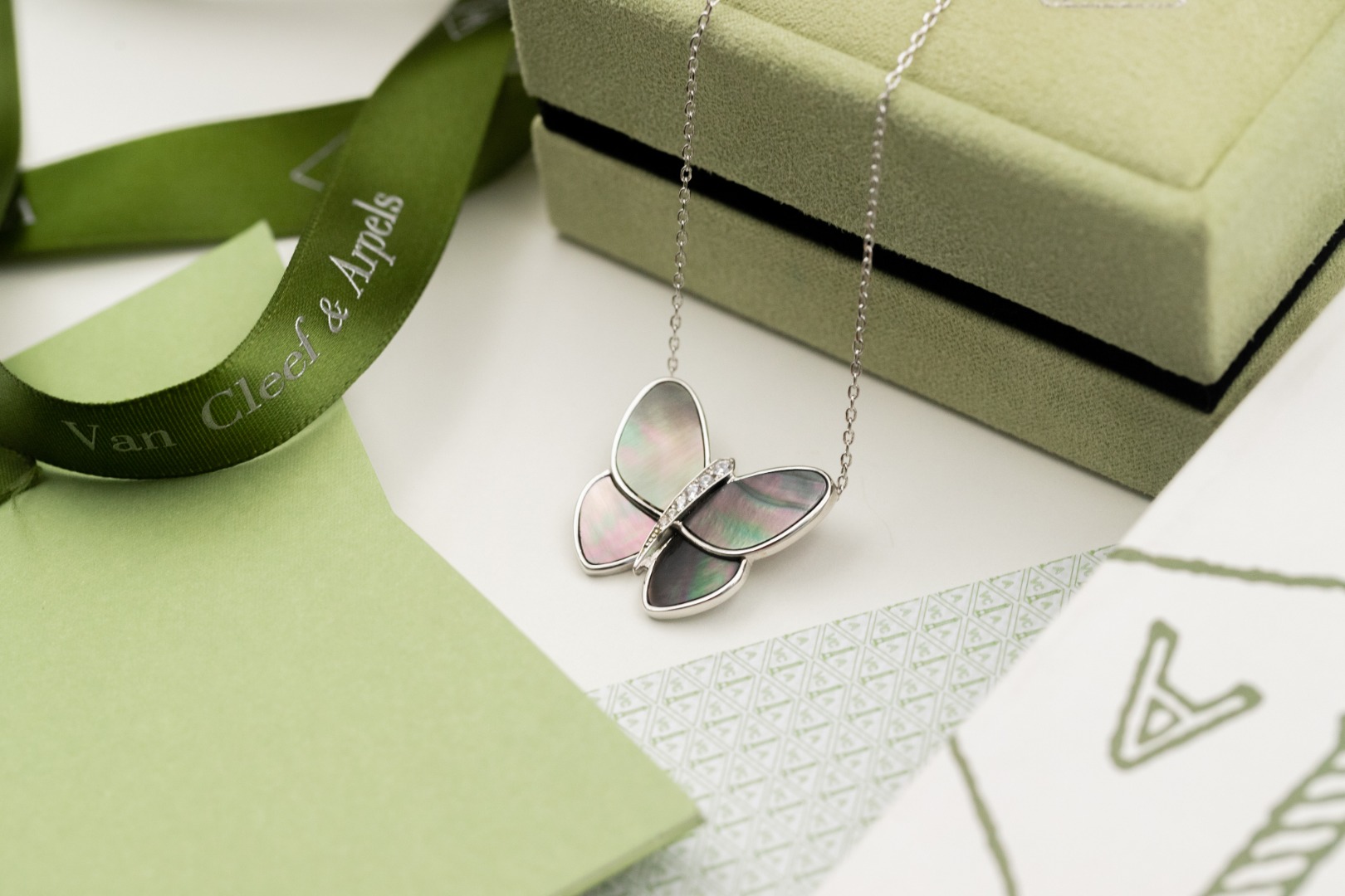 Deep-sea natural mother-of-pearl, paired with a butterfly shape, creates a graceful and elegant necklace. Wearing this necklace, every day feels like spring, with flowers blooming and butterflies coming to you.