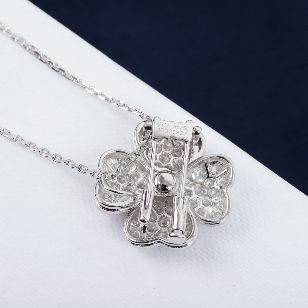 The Cosmos™ necklace, composed of four heart-shaped petals, is inspired by the iconic floral designs of Van Cleef & Arpels from the 1950s. This nature-inspired design exudes a sense of ultimate movement. The convertible pendant features the iconic Van Cleef & Arpels motif from the 1950s, blending the protective qualities of a four-leaf clover with the elegance of a flower. It can be worn as a pendant or a brooch.