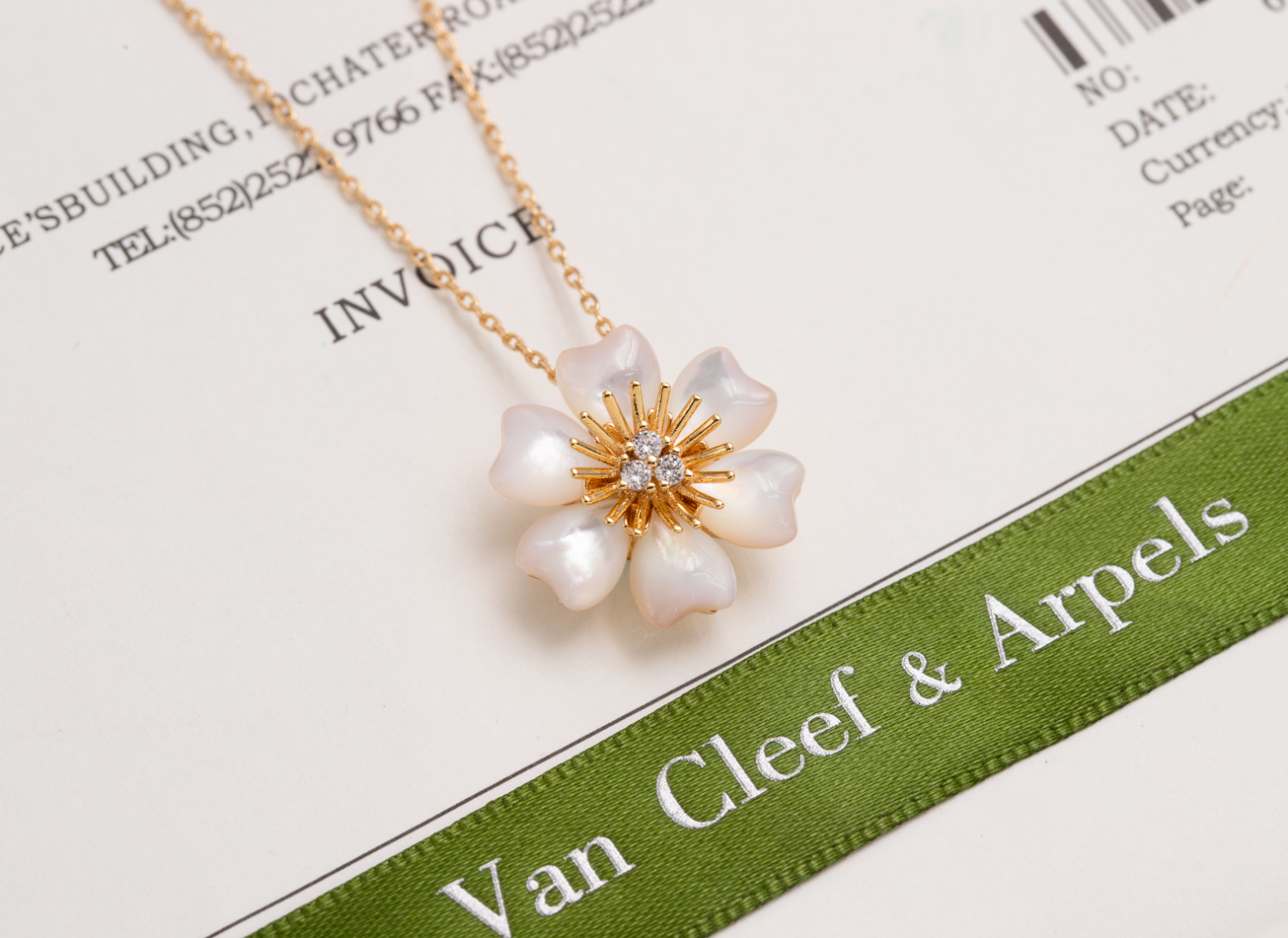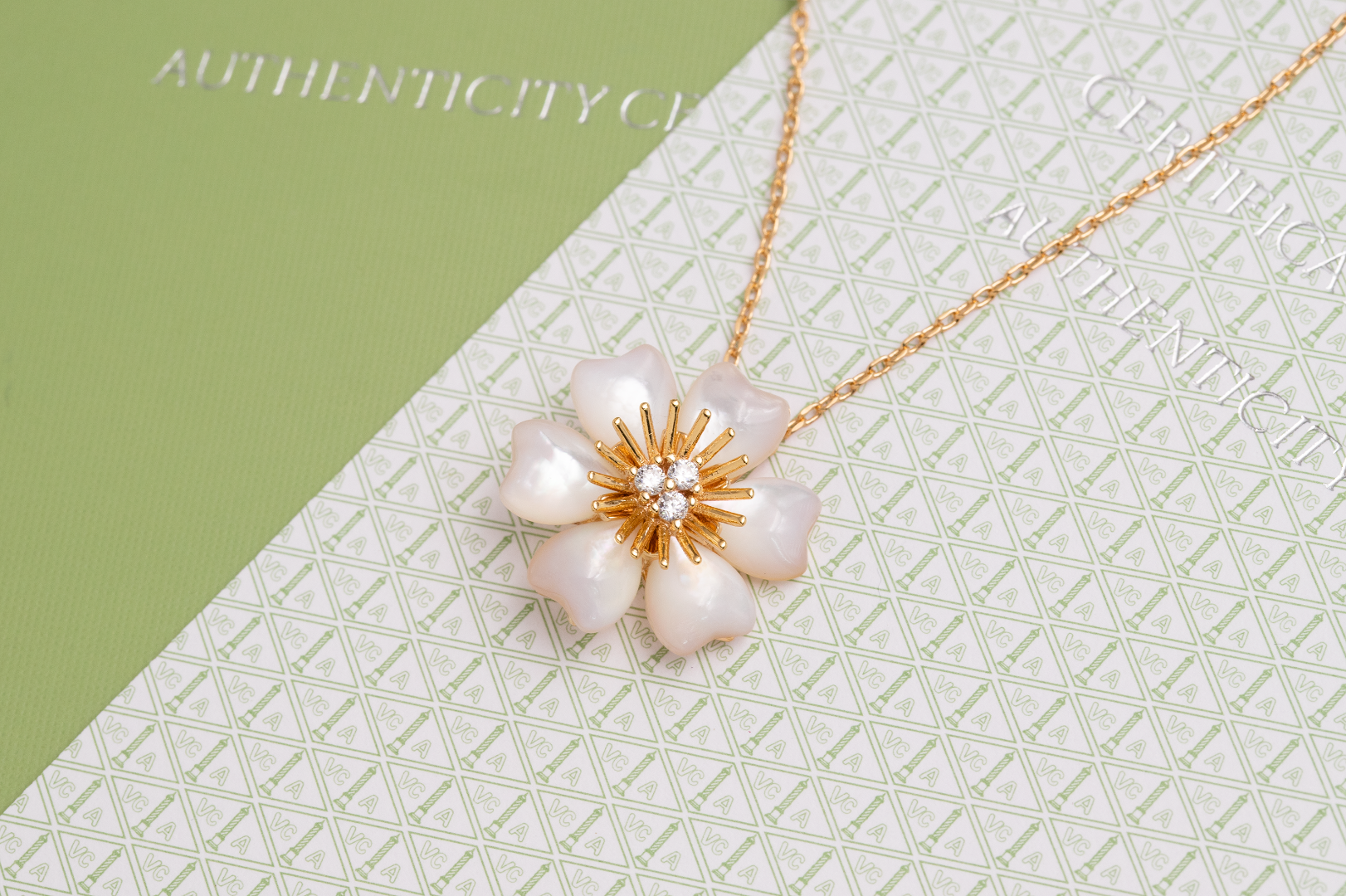 Van Cleef & Arpels Christmas Rose White Mother-of-Pearl Necklace