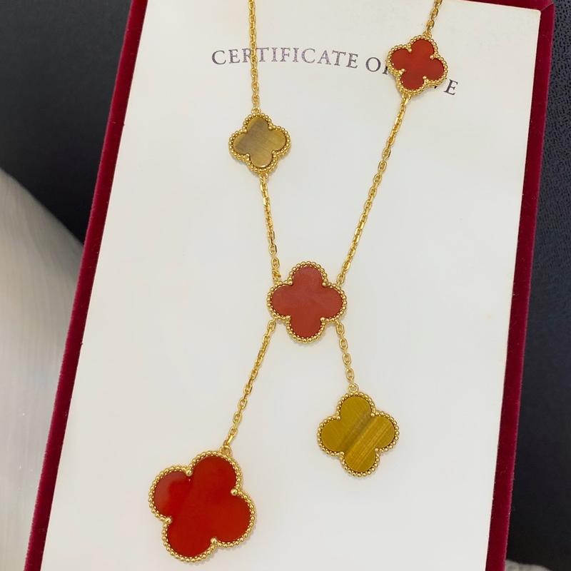 Magic Alhsmbra four-leaf clover necklace, this Magic Alhambra six-flower irregular necklace is a bit high-profile. Because it is too unusual, pay attention to the color tone of the clothes when matching. You can almost wear all black or a simple dress. The neckline must be large.