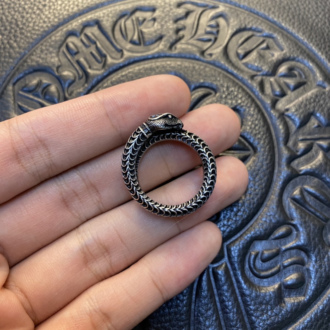 The ring is shaped like an Ouroboros, a snake biting its own tail, an ancient Egyptian symbol that, in medieval alchemical traditions, often symbolizes the infinite cycle and regeneration of nature.