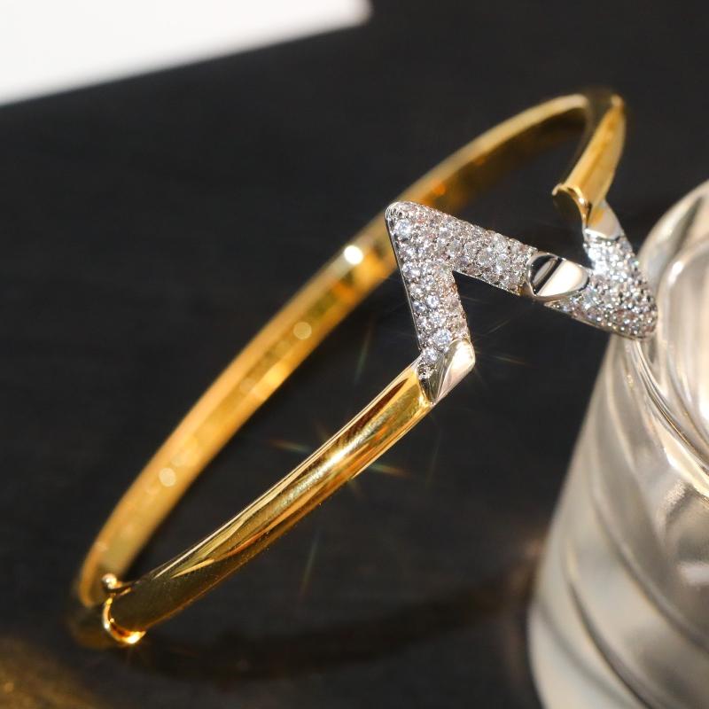 The bracelet features a slender silhouette, articulated to form a lightning-like undulating totem, creating a simple yet striking style.