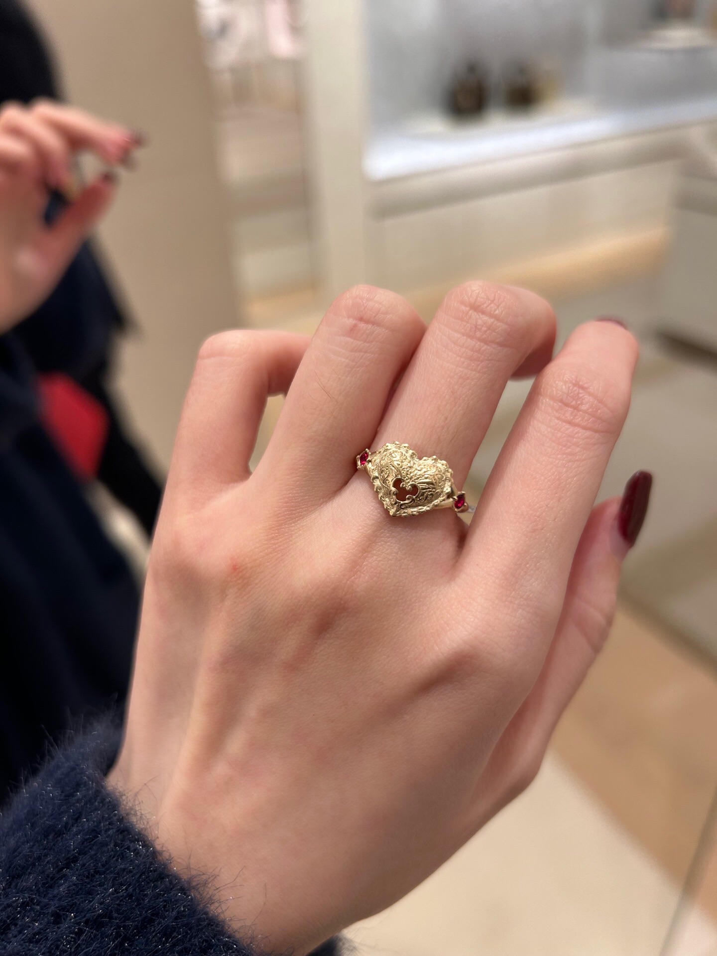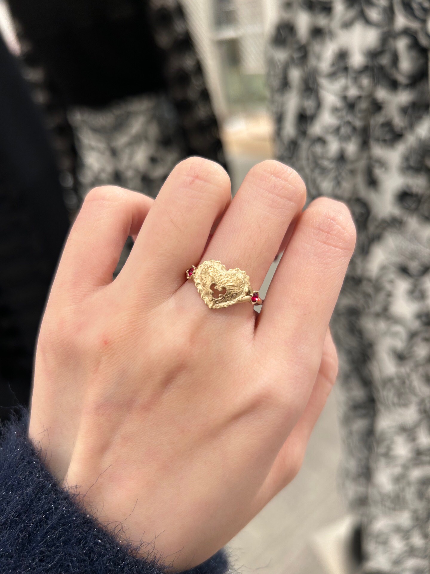 This embossed heart ring features a stunning heart and is incredibly artistic. A must-have!