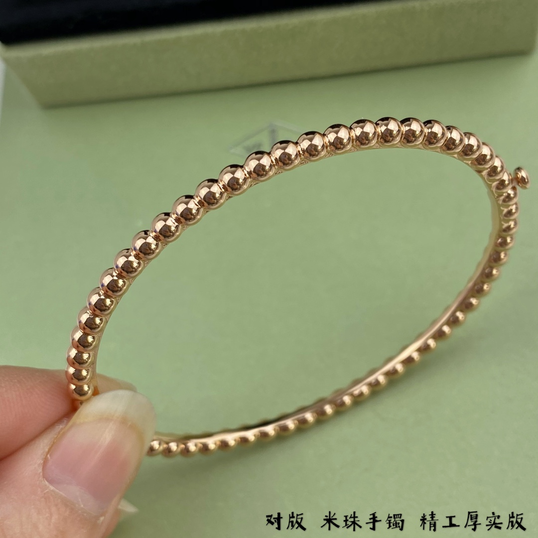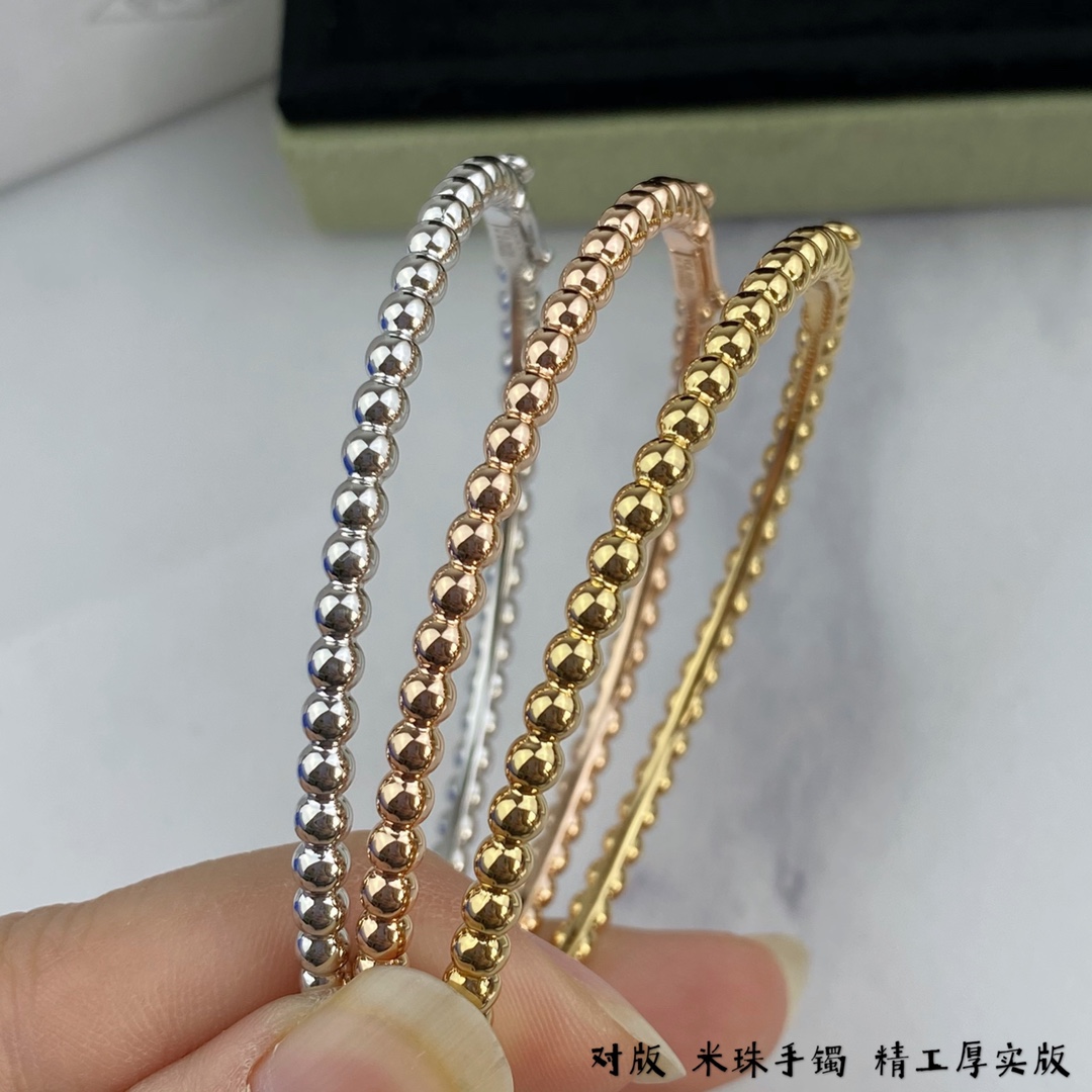 Van Cleef & Arpels' Perlée bracelet, meaning "small, round gold beads" in French, features a rollerball technique, meticulously arranging tiny gold beads to create harmonious, radiant curves. The bracelet is available in a variety of styles, including classic closed hoop designs and open curved designs, the latter offering greater comfort and flexibility for wrists of varying sizes.