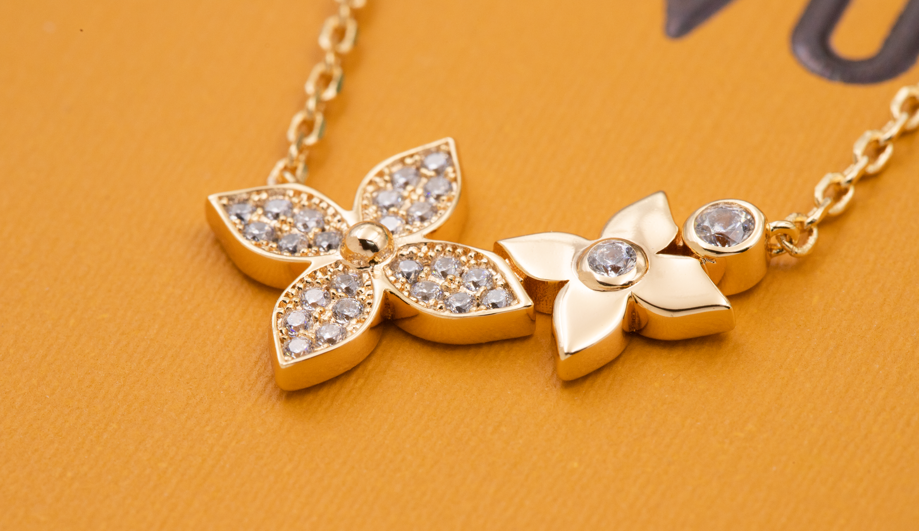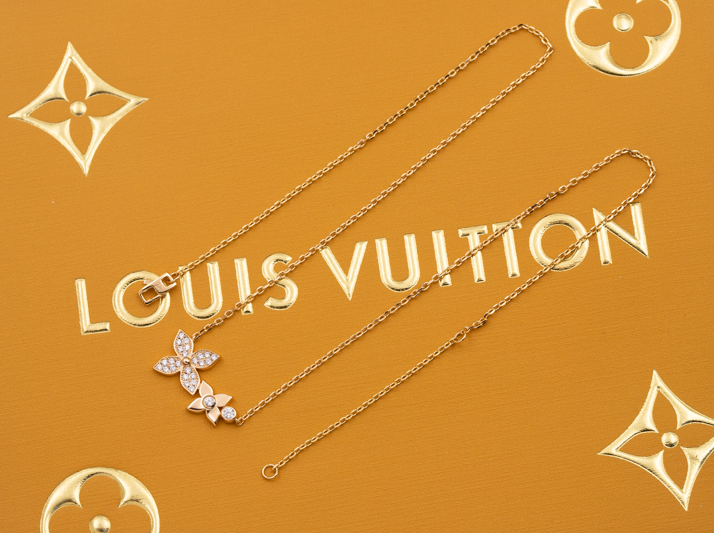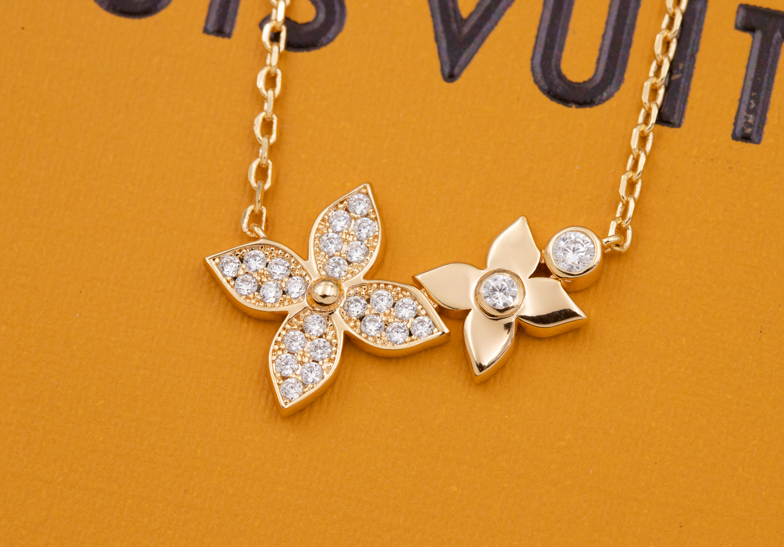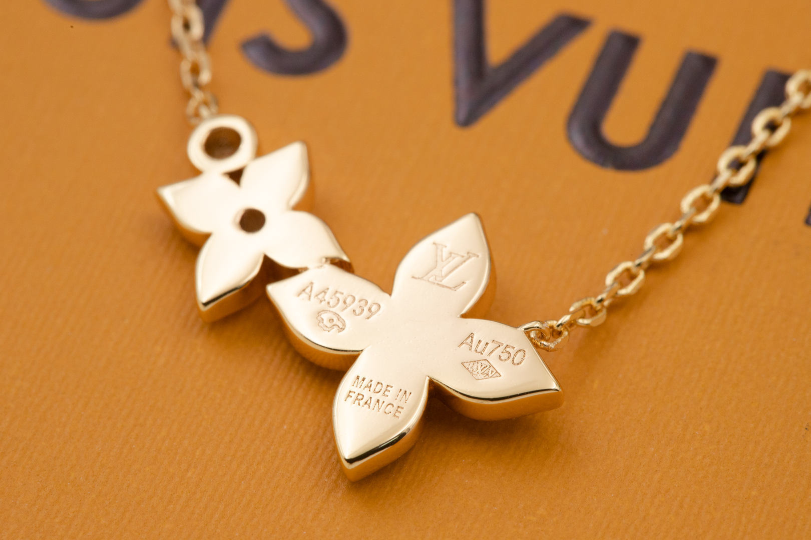 This classic Louis Vuitton Double Flower necklace features a pair of Monogram Flower pendants. Its shimmering, delicate design dazzles day and night.