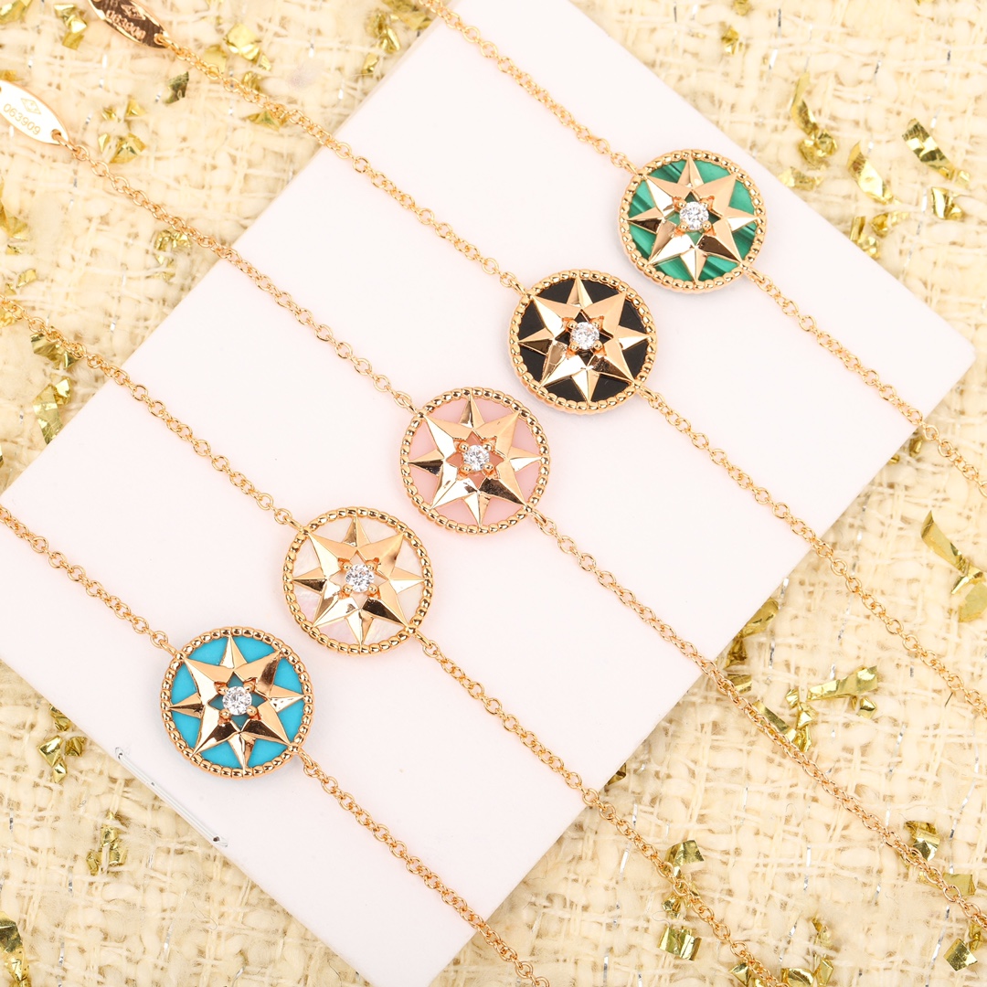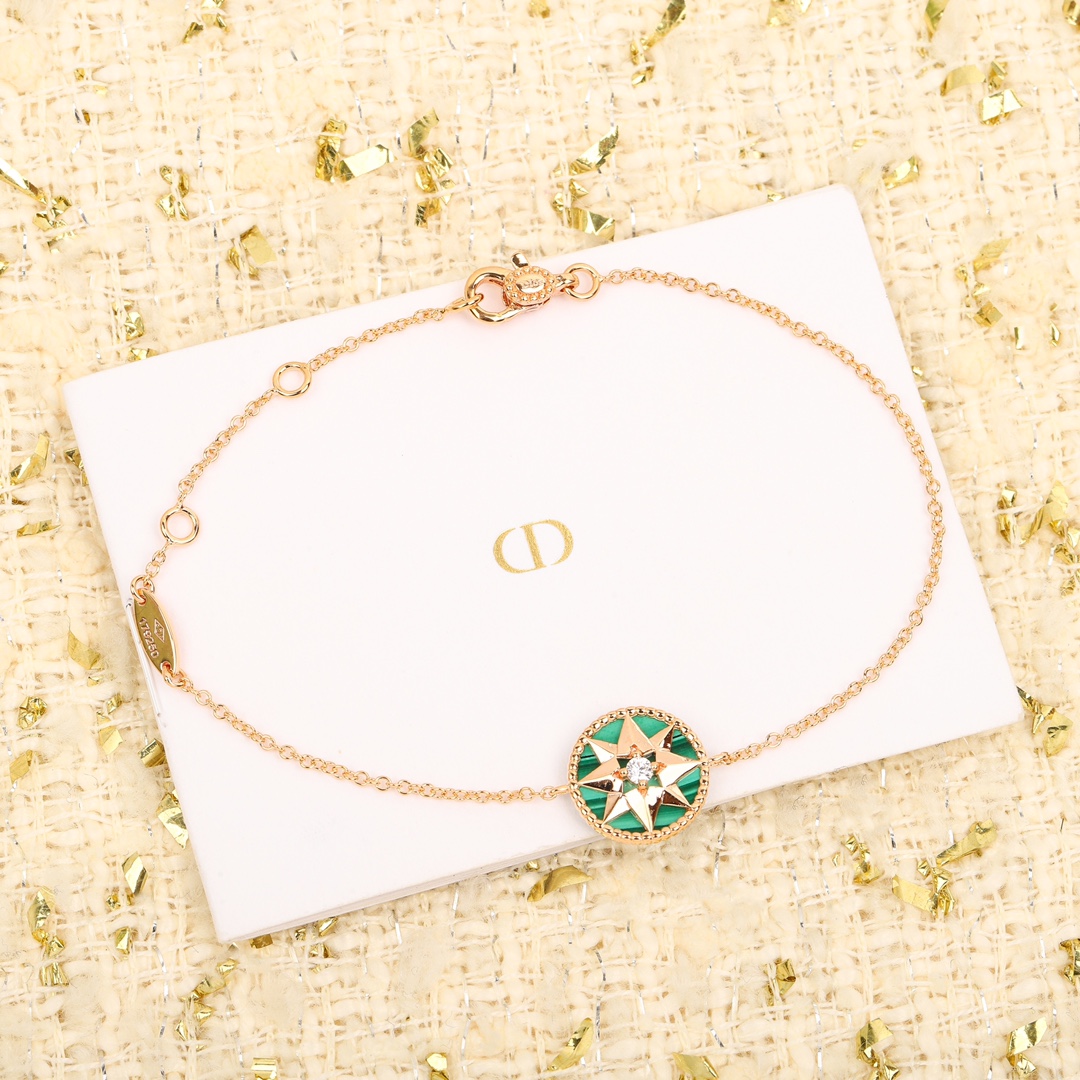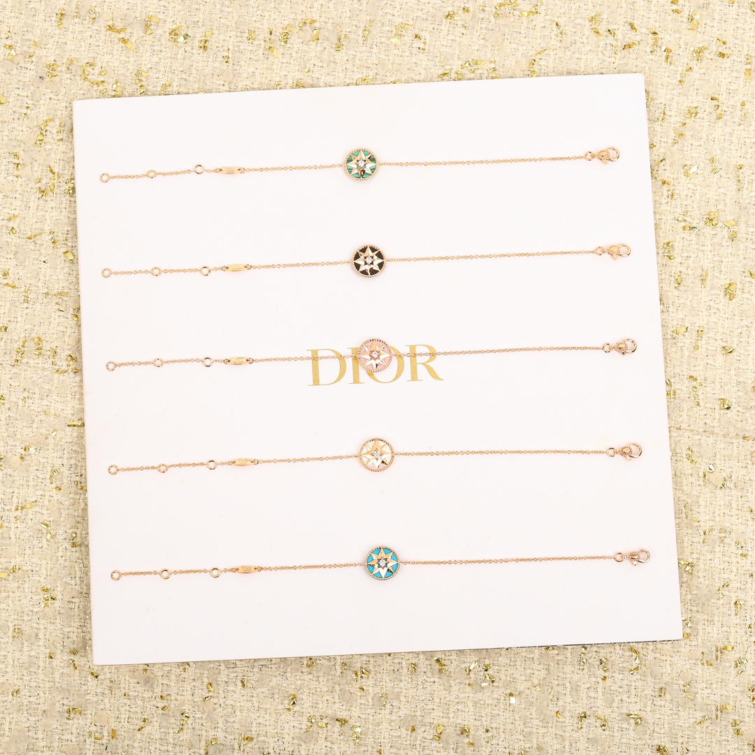 Compass Bracelet ROSE DES VENTS Bracelet The Rose des Vents, from the D!or Compass Rose Collection, symbolizes creation. Incorporating Christian Dior's lucky star and rose elements, it symbolizes his legendary journey. Christian Dior's most moving inspirations: his beloved roses, which grew in the garden of his Granville mansion; the paths he traveled on sea voyages to promote his designs; and his unwavering belief in lucky stars – all are transformed into the delicate starbursts, compass, rope, and eight-pointed star within the Rose des Vents.