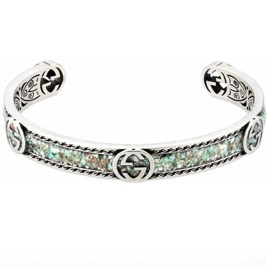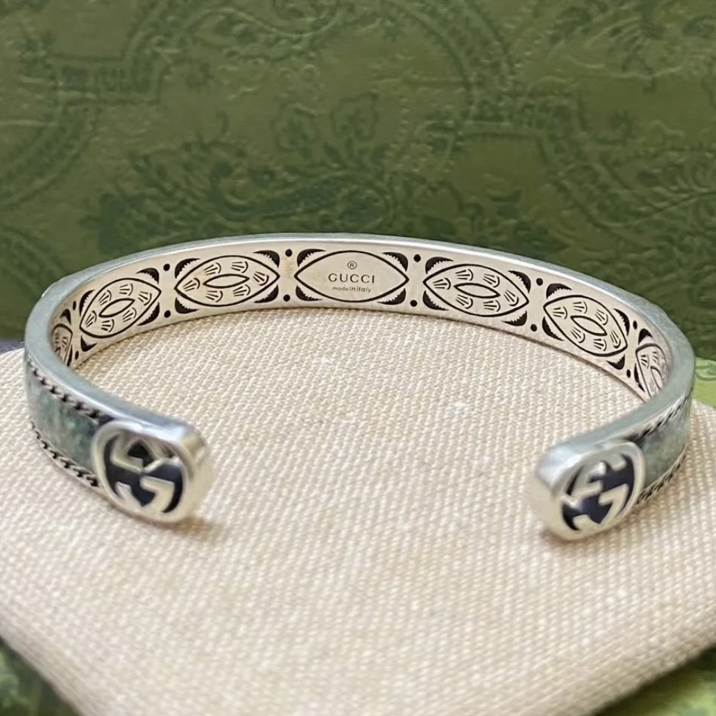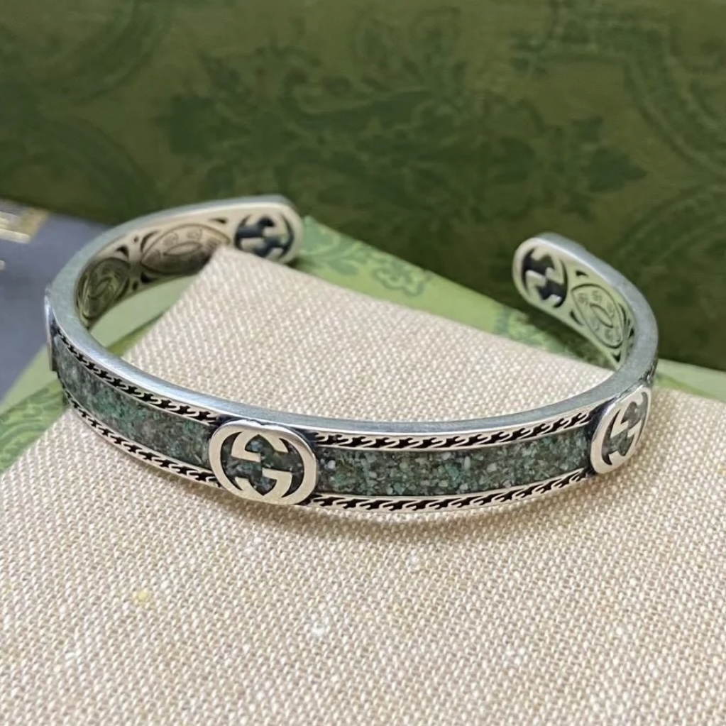 GUCCI Gucci interlocking double G green bracelet belongs to the Epilogue series. It is decorated with bright enamel and textured piping, with adjustable opening size, and is unisex.