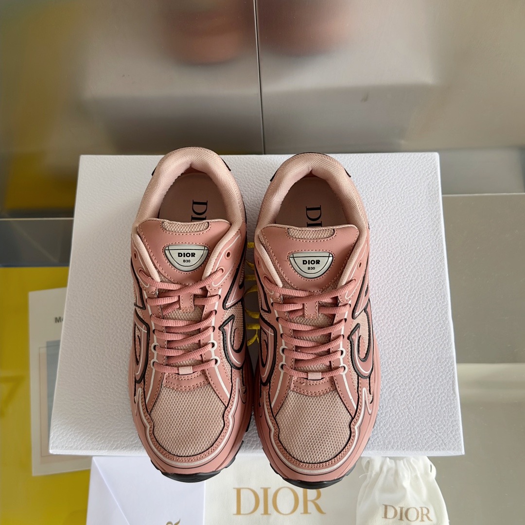Following the retro market trend, these dad-style shoes feature the Dior logo on the tongue, identifying them as the B30 model! The prominent letters CD on each side of the shoe distinguish them, while the detailed lines throughout the shoe enhance the shoe's retro appeal.