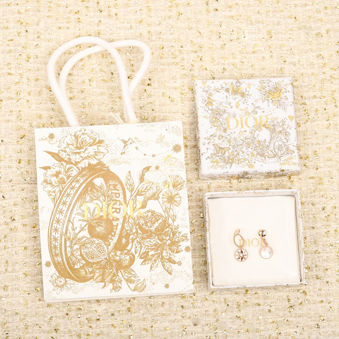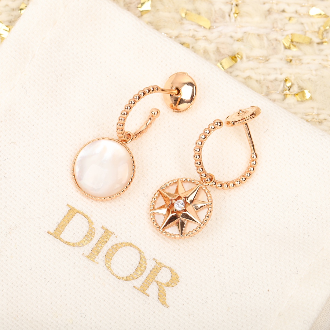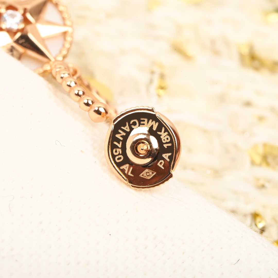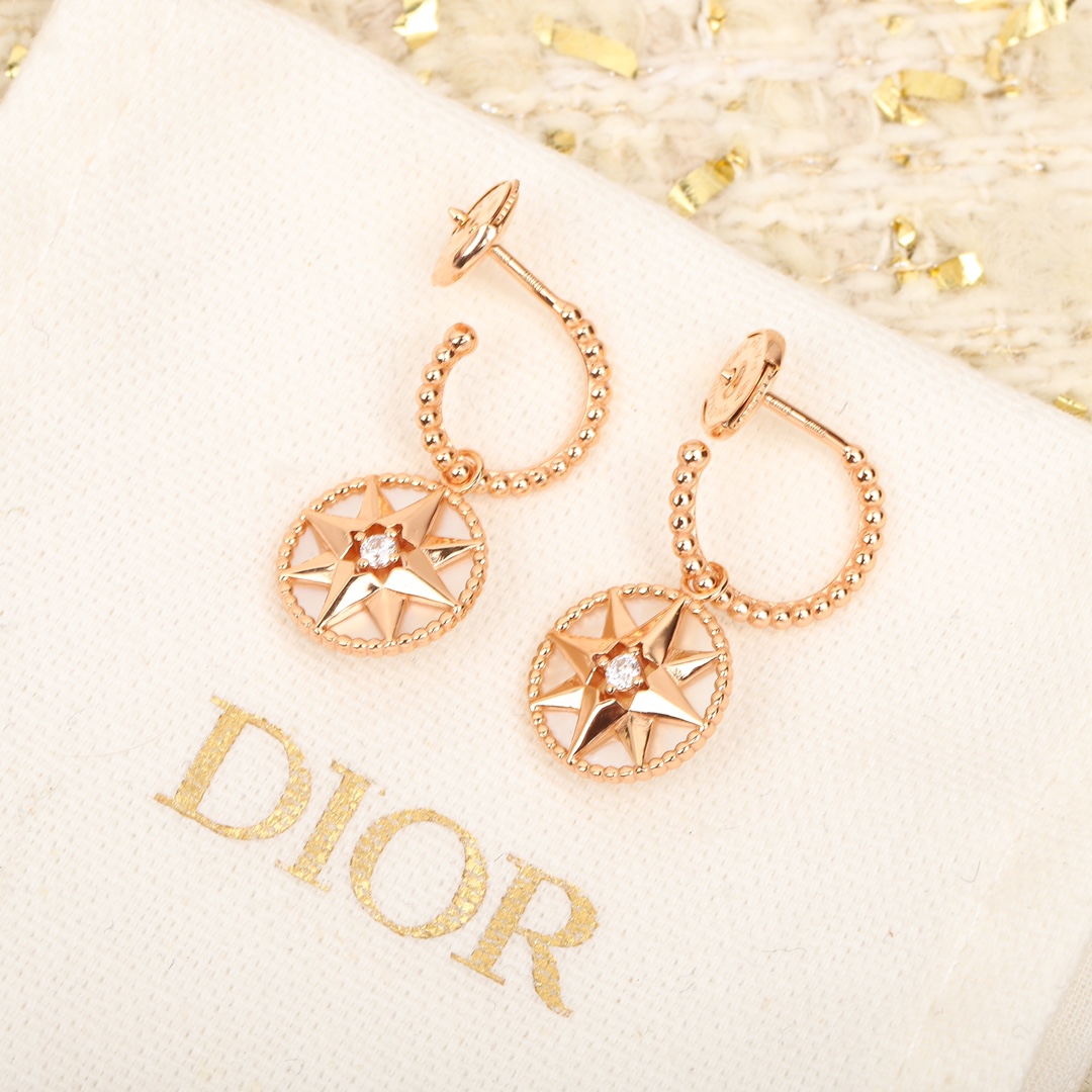 The Dor Compass Rose earrings - Rose des Vents, meaning "Compass Rose," symbolize "creation." Incorporating Christian D!or's lucky star and rose elements, they symbolize his legendary journey. Christian D!or's most moving inspirations: his beloved roses, which grew in the garden of his Granville mansion; the paths he traveled on sea voyages to promote his designs; and his unwavering belief in lucky stars – all are transformed into the delicate starbursts, compass, rope, and eight-pointed star within the "Rose Compass Rose."