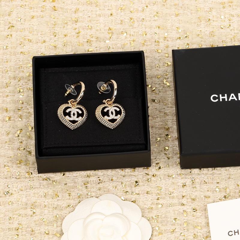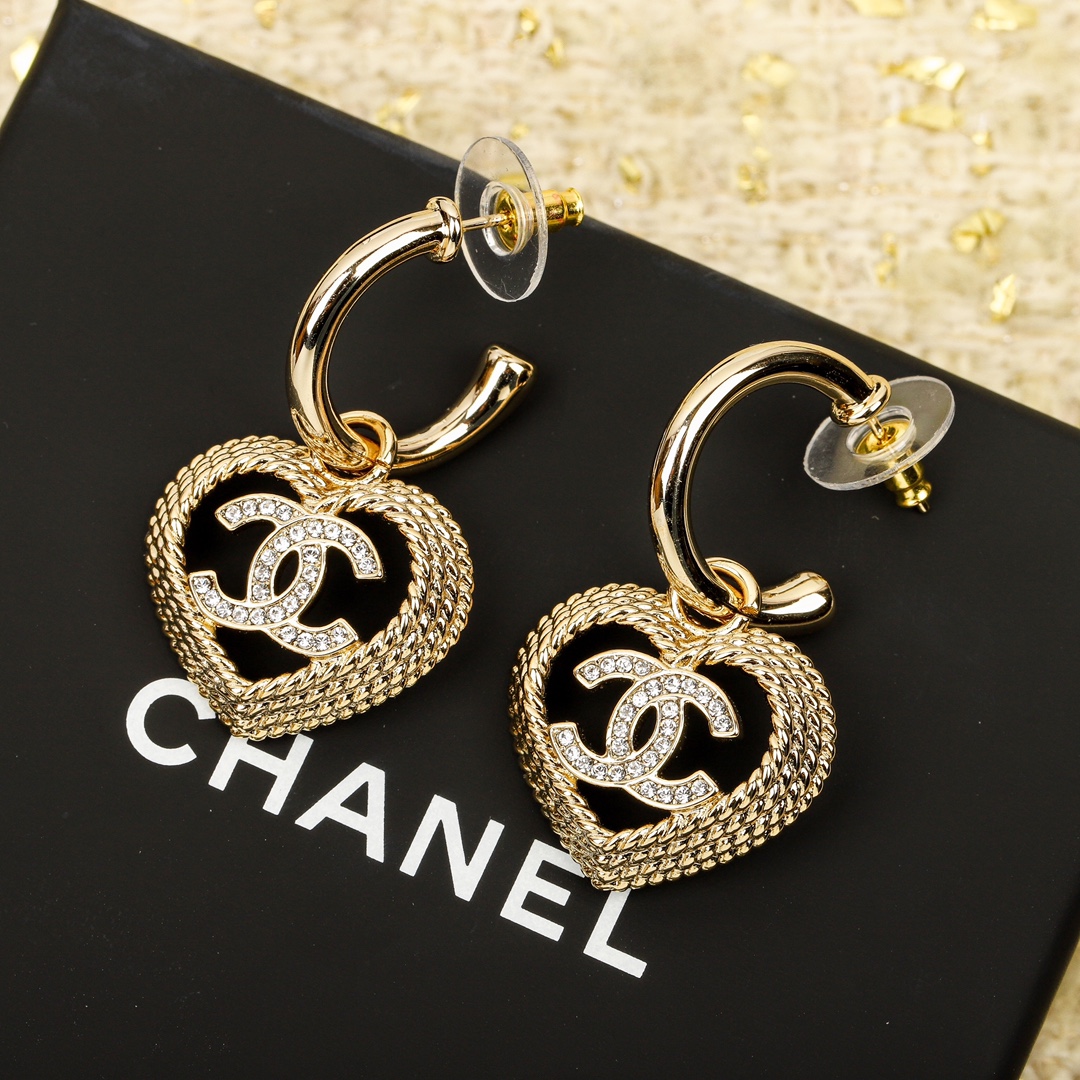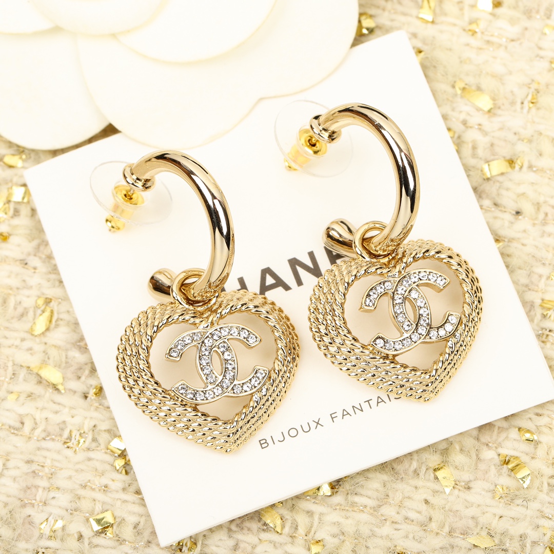 [Chanel Hollow Woven Heart Double C Earrings] The latest spring and summer 25 models are the first to be released on the entire network! The light gold hollow heart design is low-key and high-end! The double C is embellished with Swarovski, which makes the upper body sweet and fashionable.