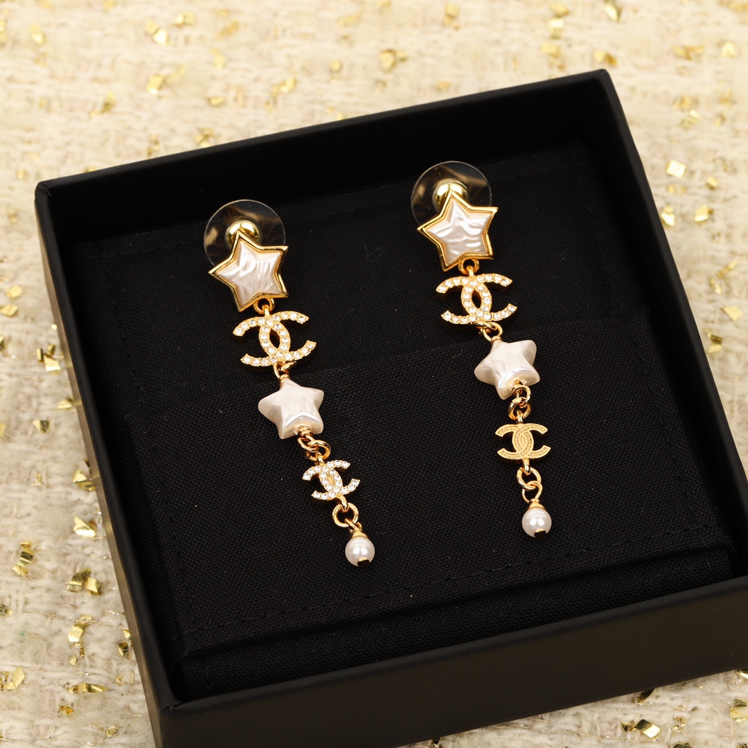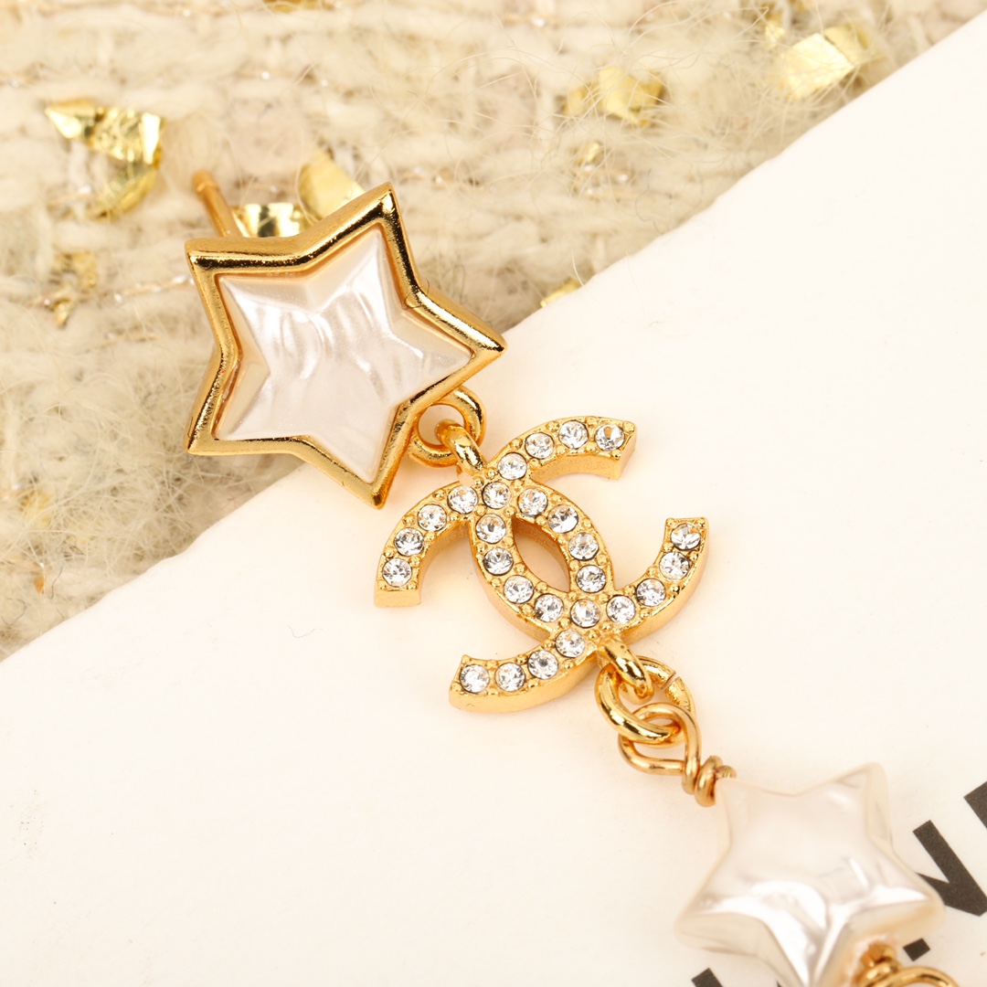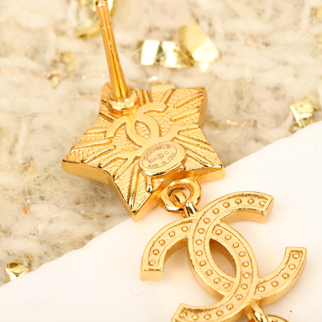 [Chanel Five-pointed Star Earrings] The classic double C earrings that must be included in every issue, consistent ZP brass material and resin craftsmanship, simple and elegant on the ear, super versatile, classic and timeless