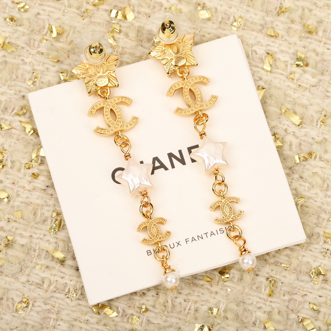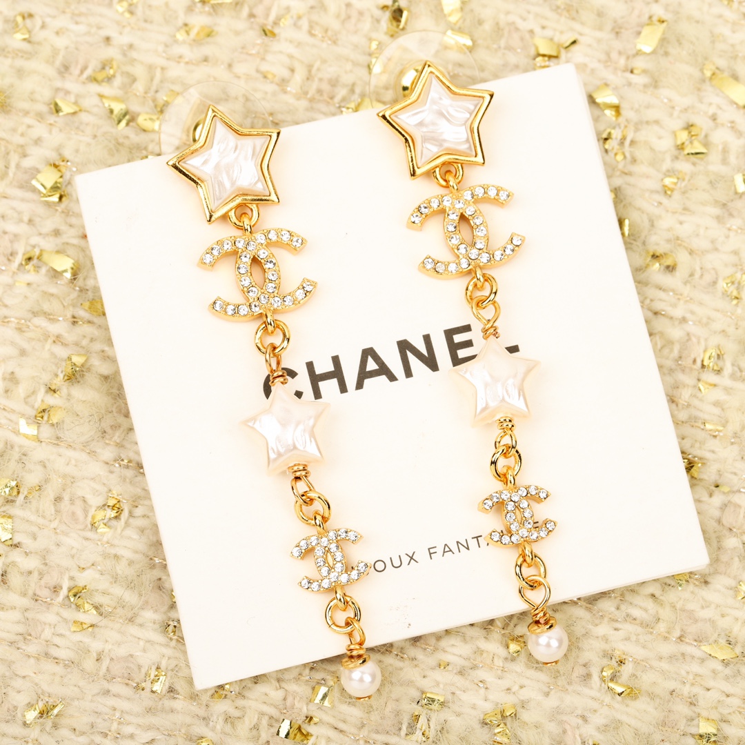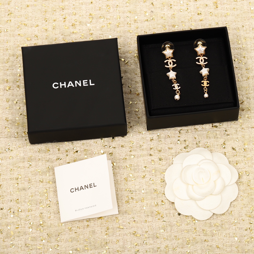 [Chanel Five-pointed Star Earrings] The classic double C earrings that must be included in every issue, consistent ZP brass material and resin craftsmanship, simple and elegant on the ear, super versatile, classic and timeless
