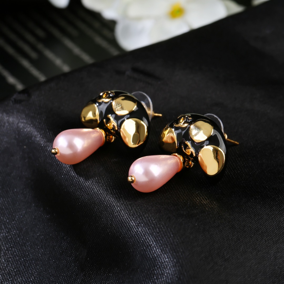 Chanel's latest enamel earrings are classic and durable, with a unique double C design and consistent brass material.