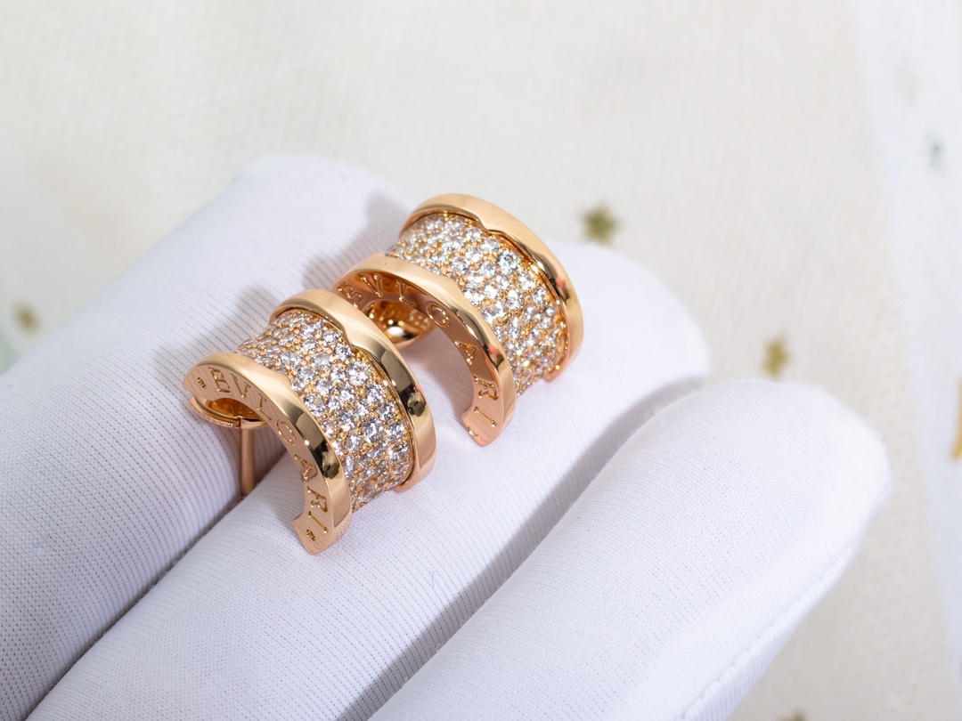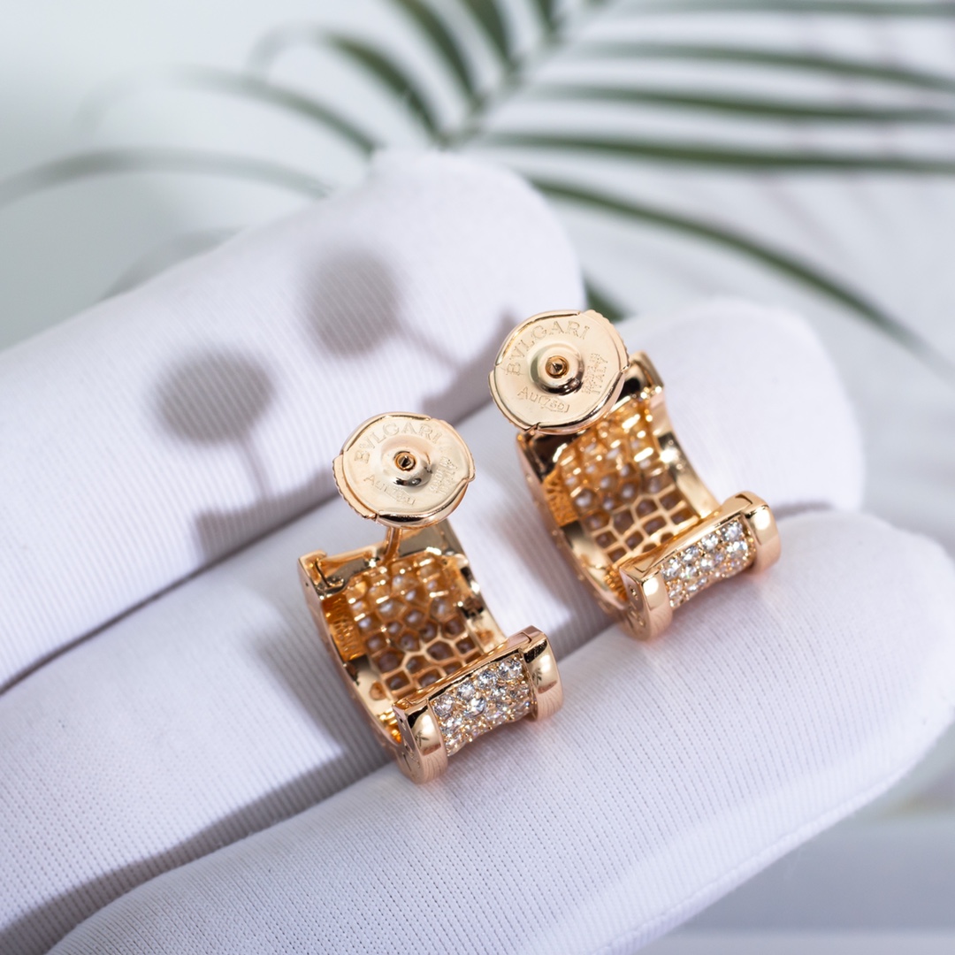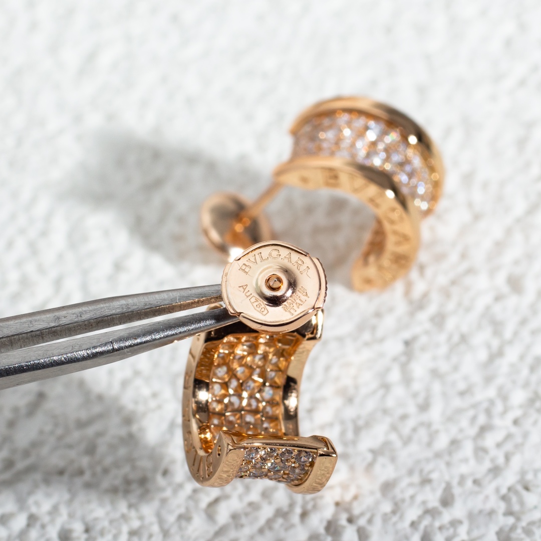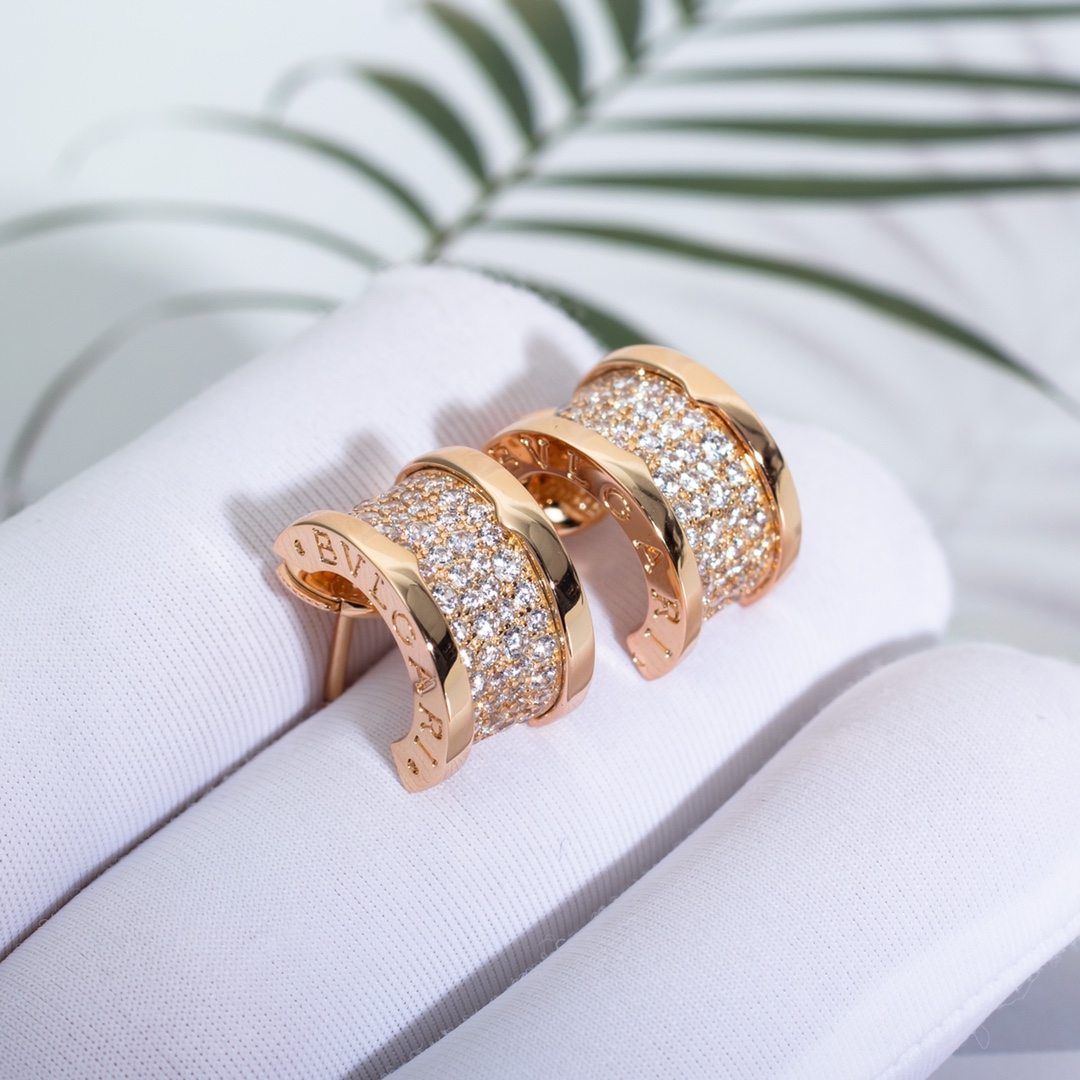 Bulgari's "Slender Waist" stud earrings, impeccably crafted with CNC technology. Women truly can't resist sparkling jewelry. Those who've purchased a "Slender Waist" necklace often order the matching stud earrings. They're both luxurious and versatile, and are highly worn.