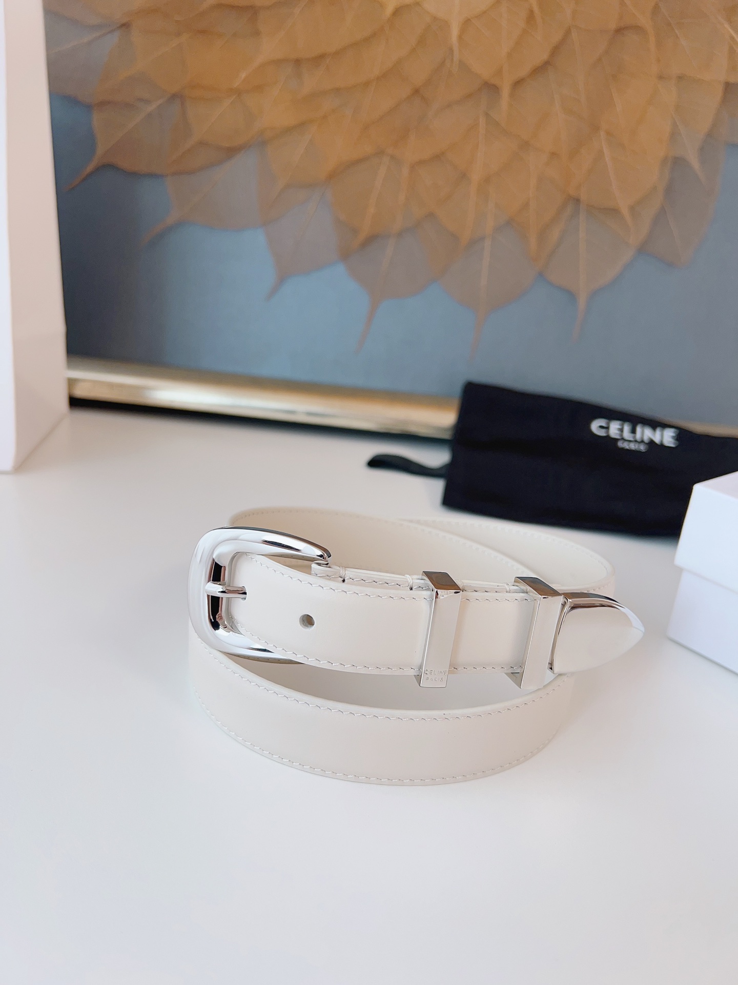 Celine medium matte belt 2.5 cm mid-rise Round buckle Round buckle 2 metal rings and 1 metal tip CELINE PARIS logo engraved on the bottom of the first ring.