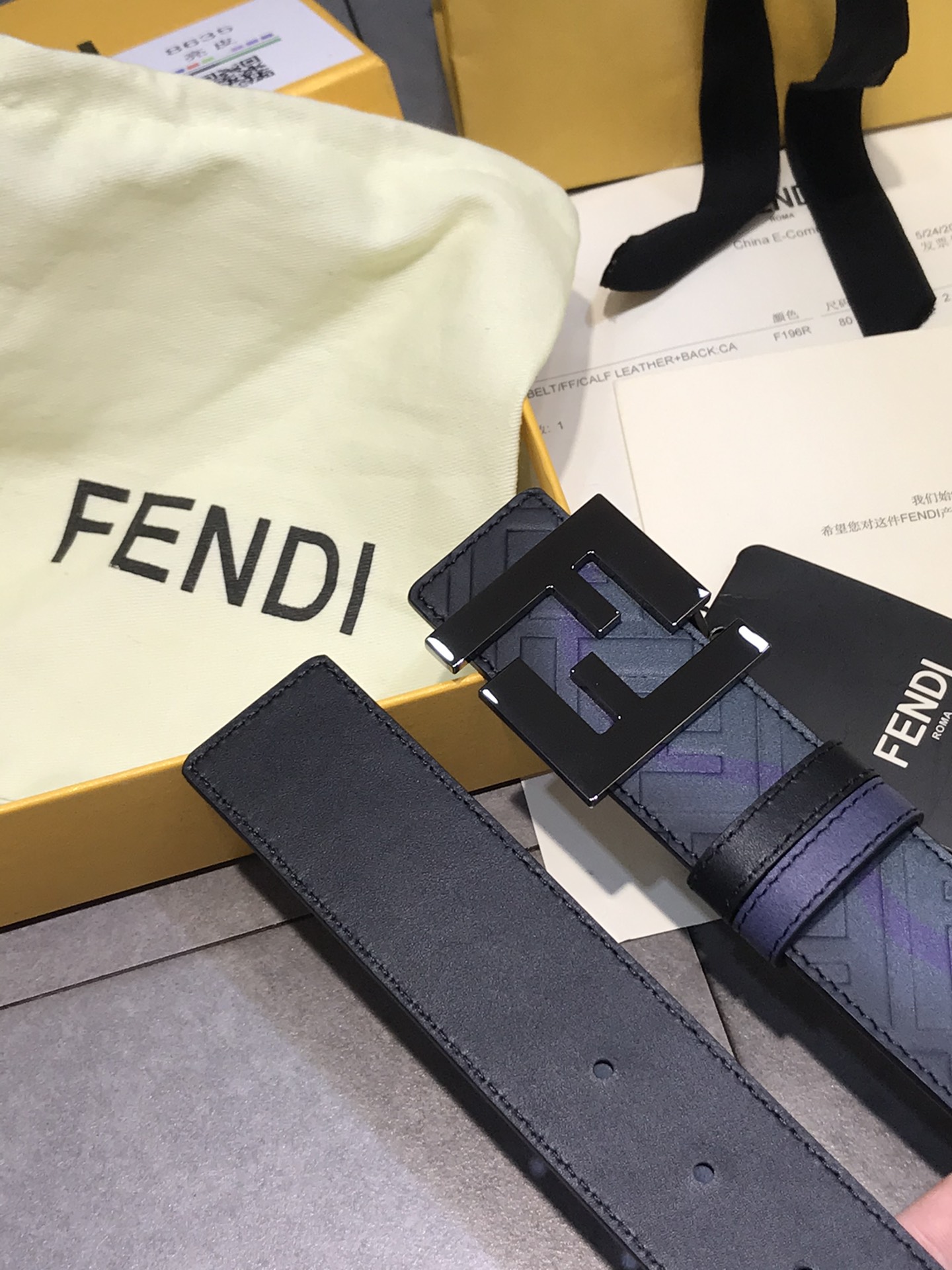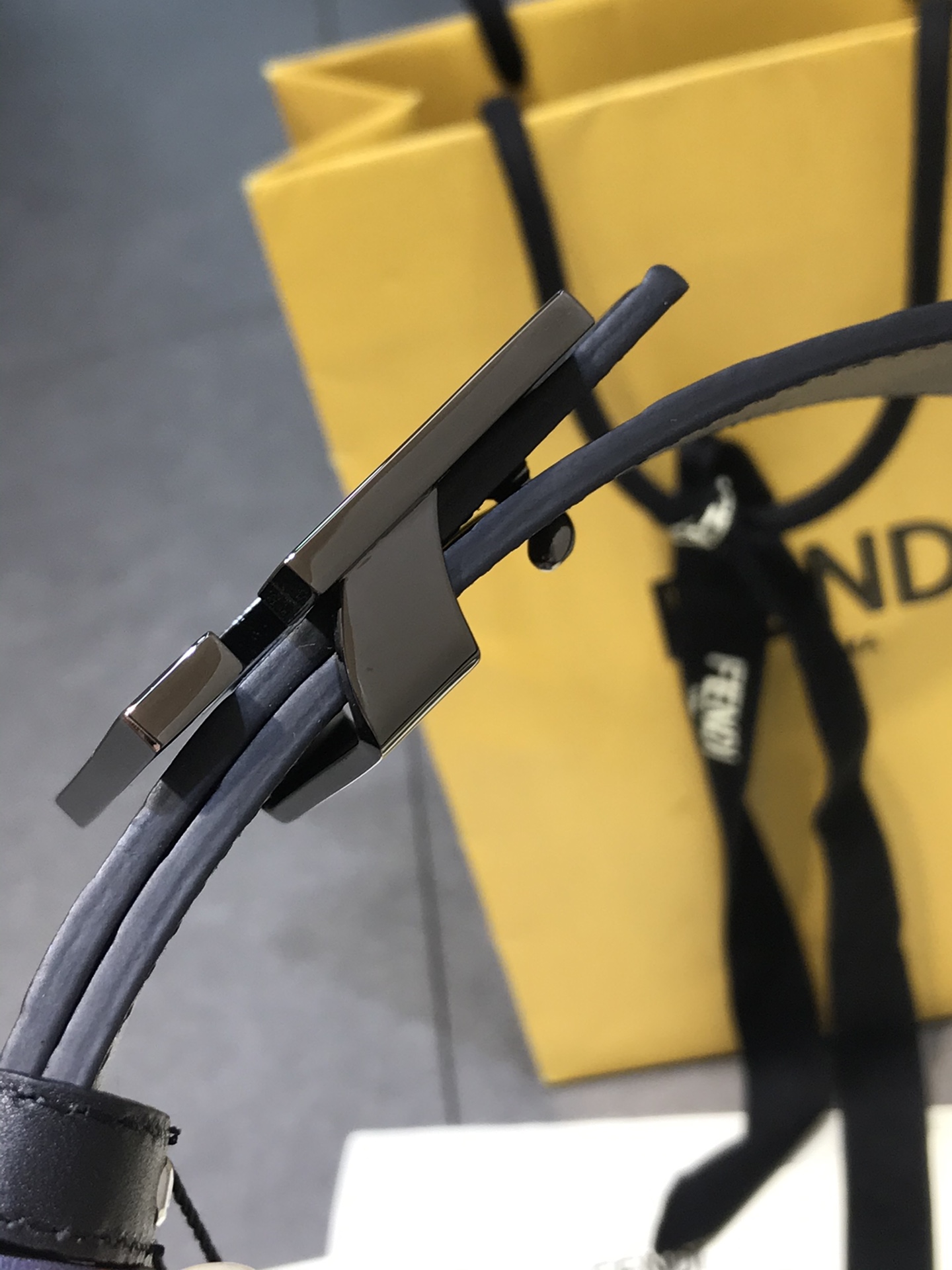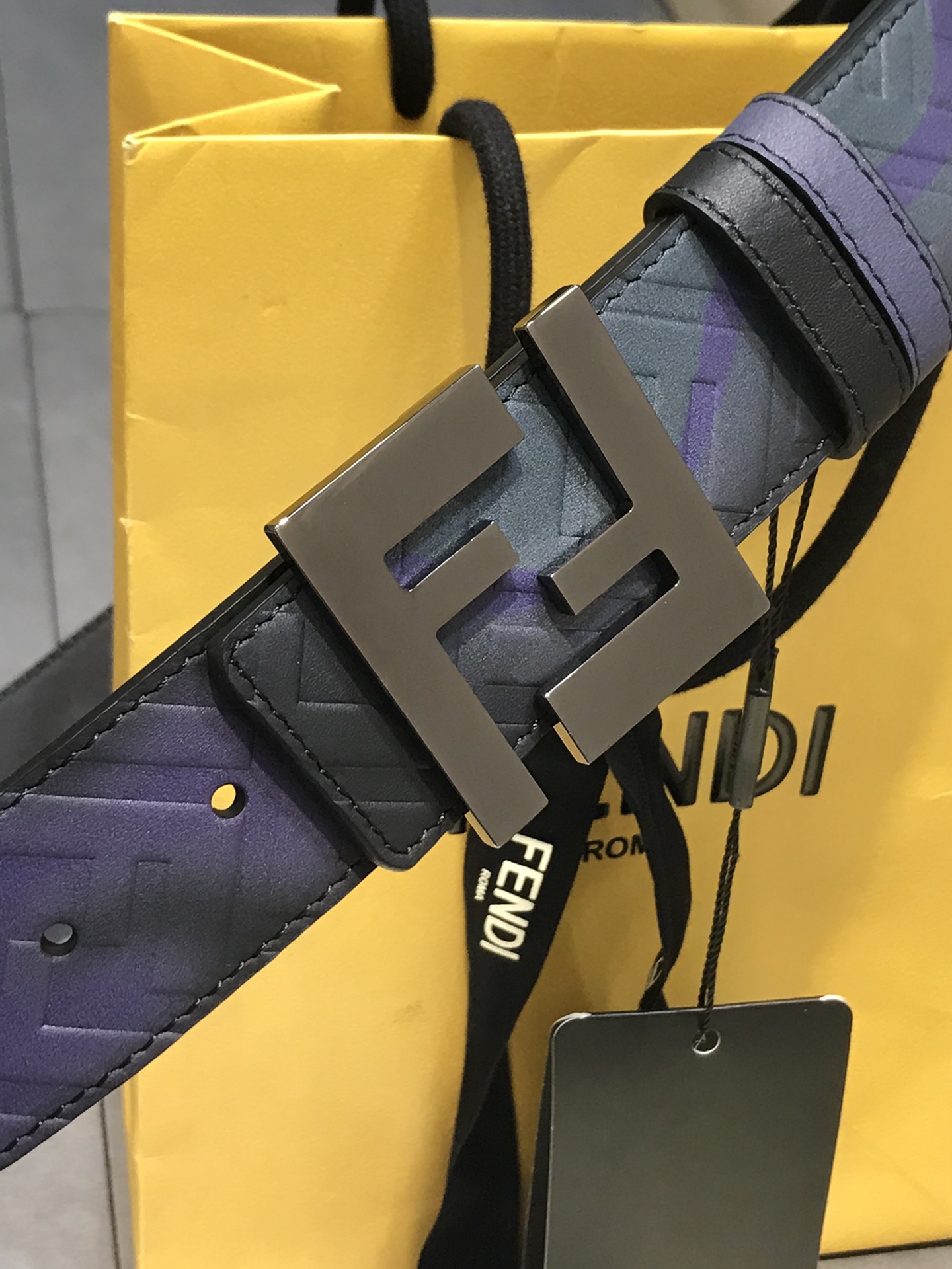 Fendi's new FD wide 40MM logo-shaped wide belt with a studded buckle and embossed two-tone FF pattern