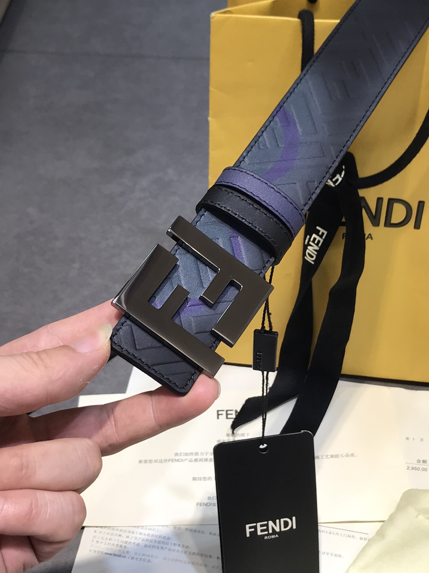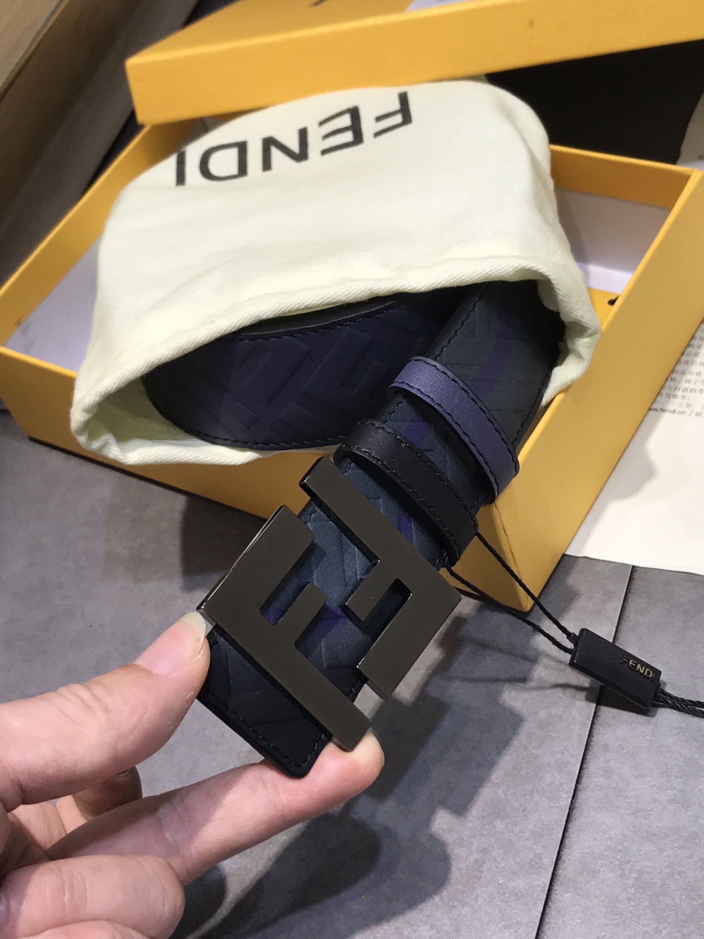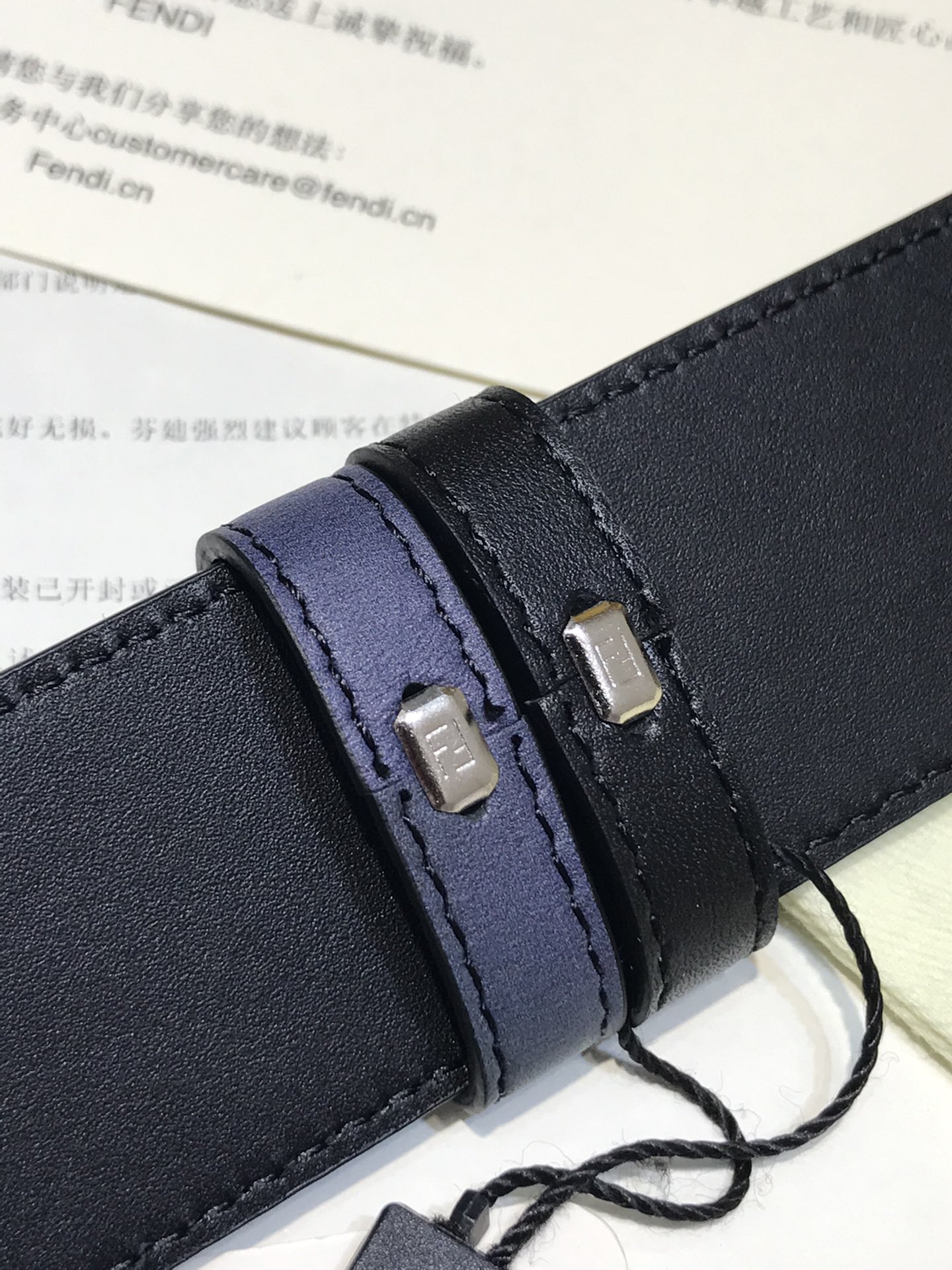 Fendi's new FD wide 40MM logo-shaped wide belt with a studded buckle and embossed two-tone FF pattern