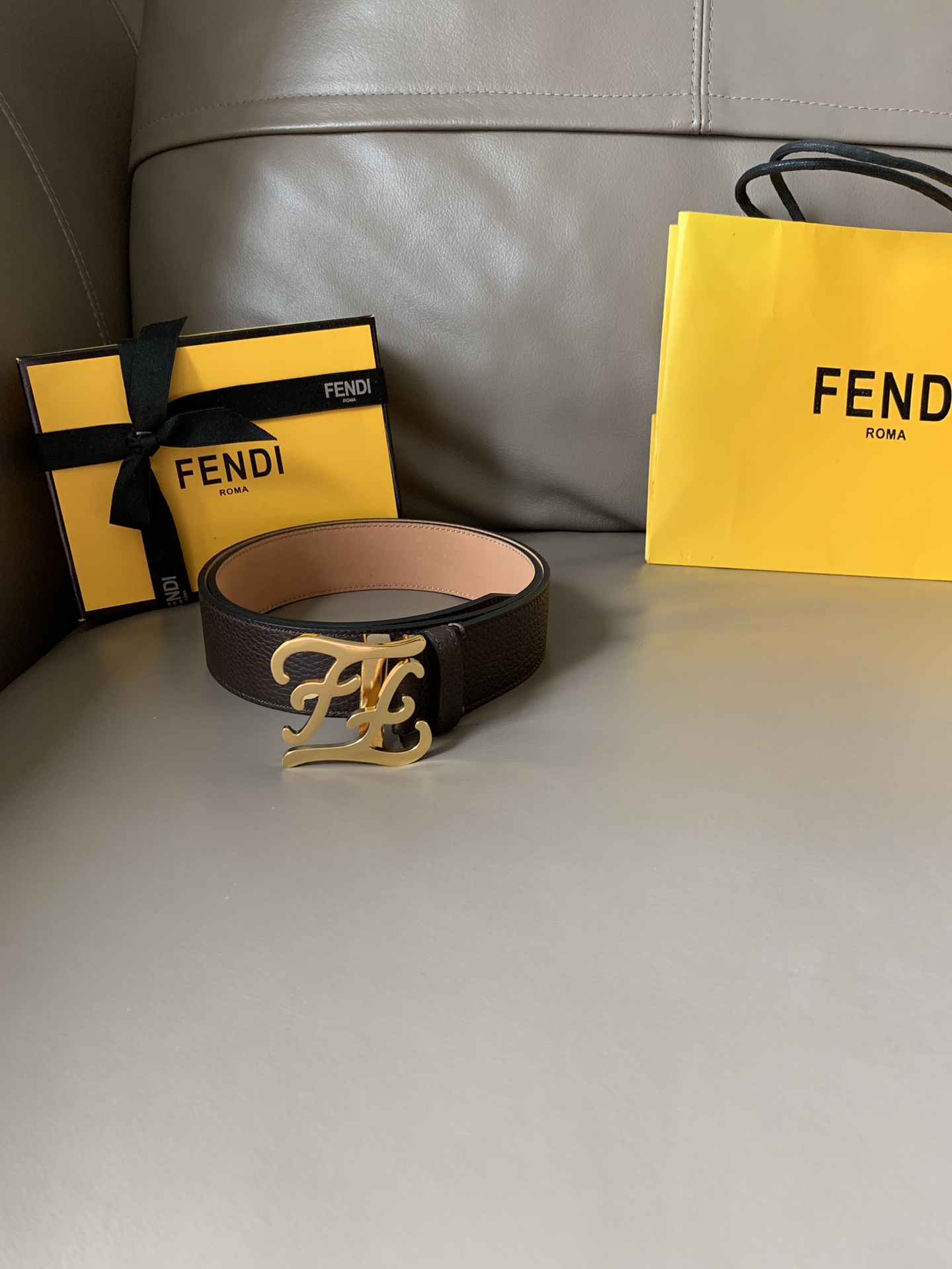 Fendi's new Karligaphy buckle belt, black, 4.0cm wide