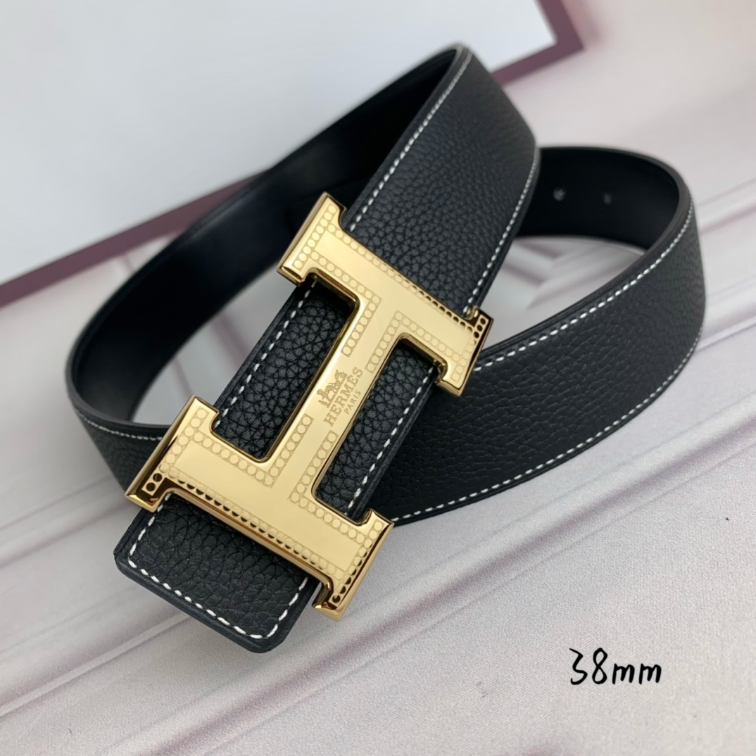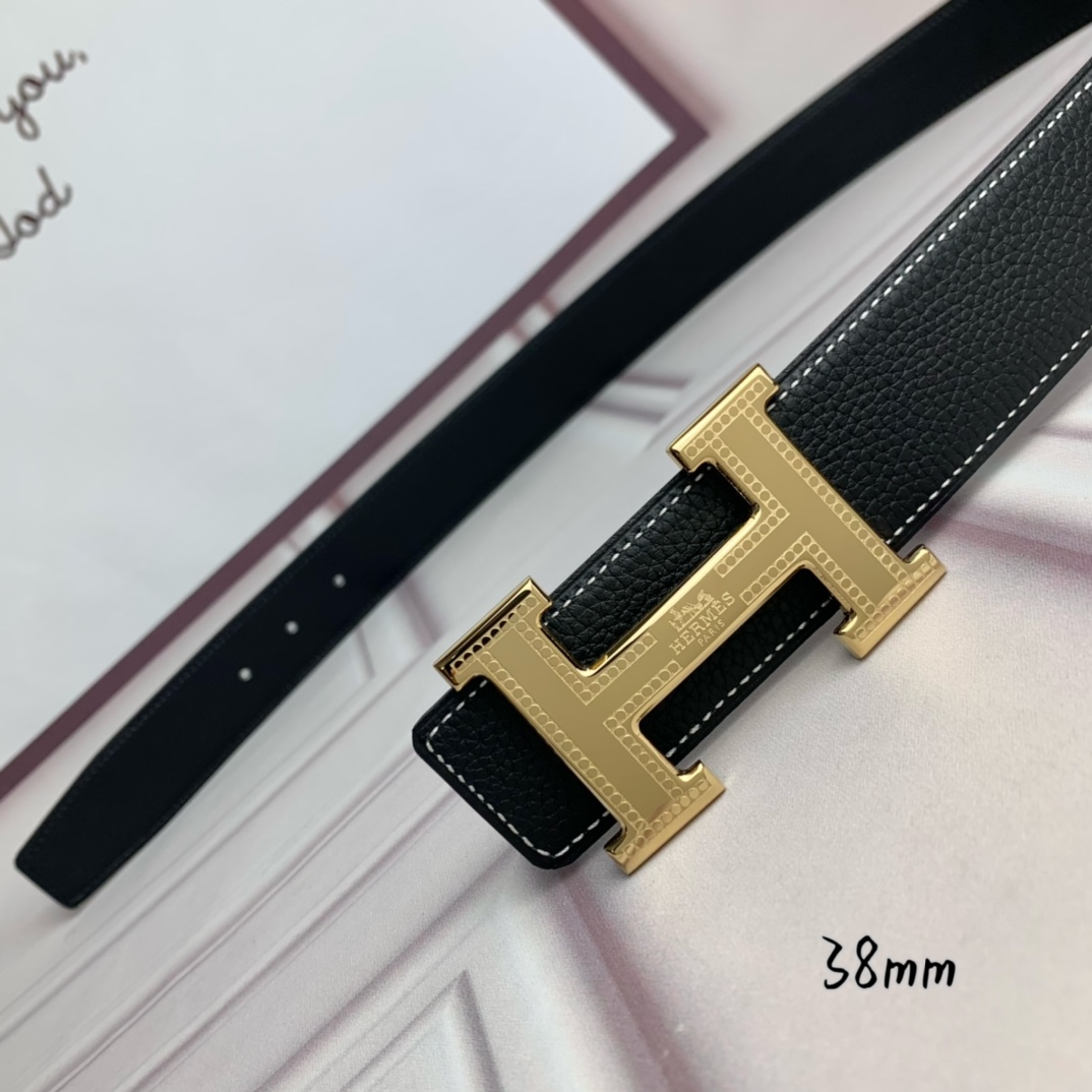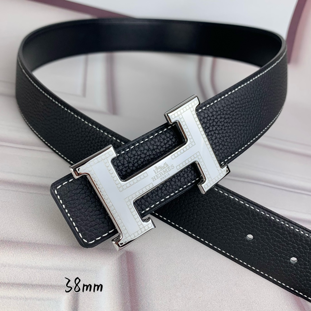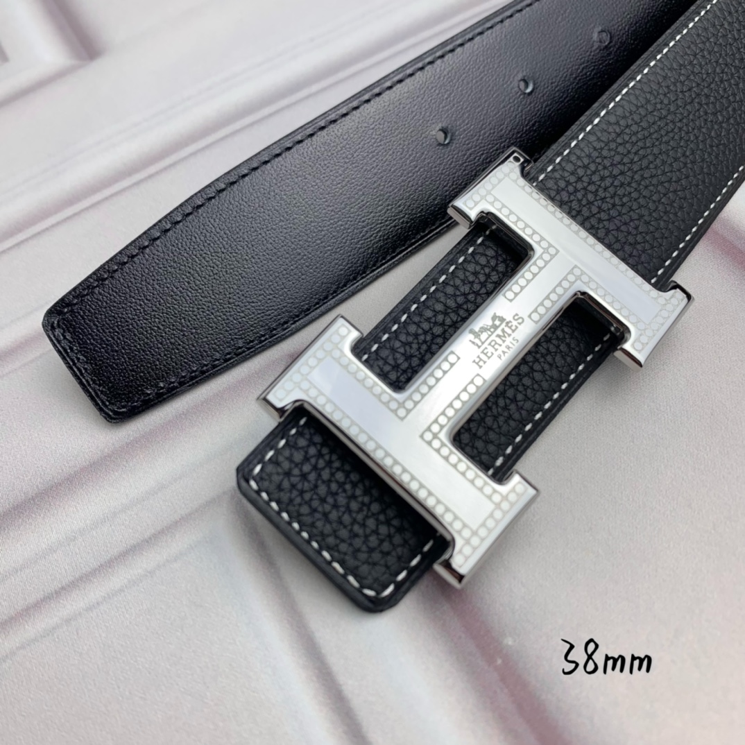 Hermè s classic flat-headed double-sided black lychee white line with black plain inch and a half 38mm with H glossy gold/silver buckle.