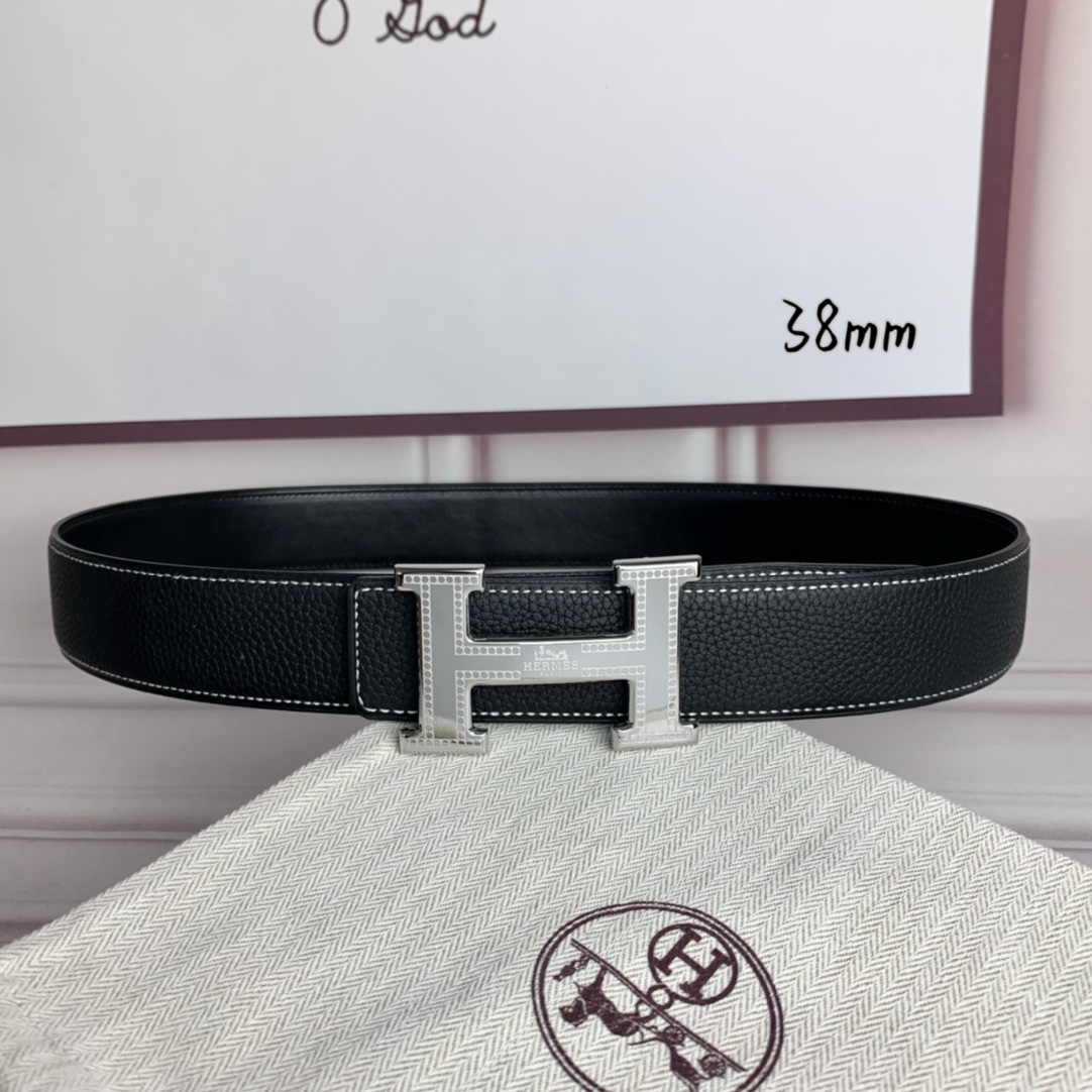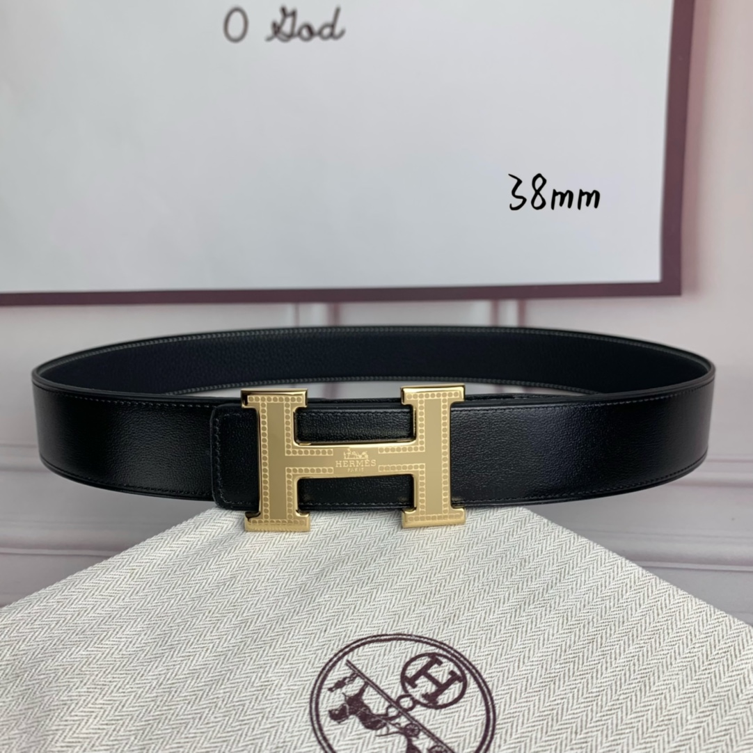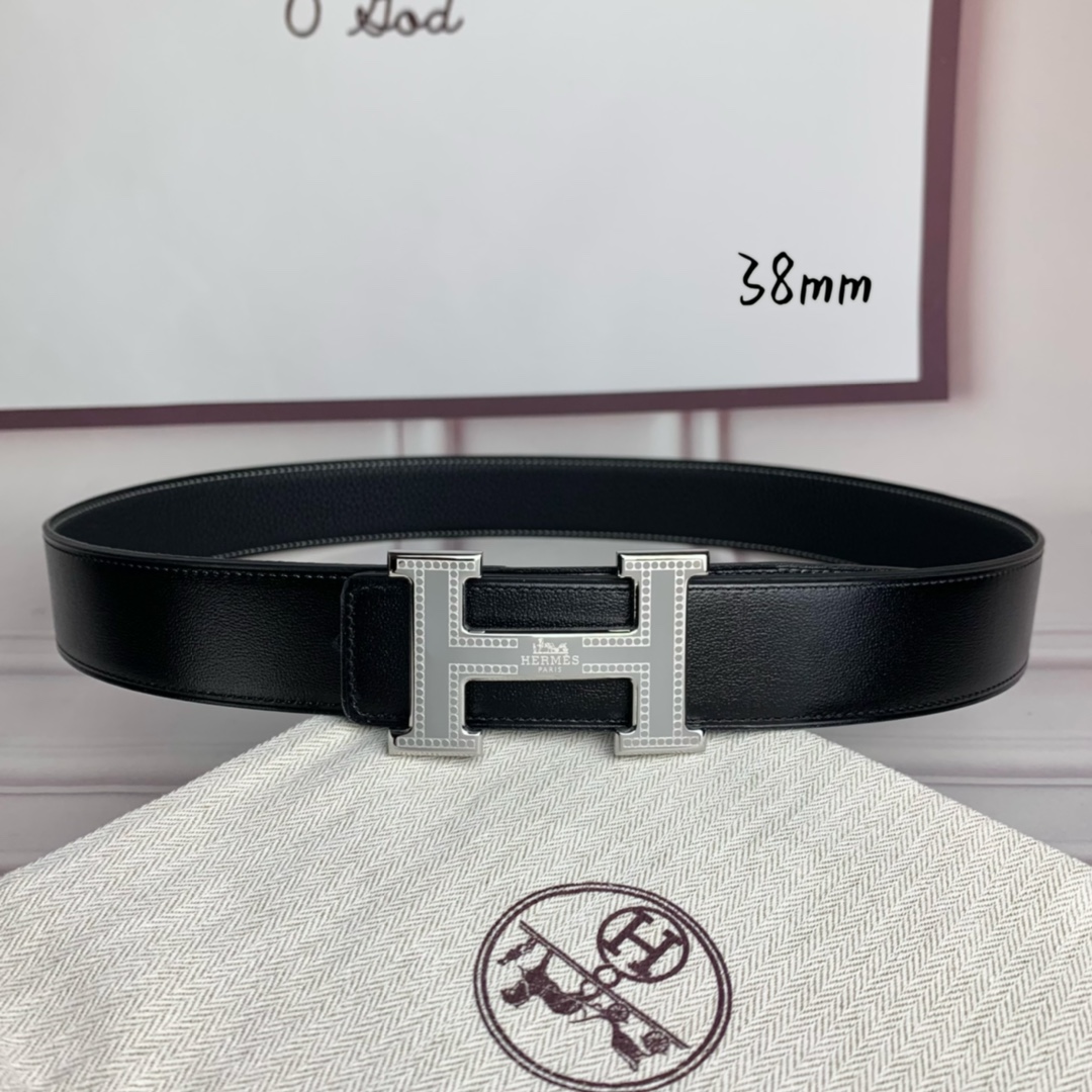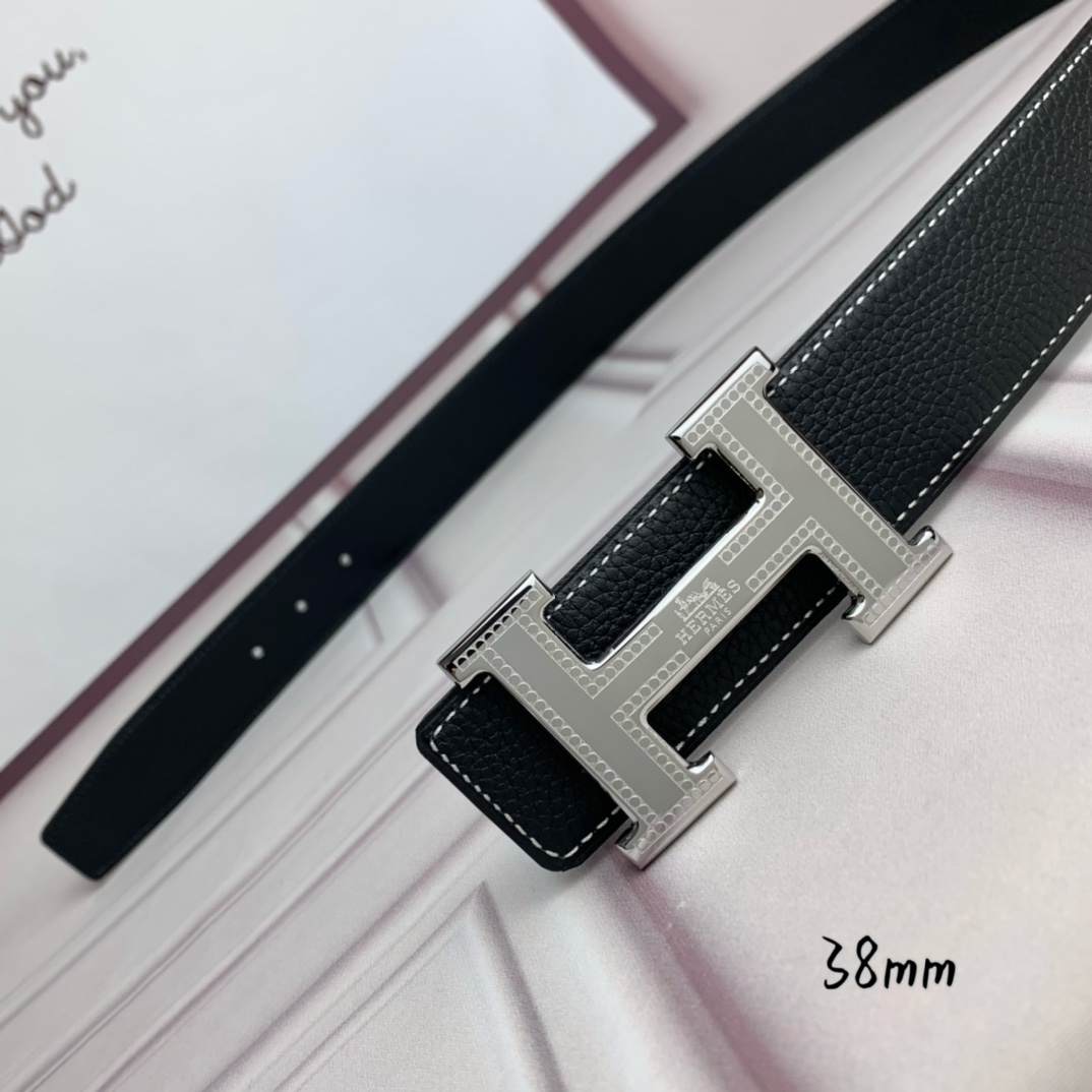 Hermè s classic flat-headed double-sided black lychee white line with black plain inch and a half 38mm with H glossy gold/silver buckle.