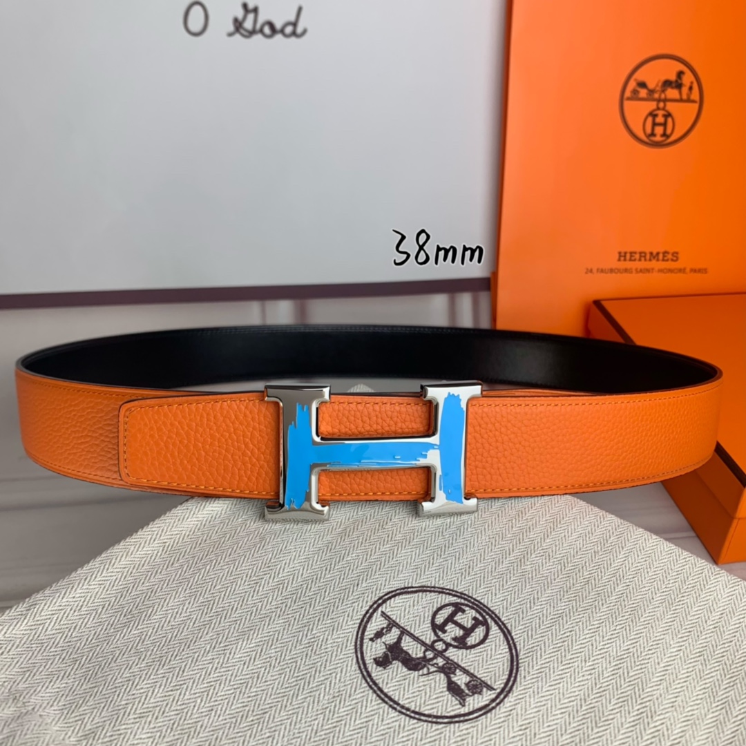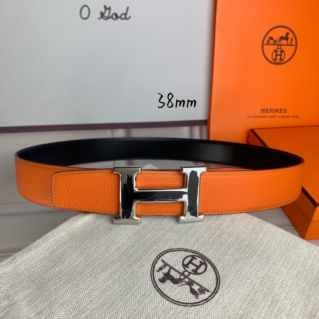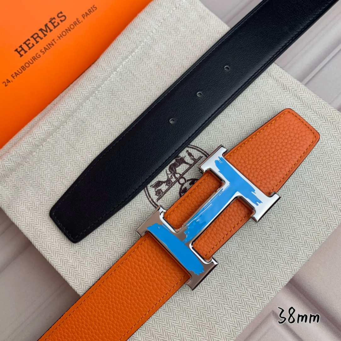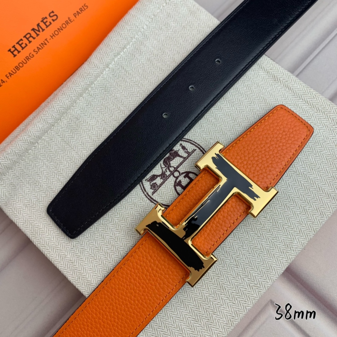 Hermès Hermes double-headed eight-character gray lychee pattern with black plain pattern inch and a half 38mm with double H graffiti glue drop gold black/silver black/silver blue buckle.