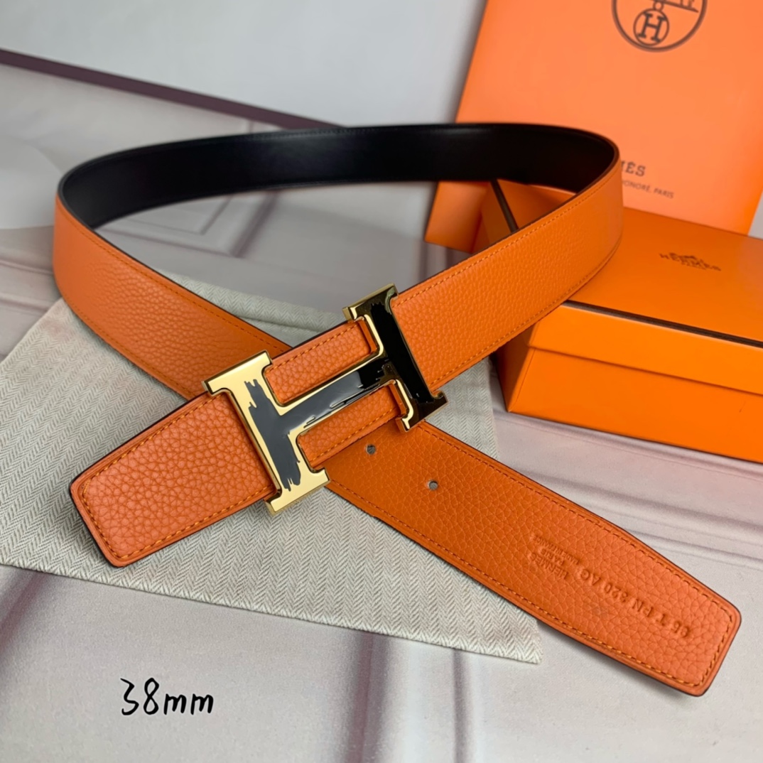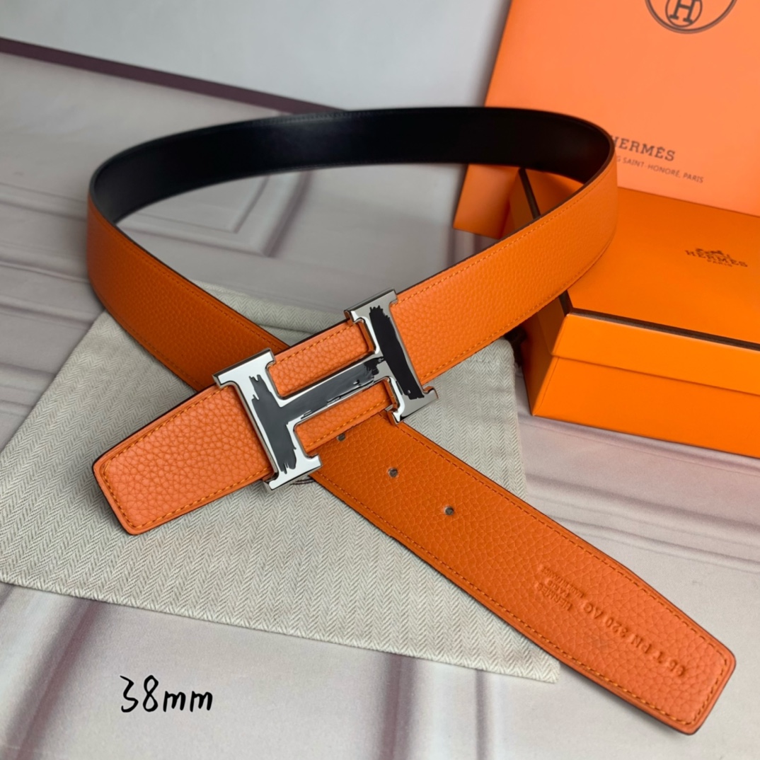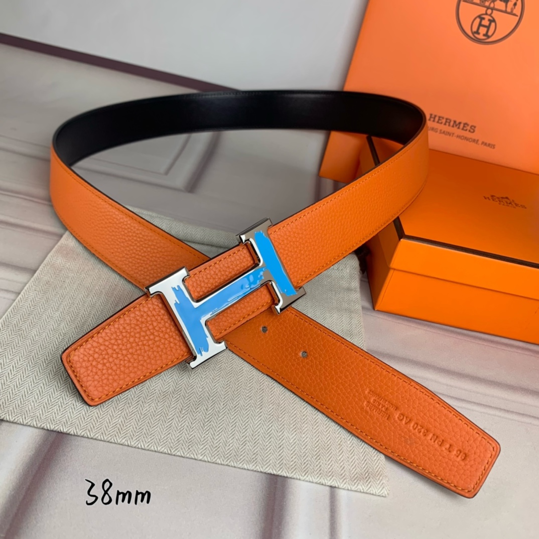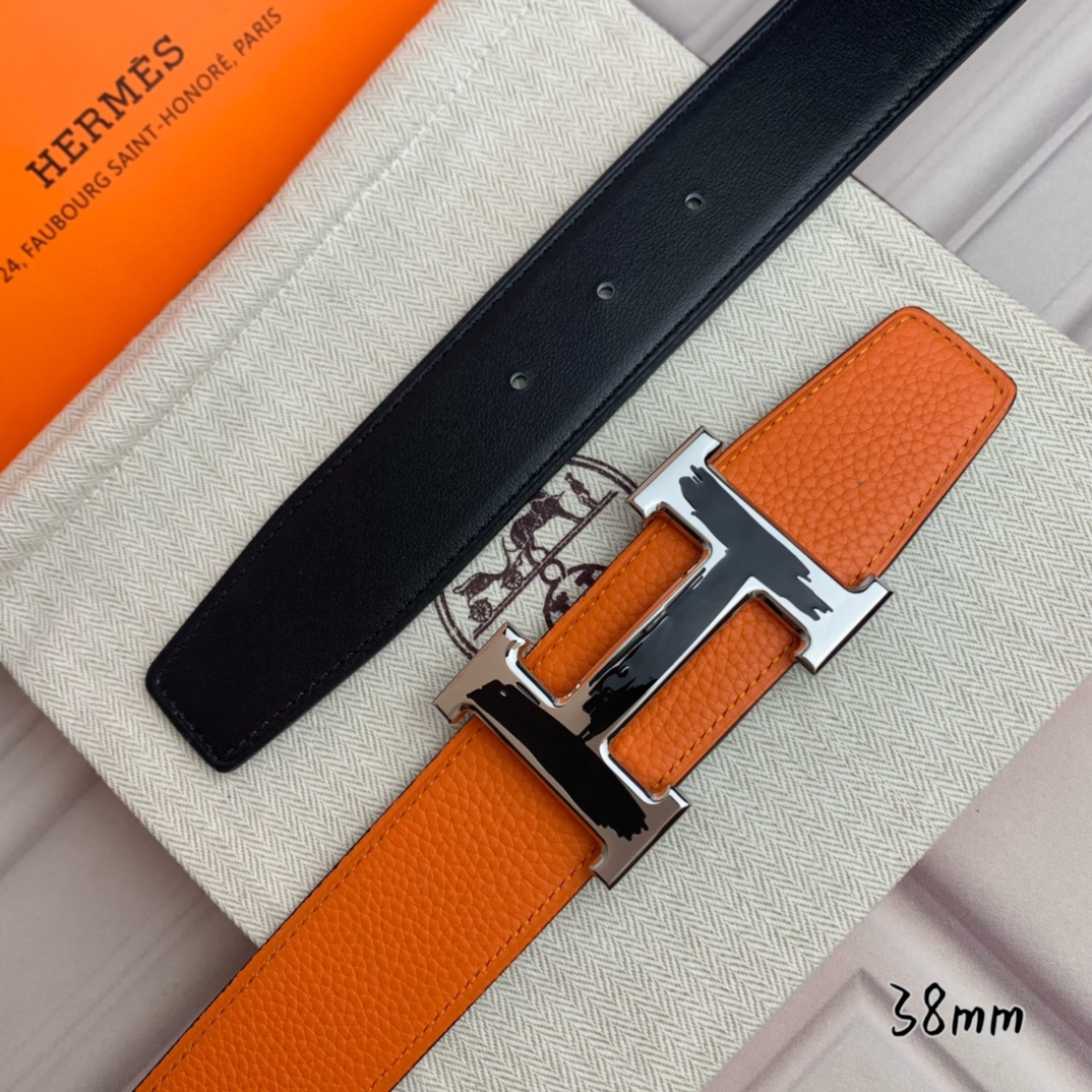 Hermès Hermes double-headed eight-character gray lychee pattern with black plain pattern inch and a half 38mm with double H graffiti glue drop gold black/silver black/silver blue buckle.