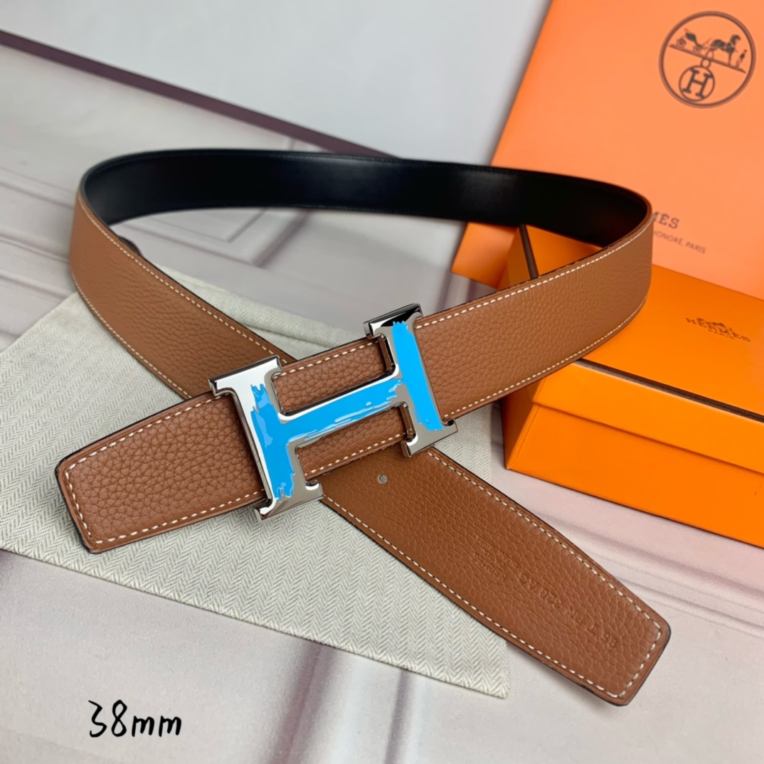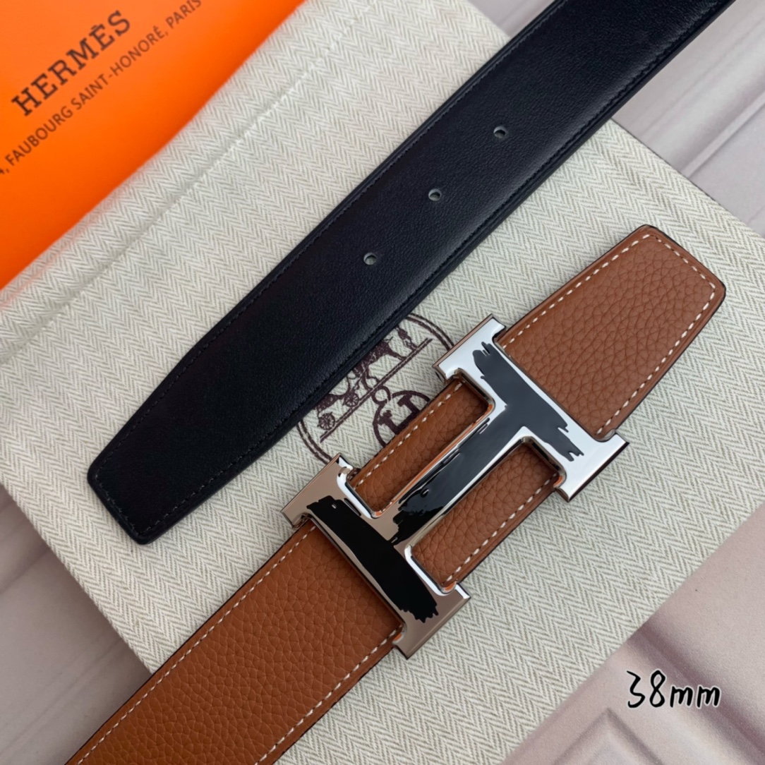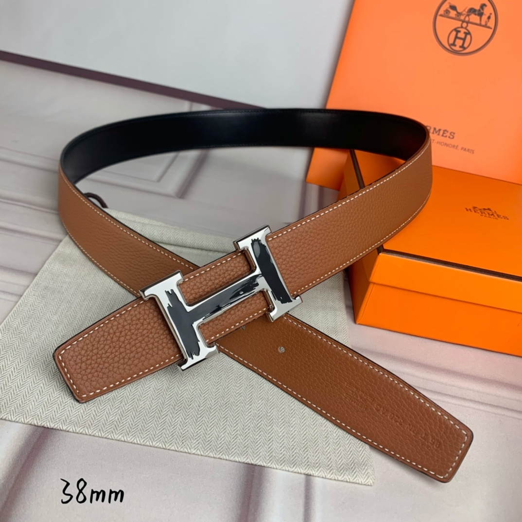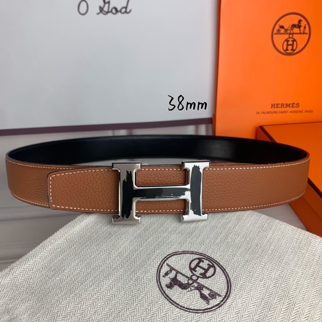 Hermès Hermes double-headed eight-character gray lychee pattern with black plain pattern inch and a half 38mm with double H graffiti glue drop gold black/silver black/silver blue buckle.