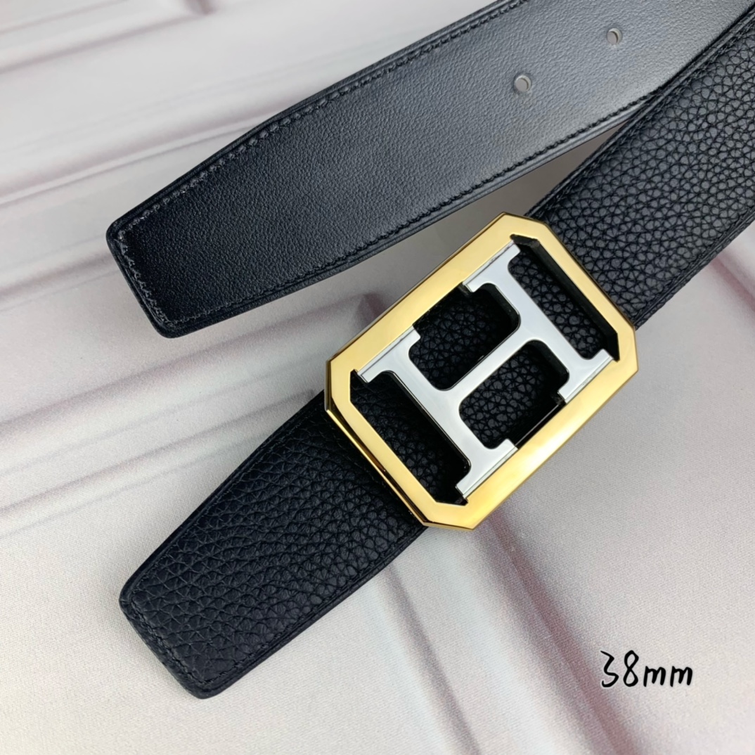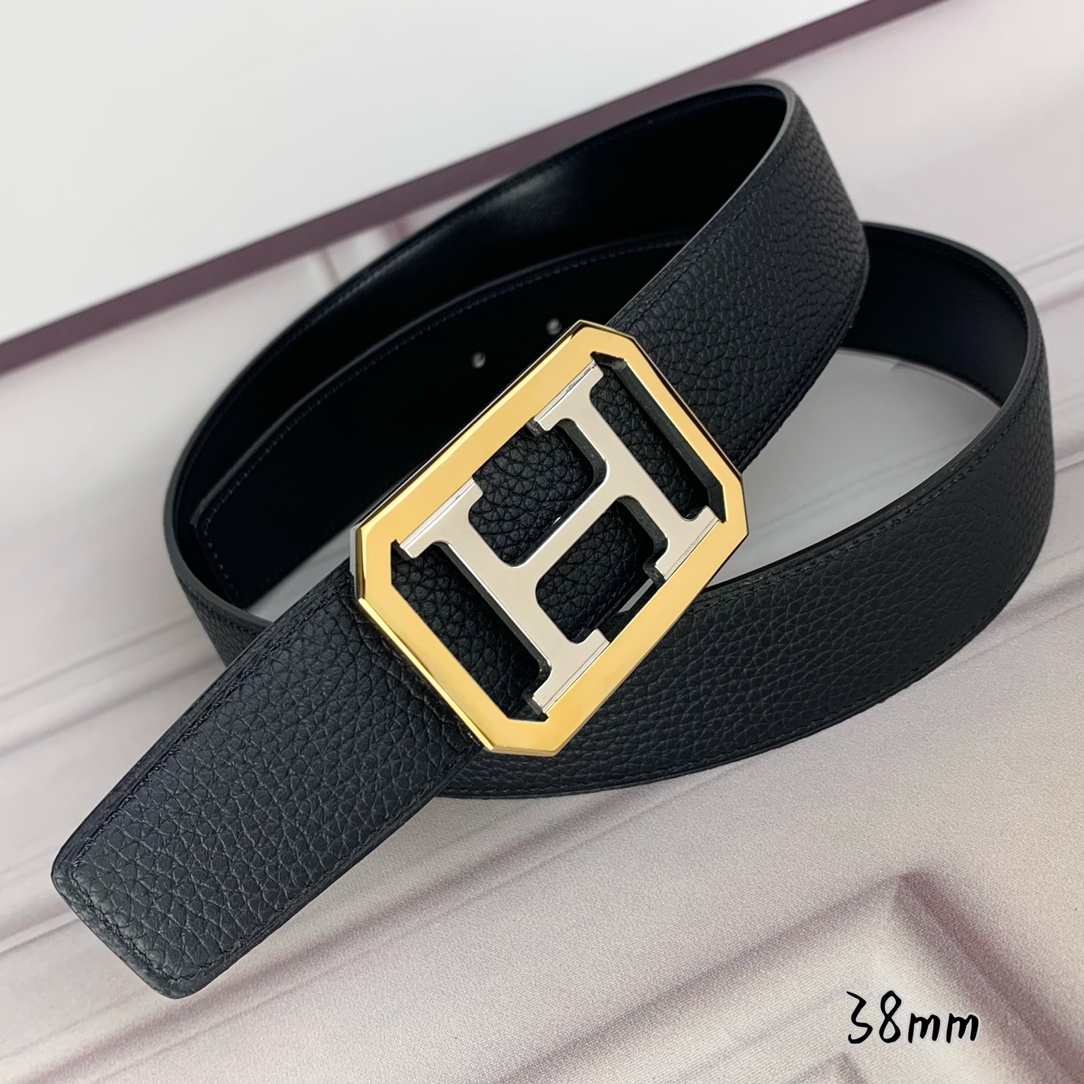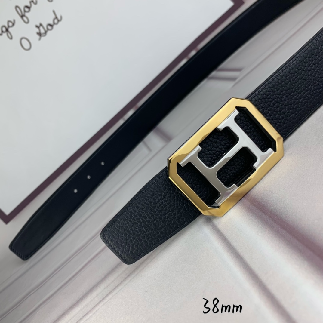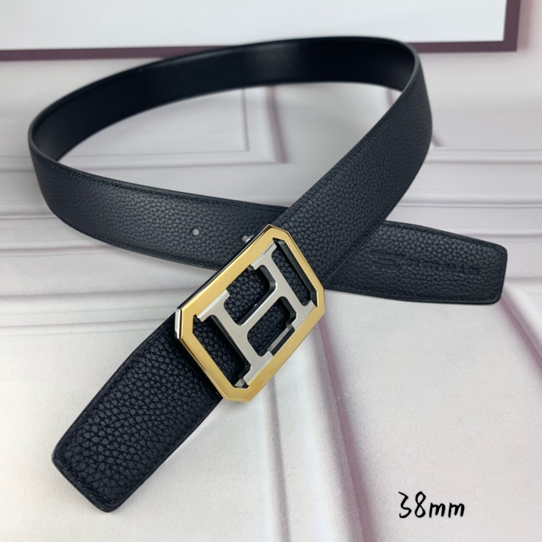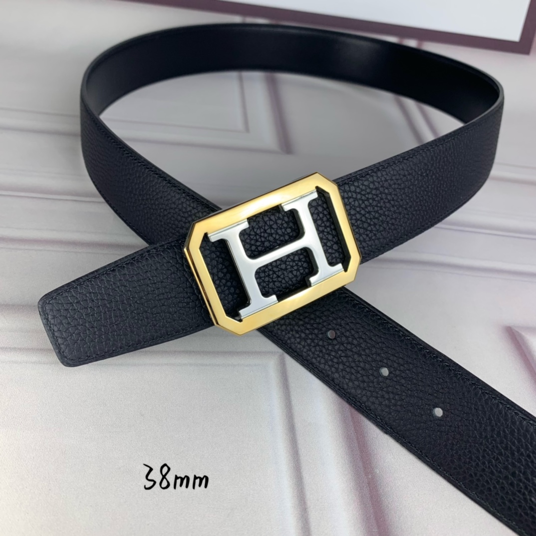 Hermès Hermes double-pointed black lychee pattern with black plain pattern inch and a half 38mm with halftone silver H gold frame buckle.