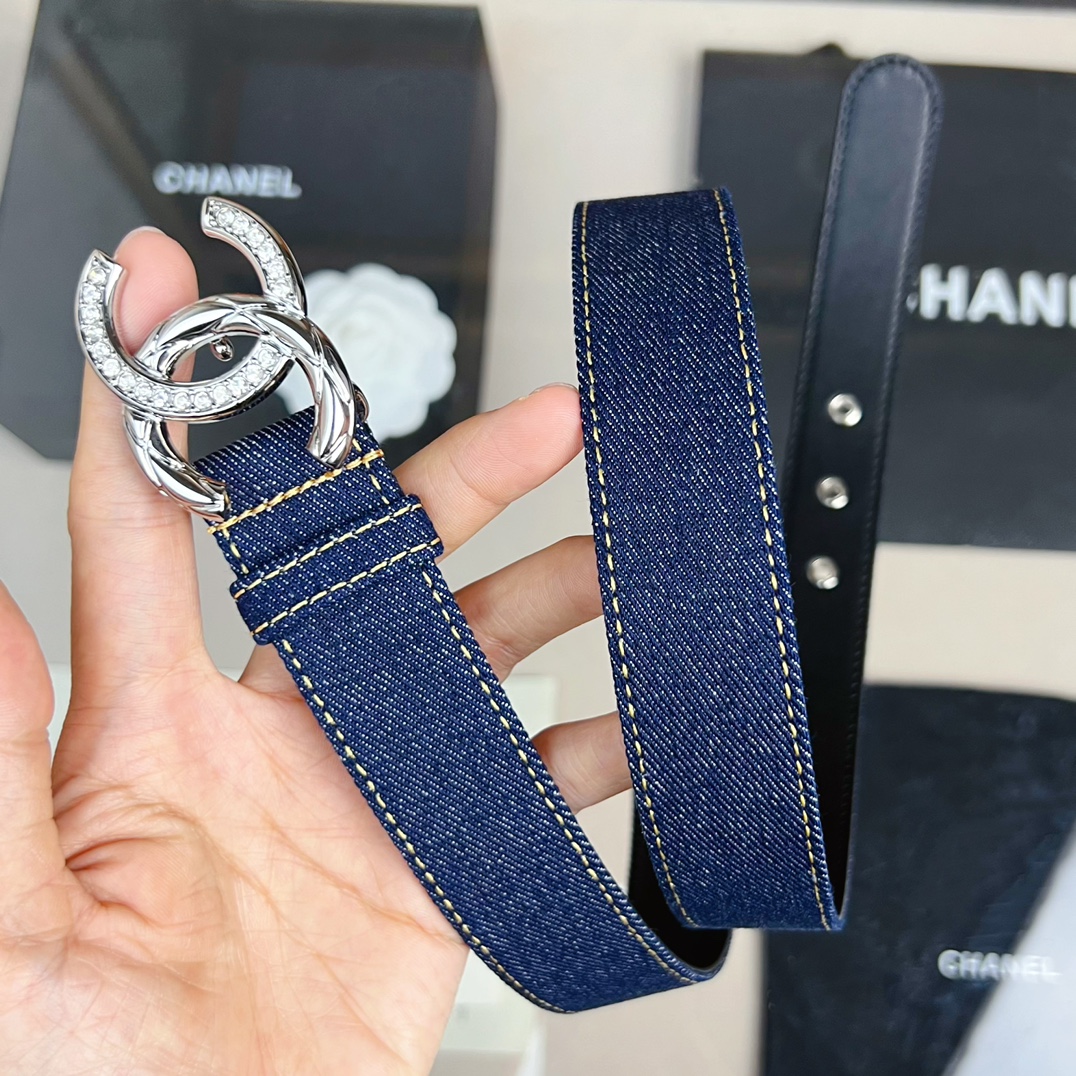 Chanel belt classic denim blue belt #𝐂𝐡𝐚𝐧𝐞𝐥# simple waist pleats all-match retro personality cloth collar 𝐁𝐞𝐥𝐭 belt 30mm