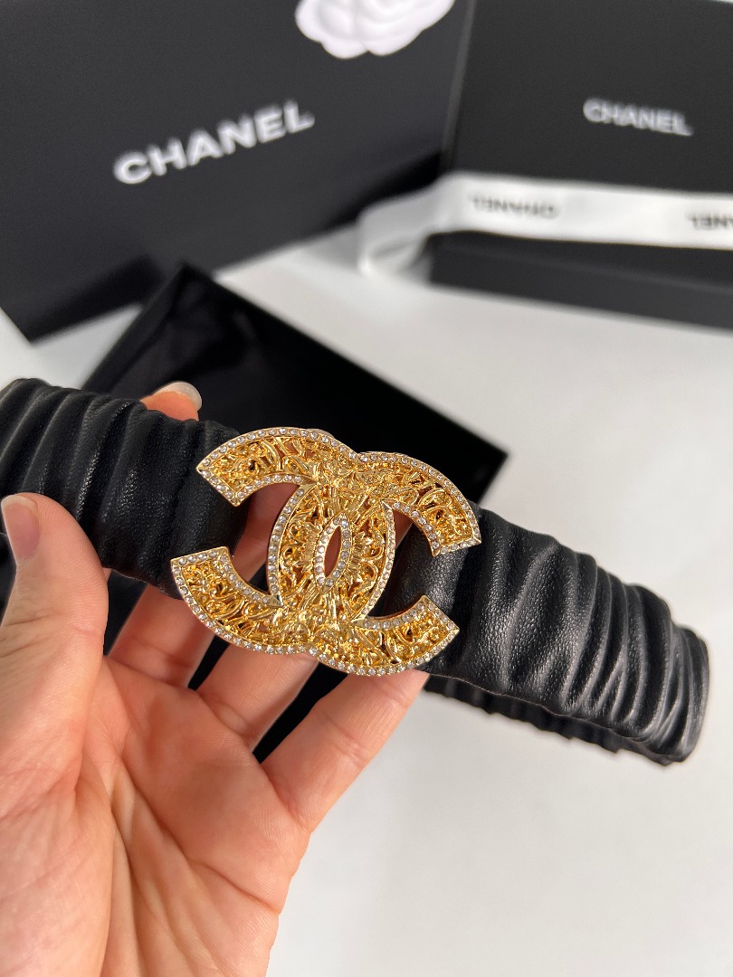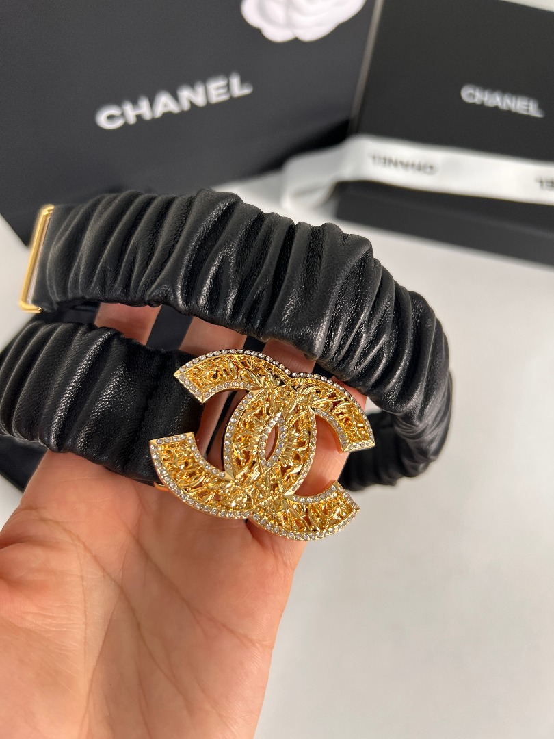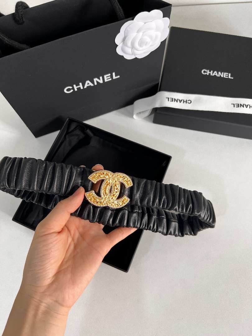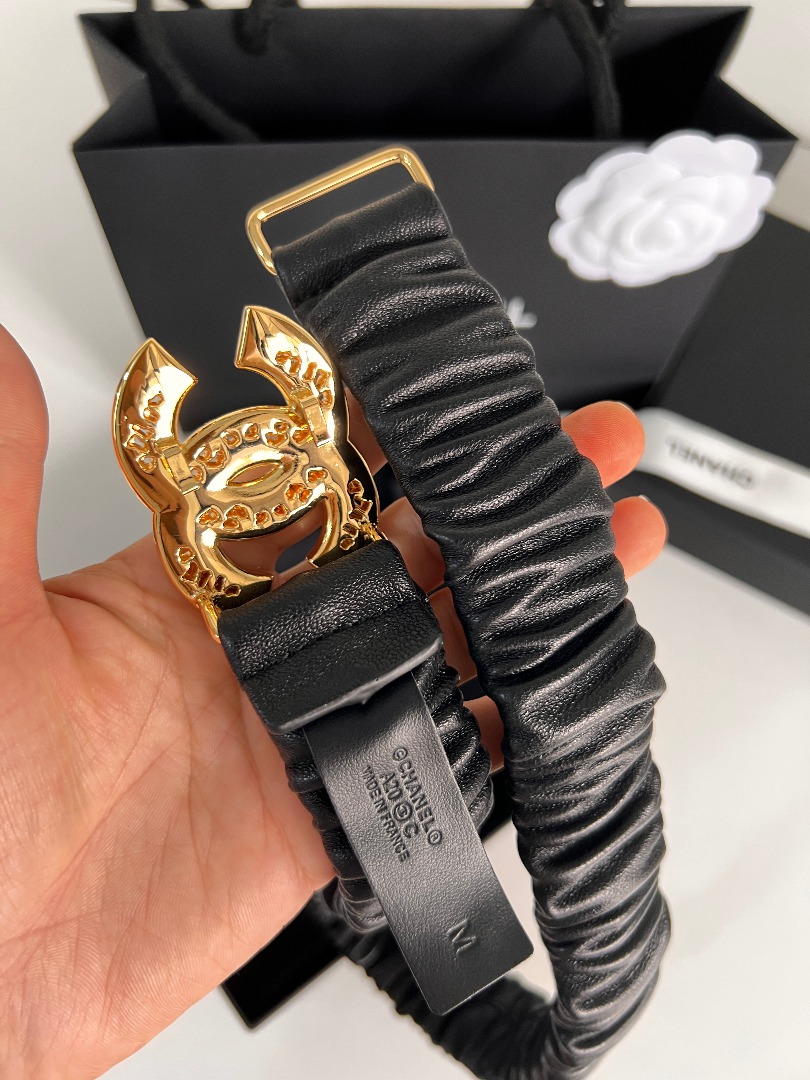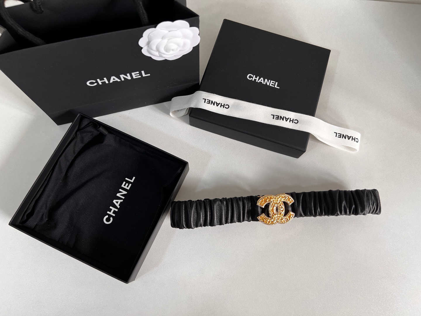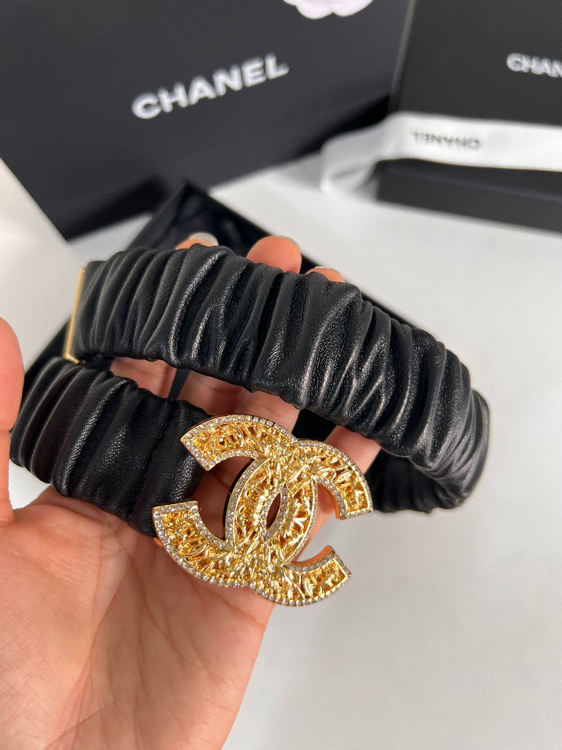 Chanel classic elastic belt #𝐂𝐡𝐚𝐧𝐞𝐥# pleated versatile double 𝗖-𝗟𝗼𝗴𝗼 elastic belt collar 𝐁𝐞𝐥𝐭 belt 30mm "Green collar, my heart is wandering"