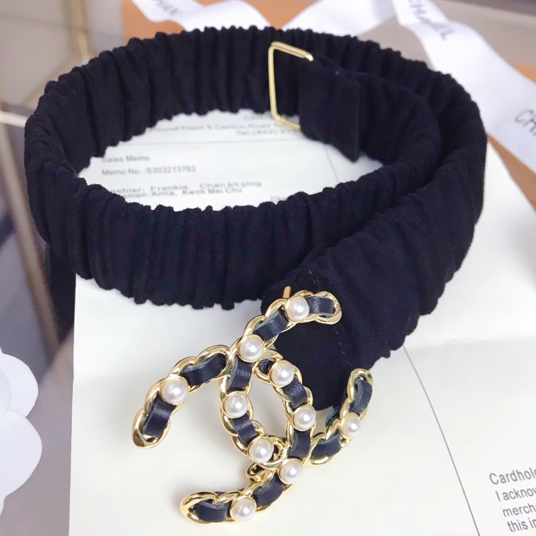 Chanel belt classic pearl elastic belt #𝐂𝐡𝐚𝐧𝐞𝐥# Classic leather chain double 𝗖 elastic pleated versatile belt collar 𝐁𝐞𝐥𝐭 belt 30mm