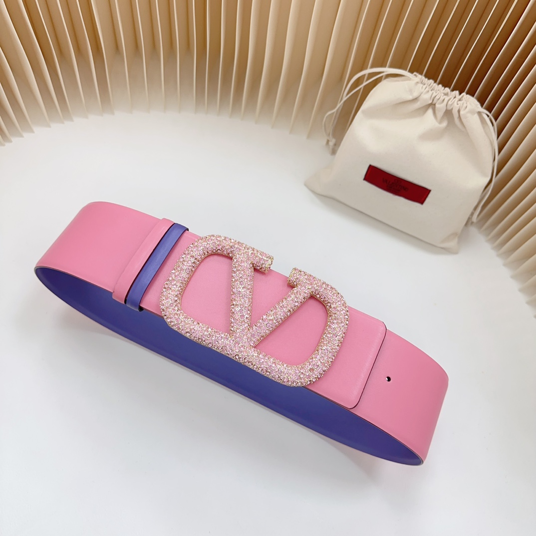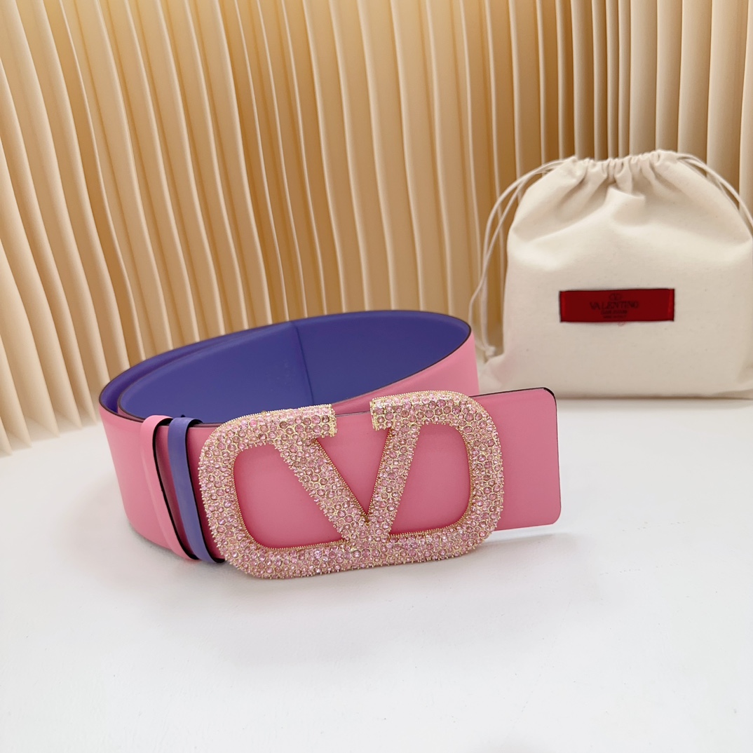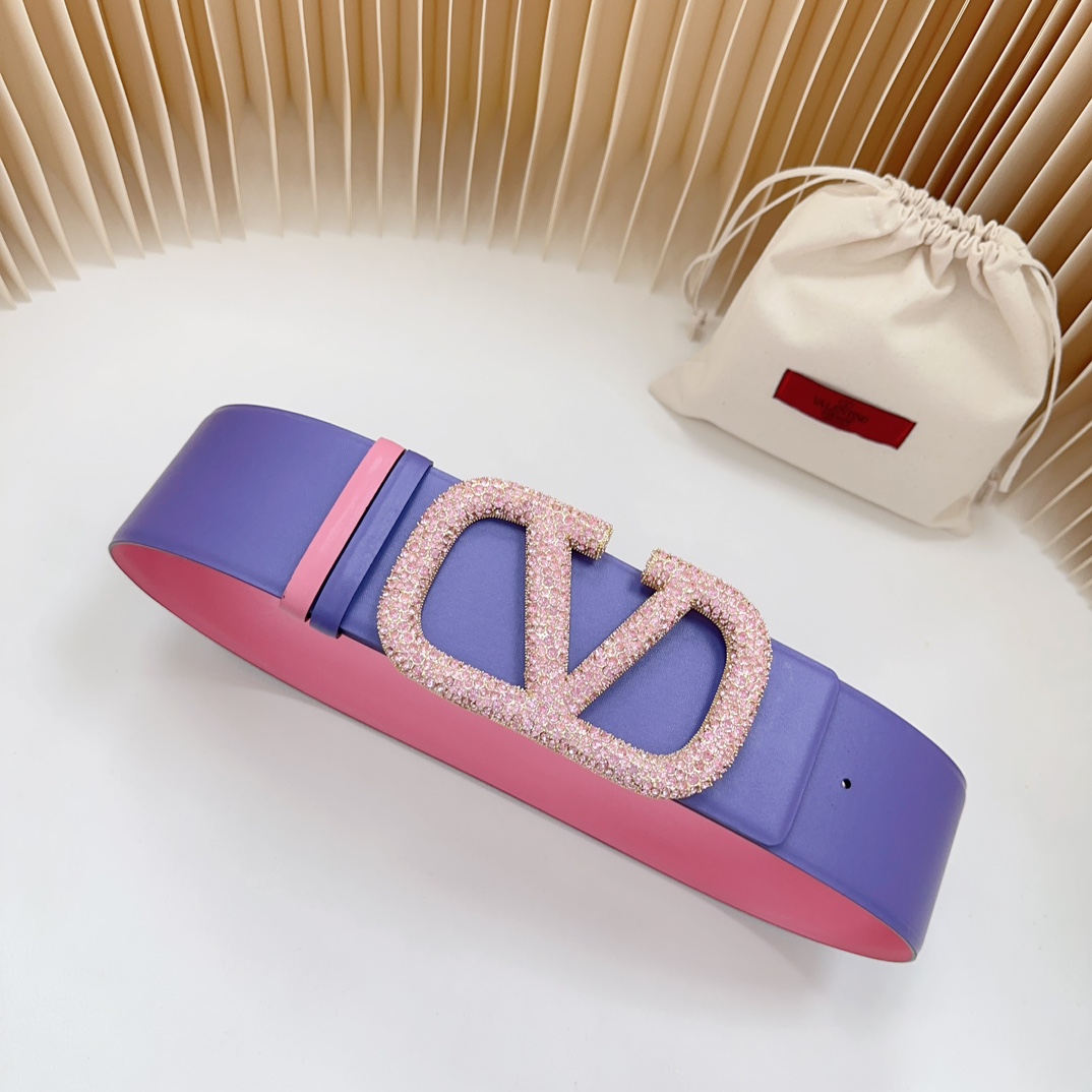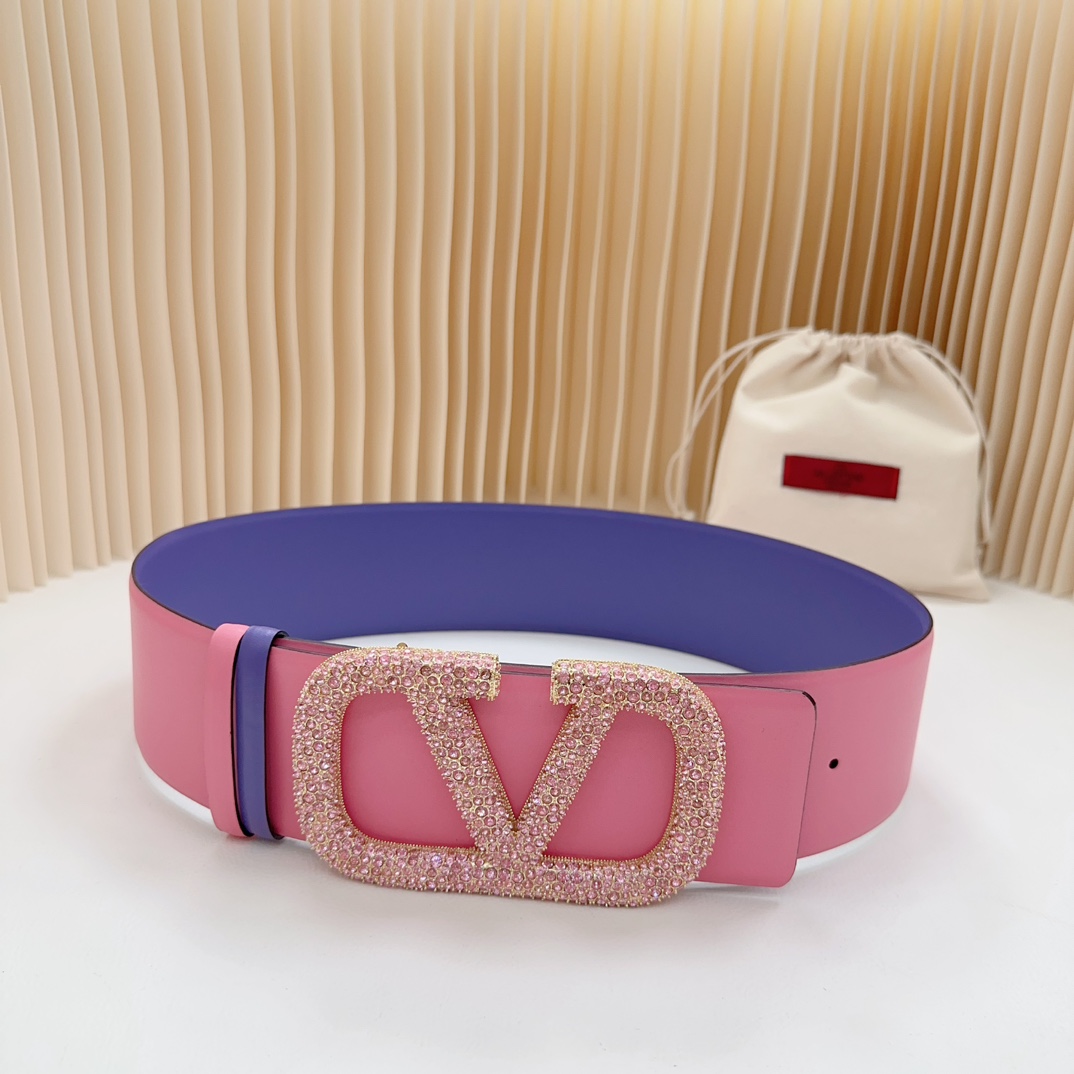 7.0cm Valentino full diamond buckle belt, double-sided color