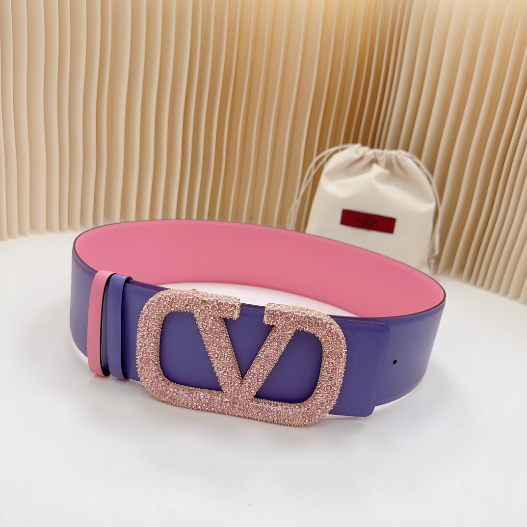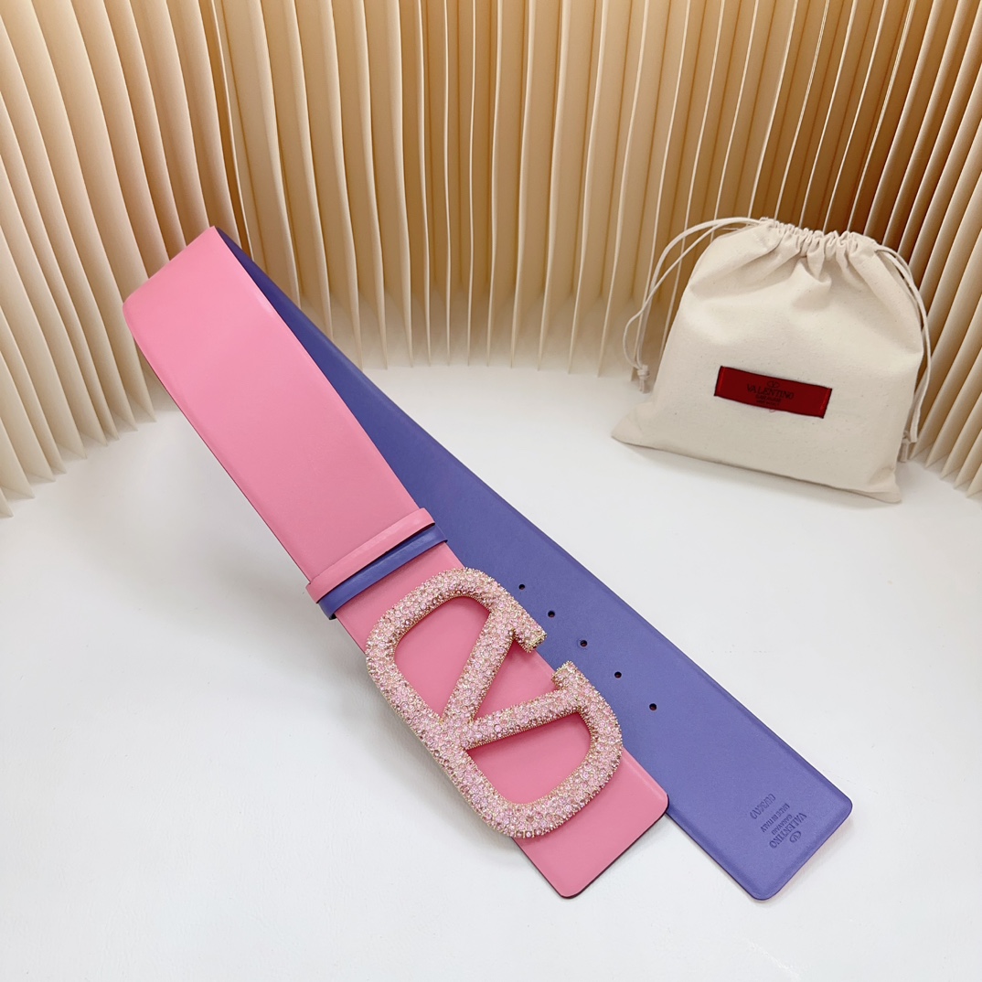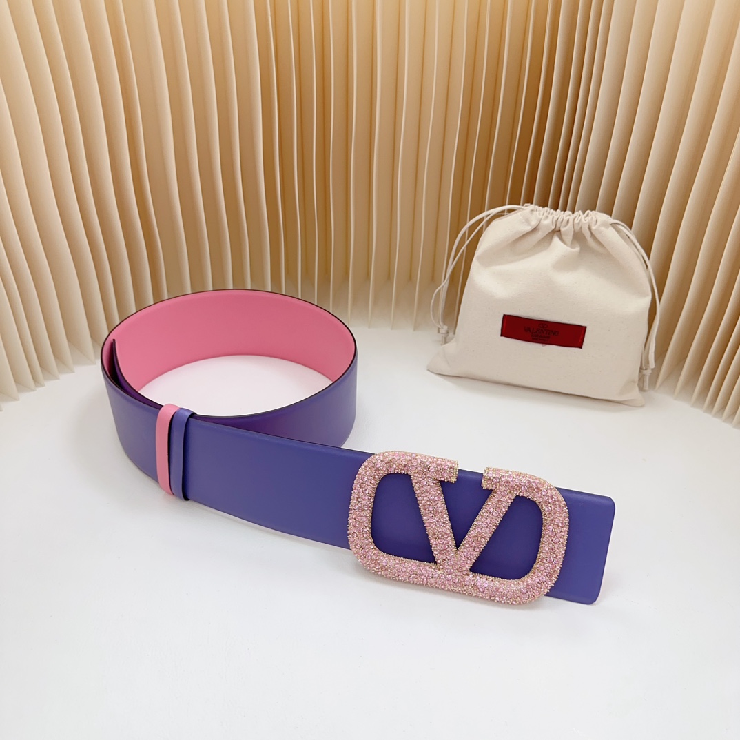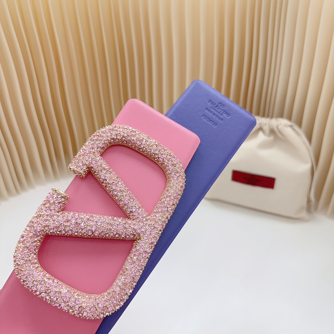 7.0cm Valentino full diamond buckle belt, double-sided color