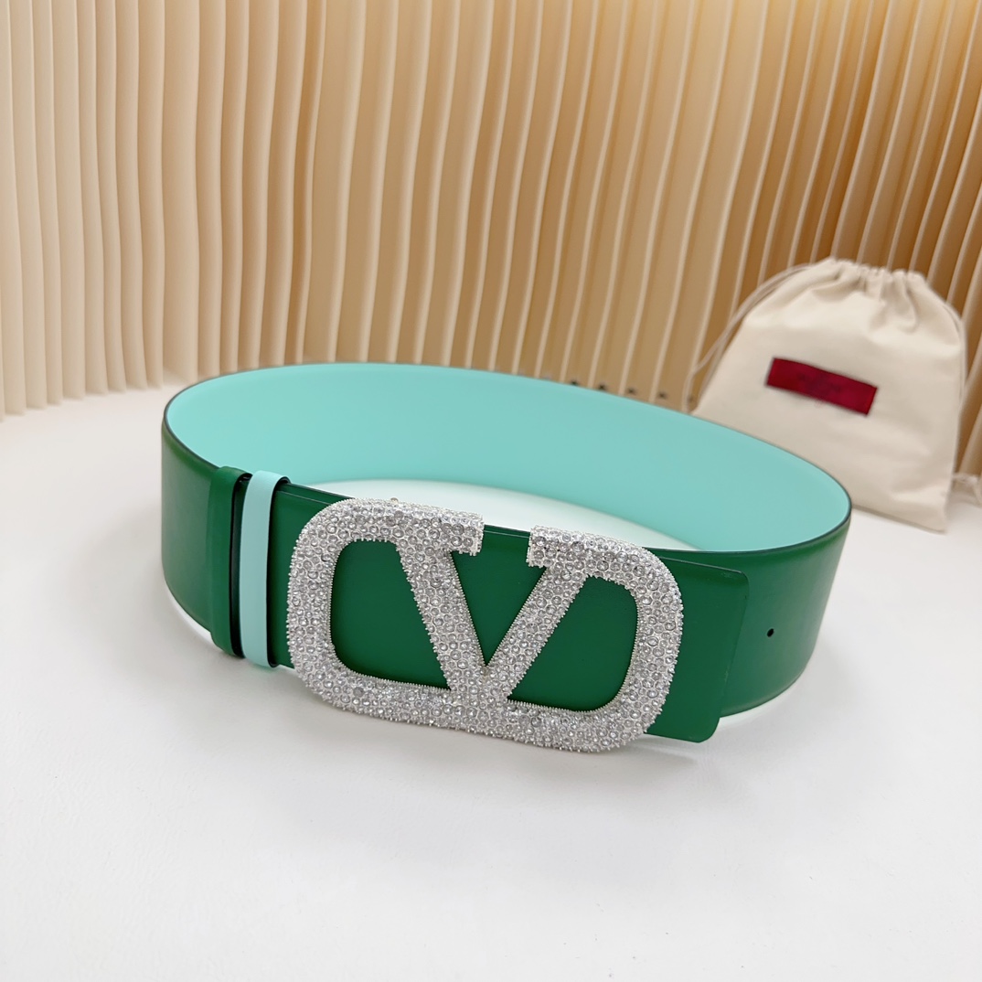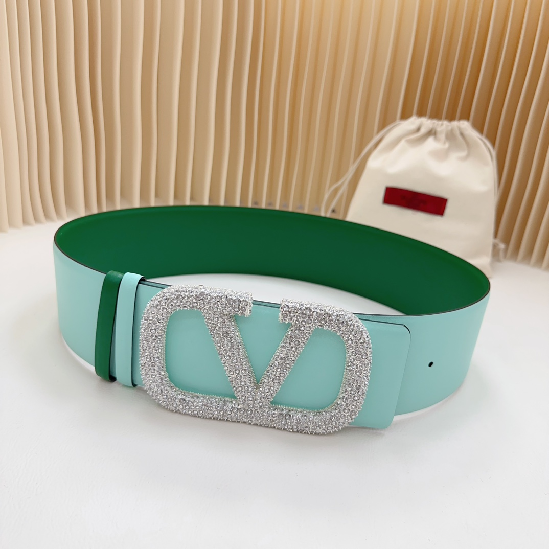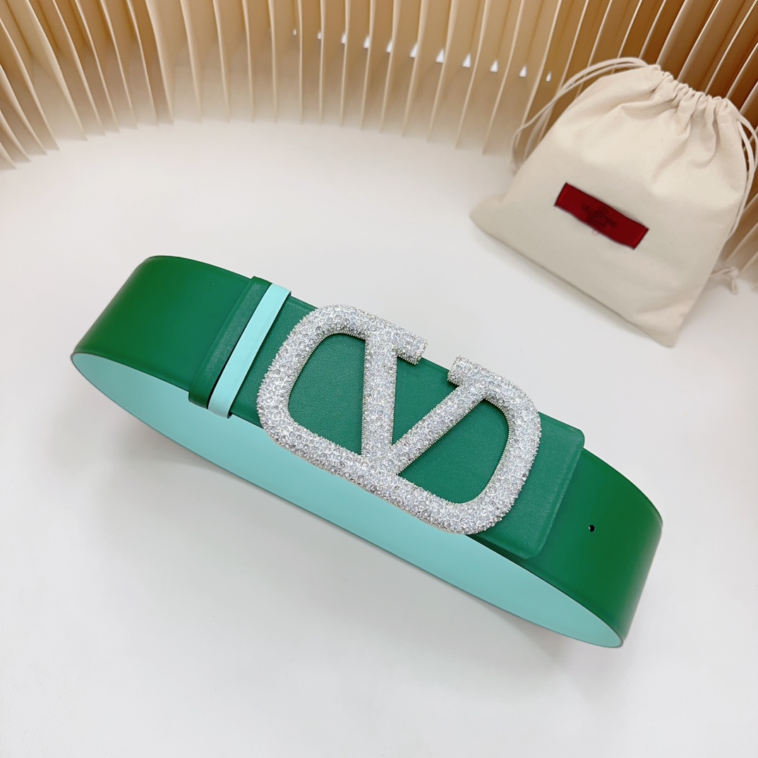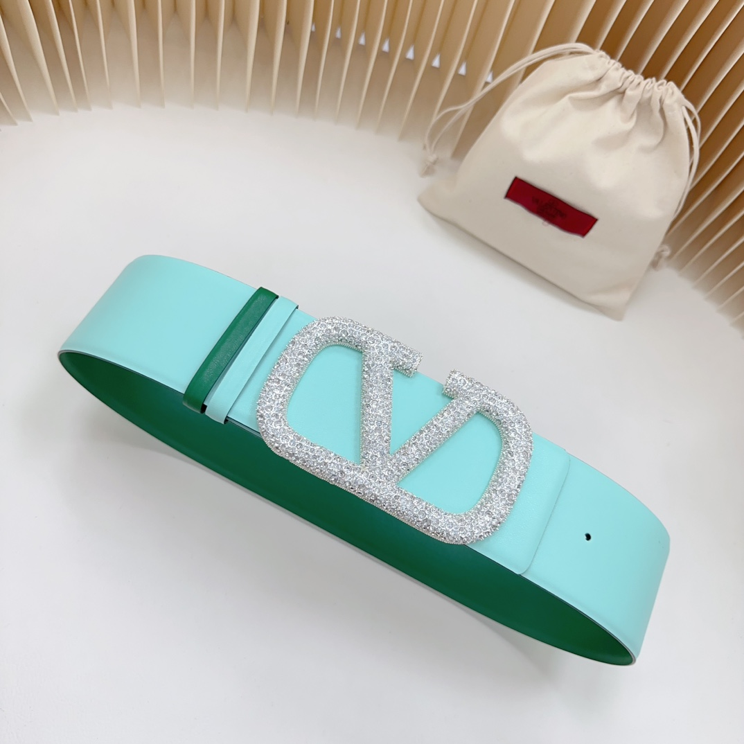 7.0cm Valentino full diamond buckle belt, double-sided color