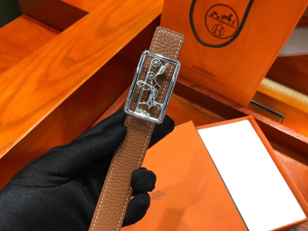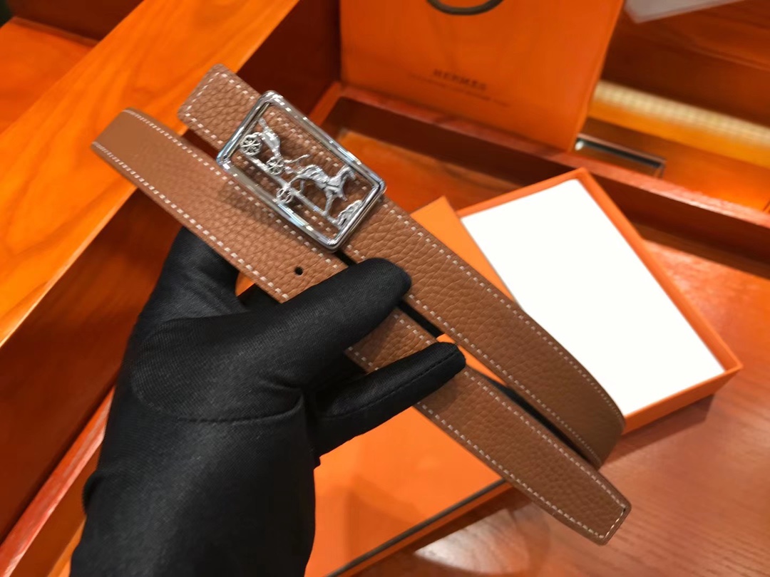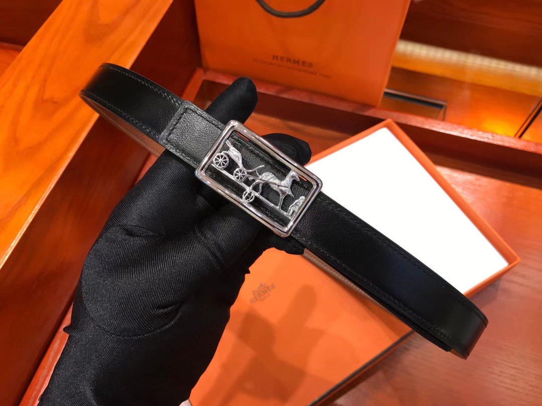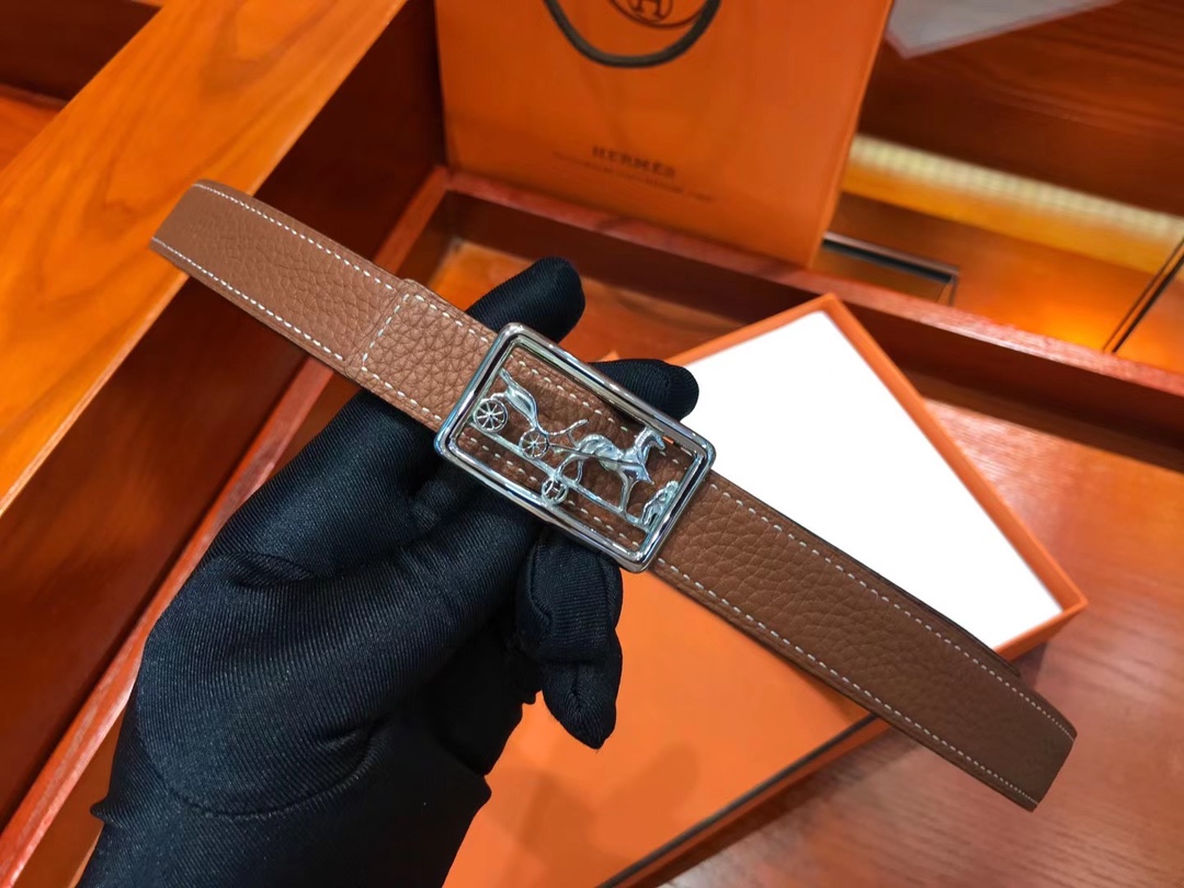 Hermès 2.4cm wide new belt buckle, hollow carriage pattern belt