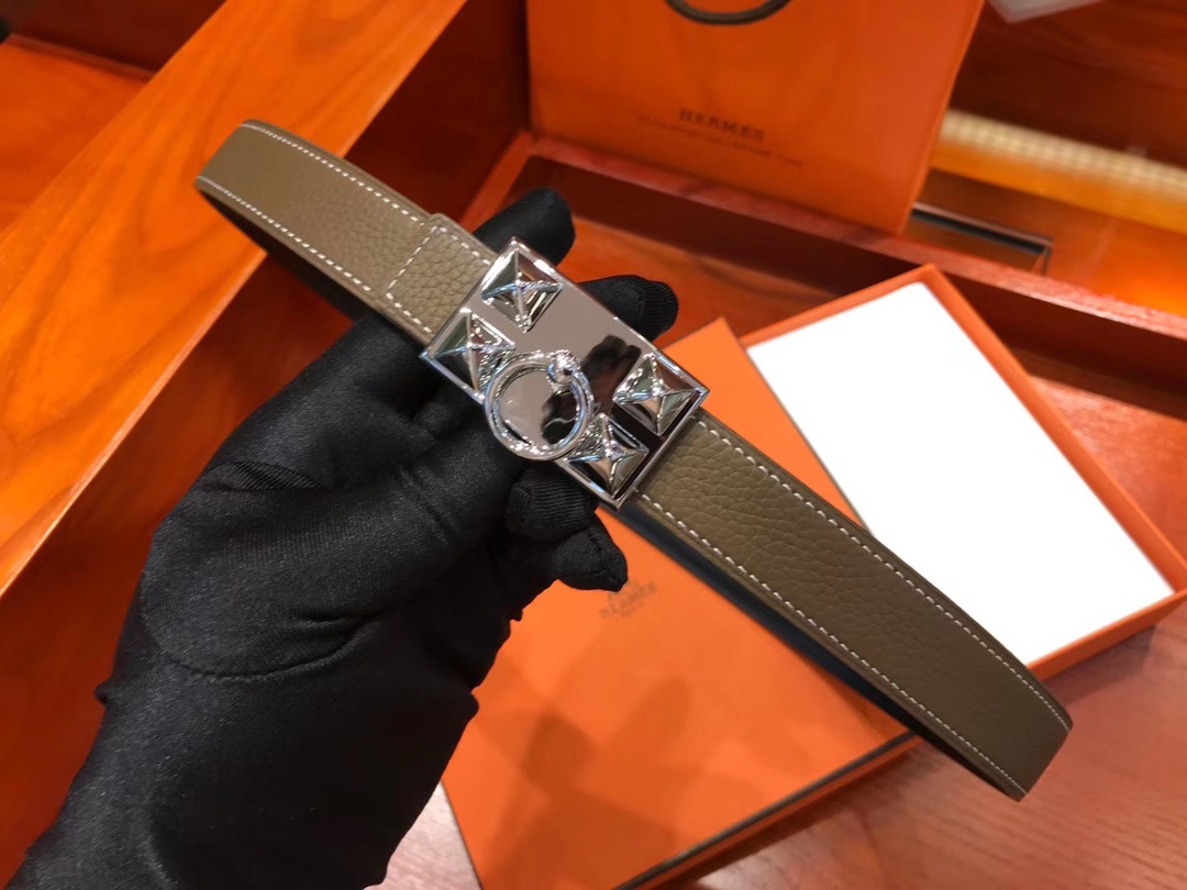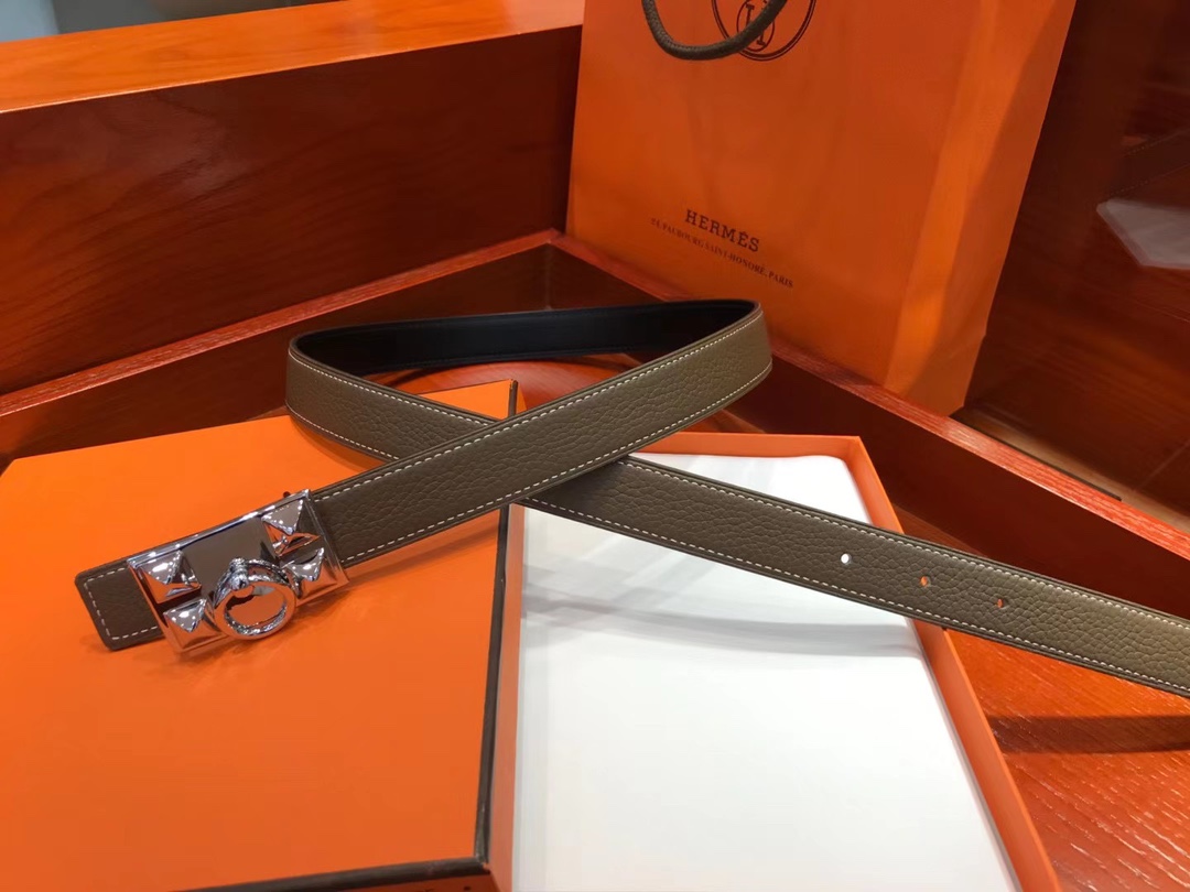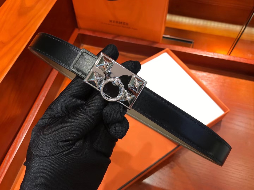 Hermès Square Silver Buckle Belt